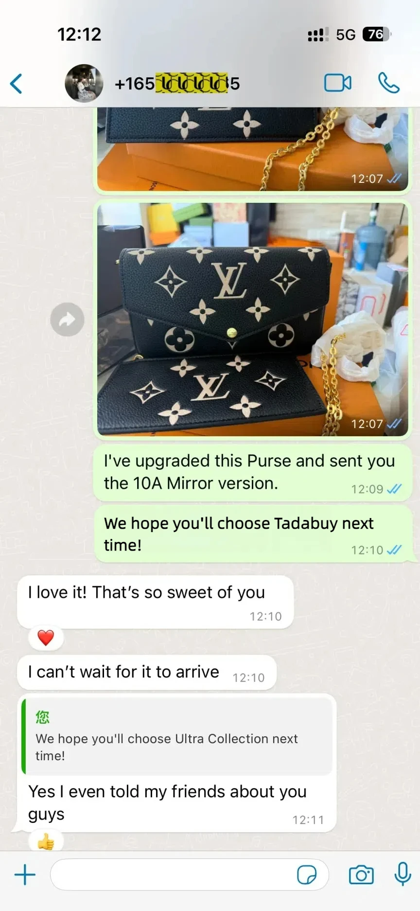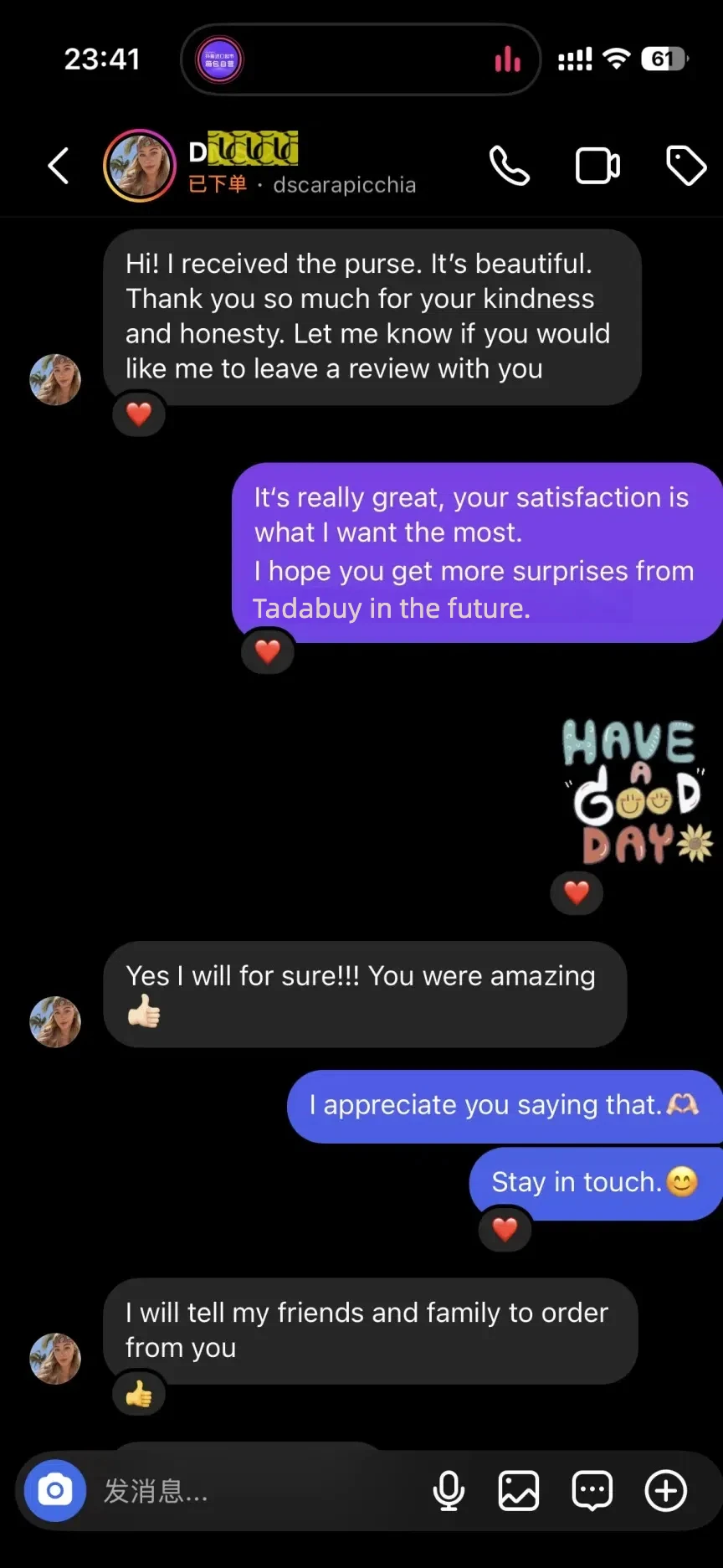 My bag arrived, it's very beautiful, I love it! Thank you so much! I'll definitely buy this bag again soon.