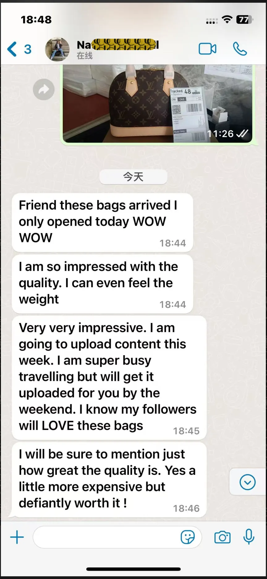 Hello merchant,l received my bag and Im very happy. l will ordermore and recommend in your store !