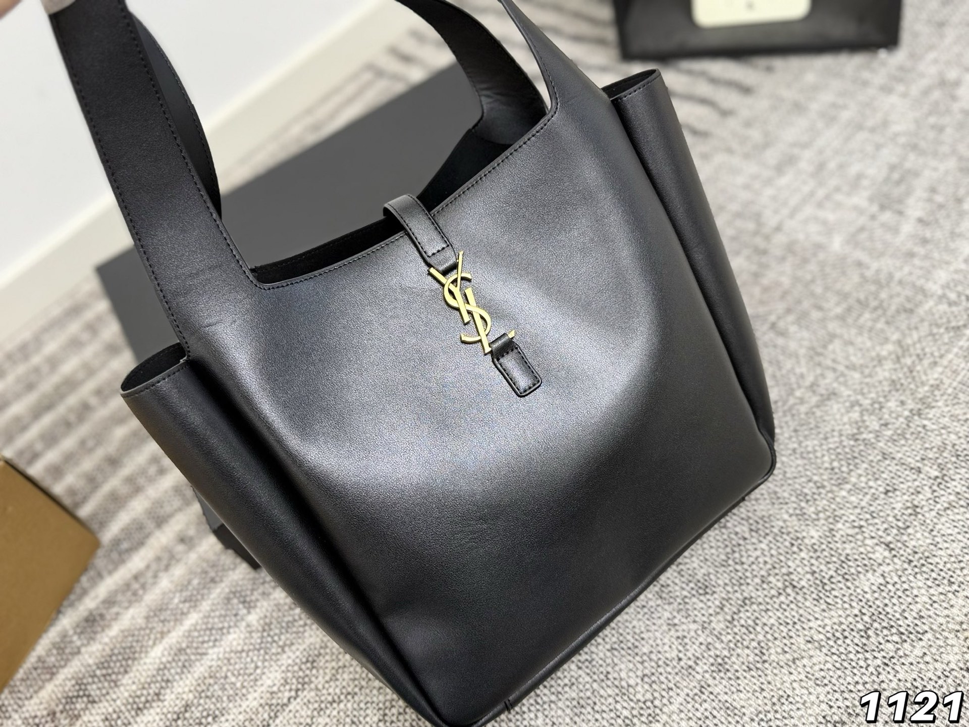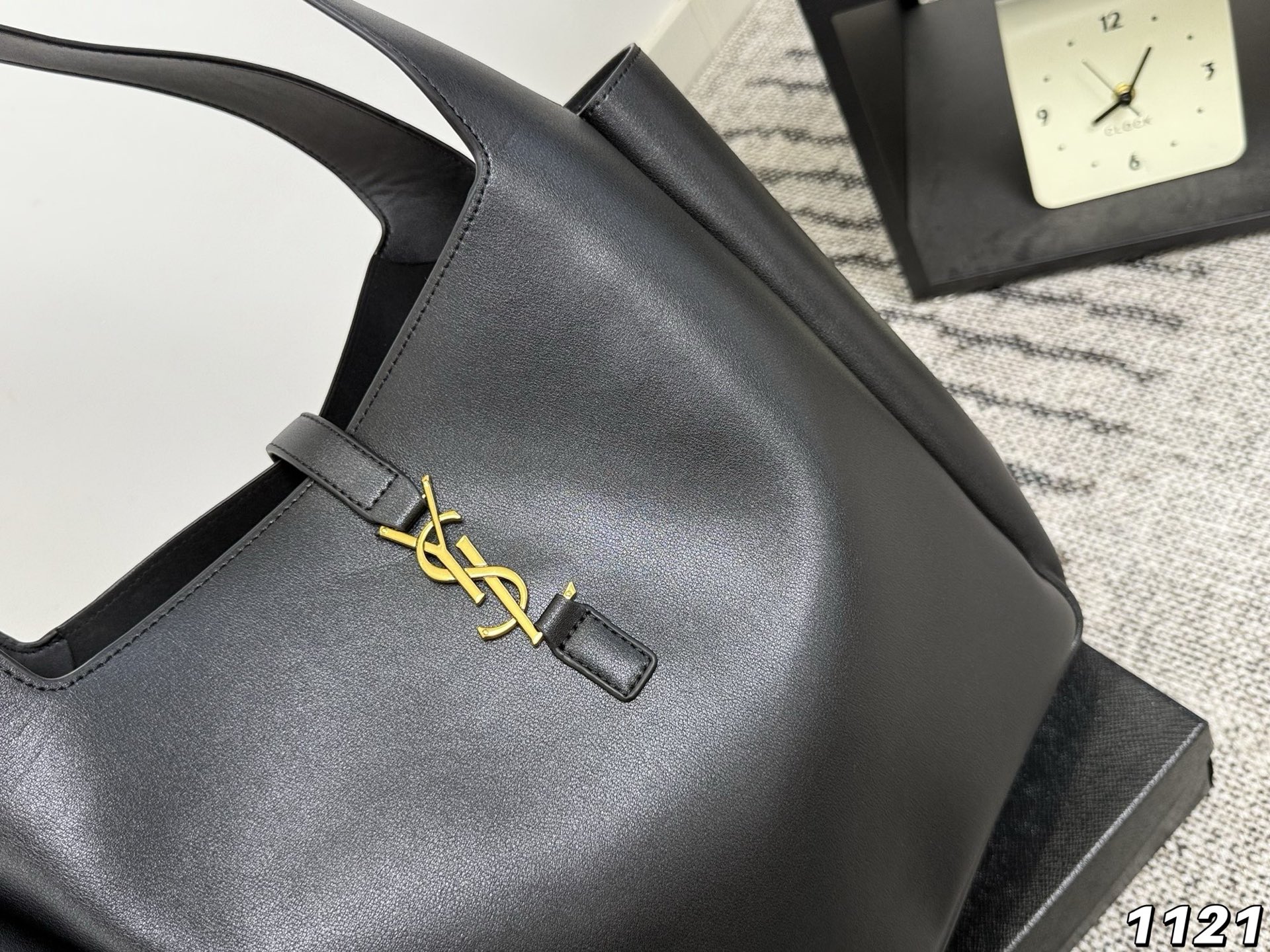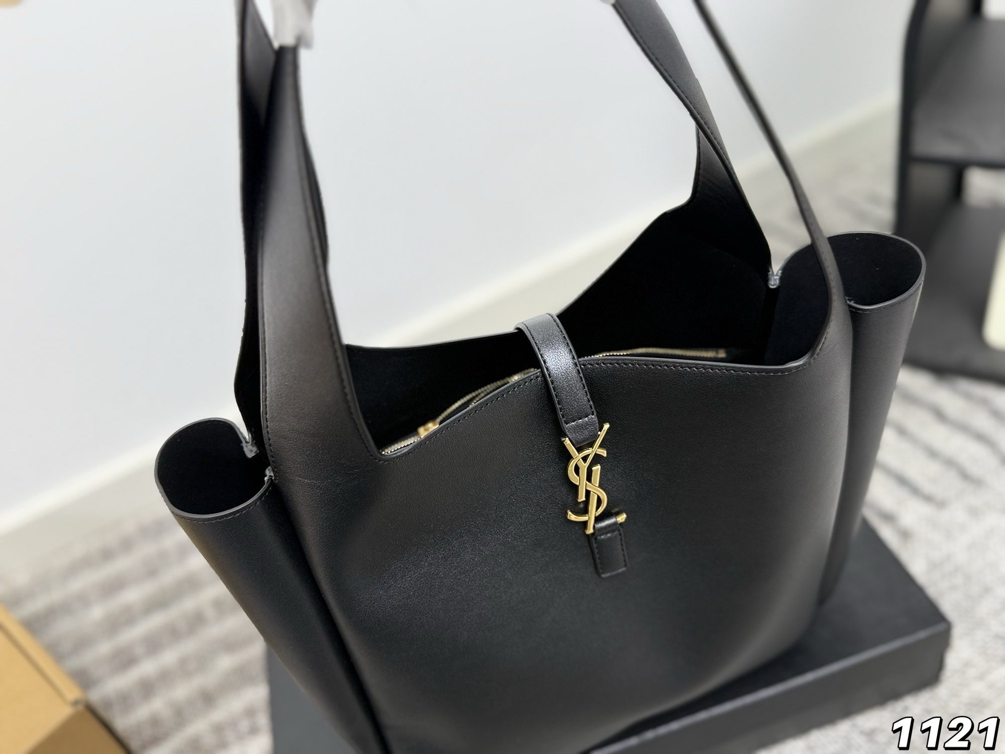 • ​YSL Logo-Clasp Hobo Bucket Bag Soft Leather