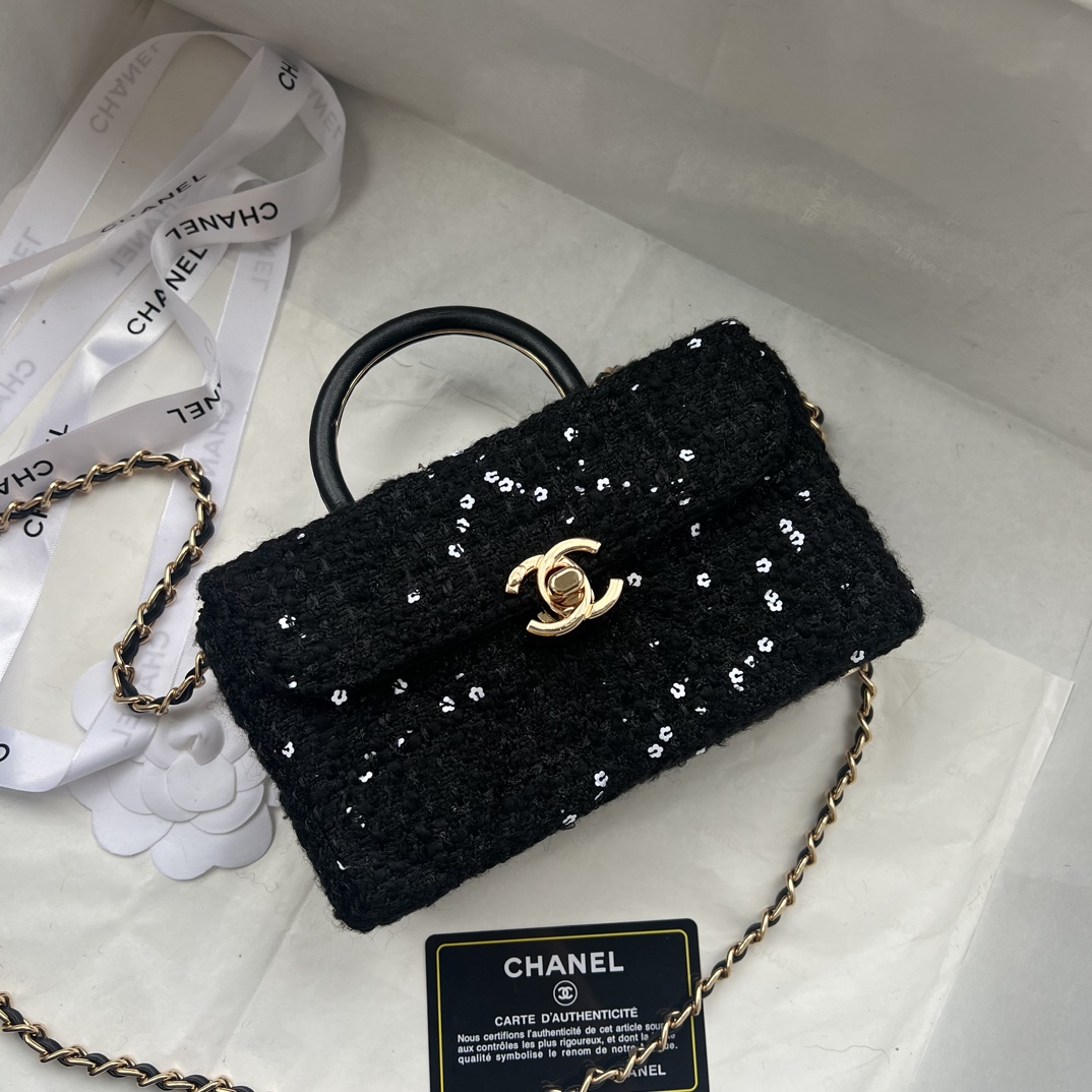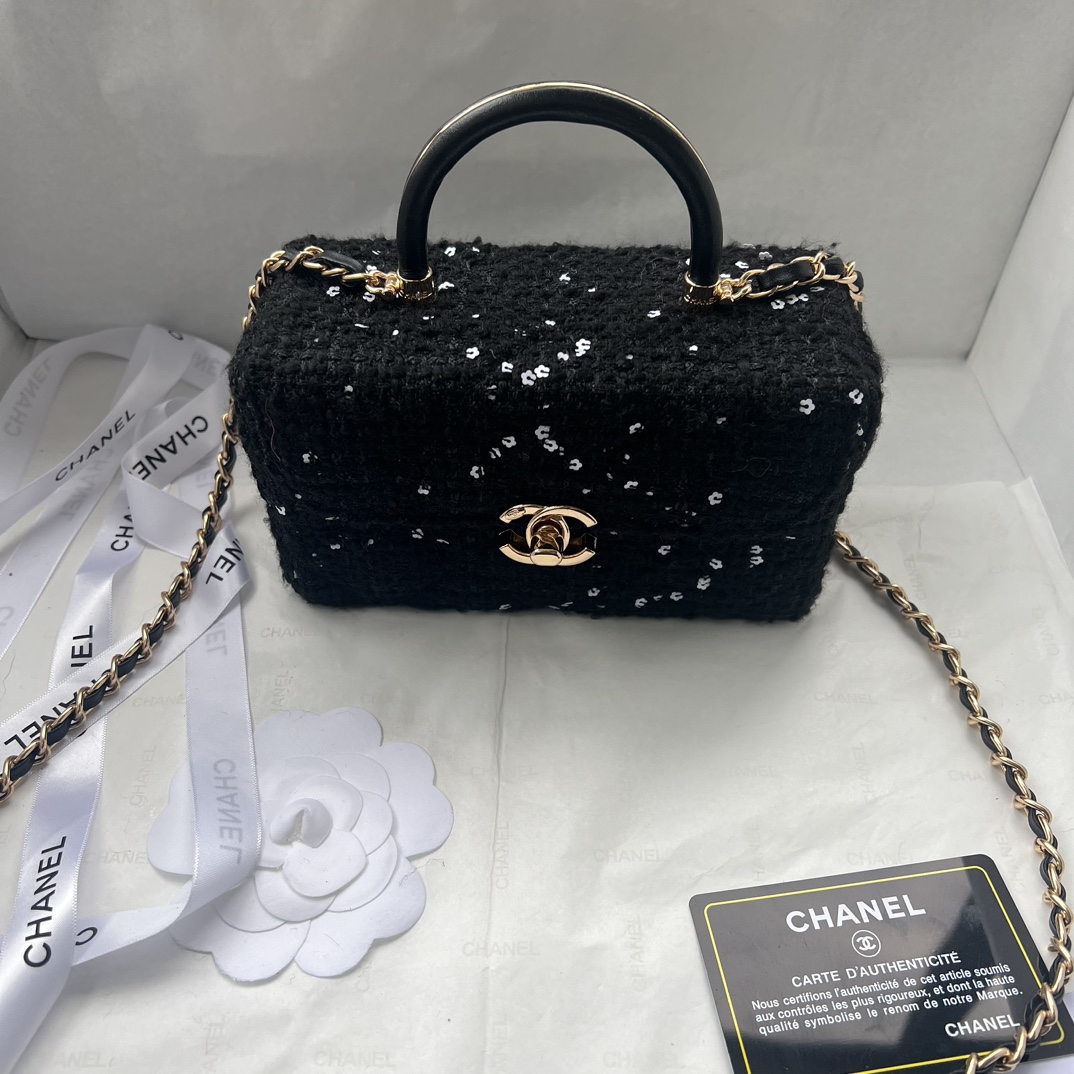 Chanel 23K Handle Box Bag Calfskin Tweed