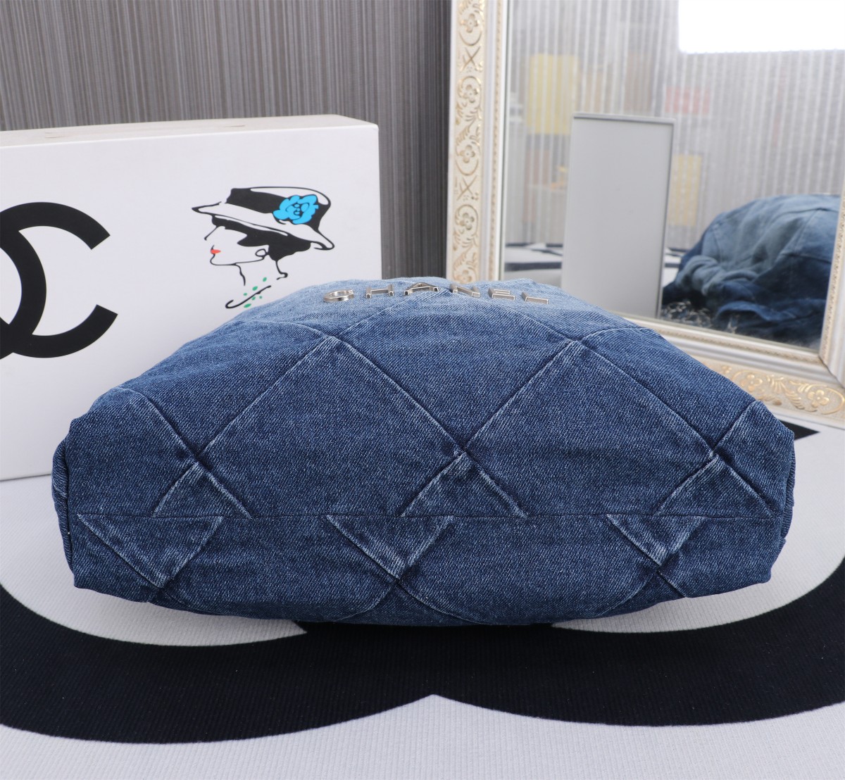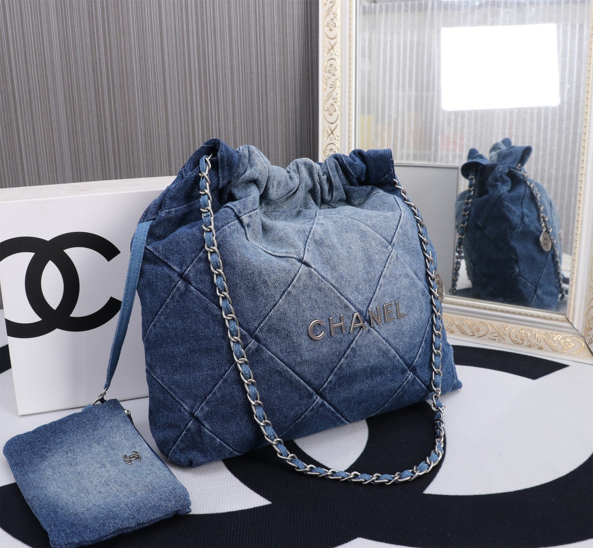 • Chanel 23P 22 Bag 1162 in Denim with Washed Blue-to-White