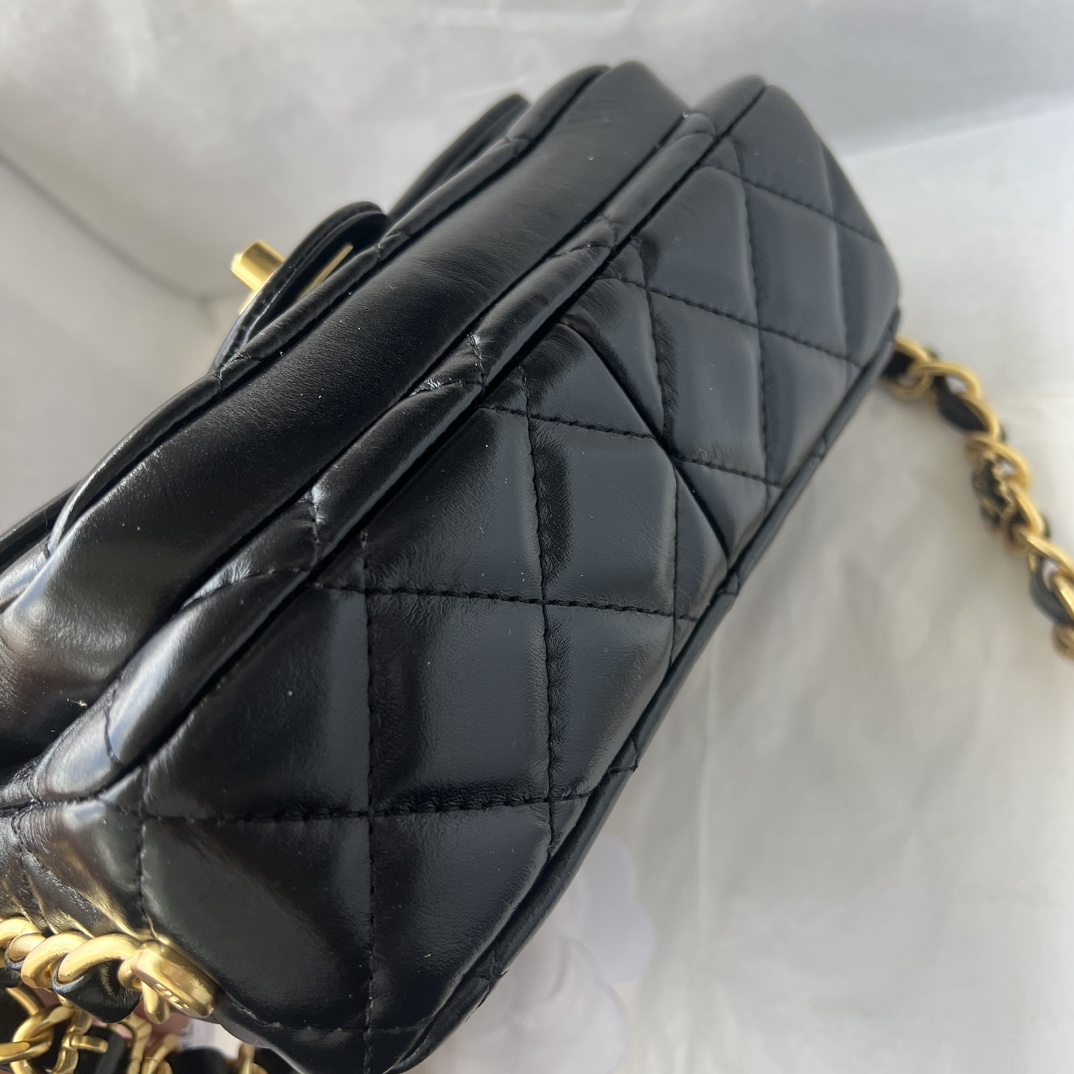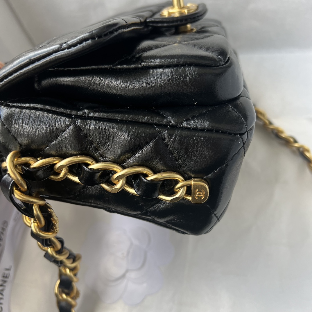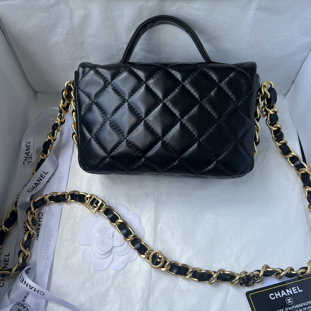 Chanel 24A High-End Handcrafted Collection. Small messenger bag with a ¼ 8" chain. A refined design with a double C buckle and imported top-grain cowhide. Every detail reveals a perfect blend of classic and modern, embodying a vintage vantage. The distressed metal is truly practical and beautiful!