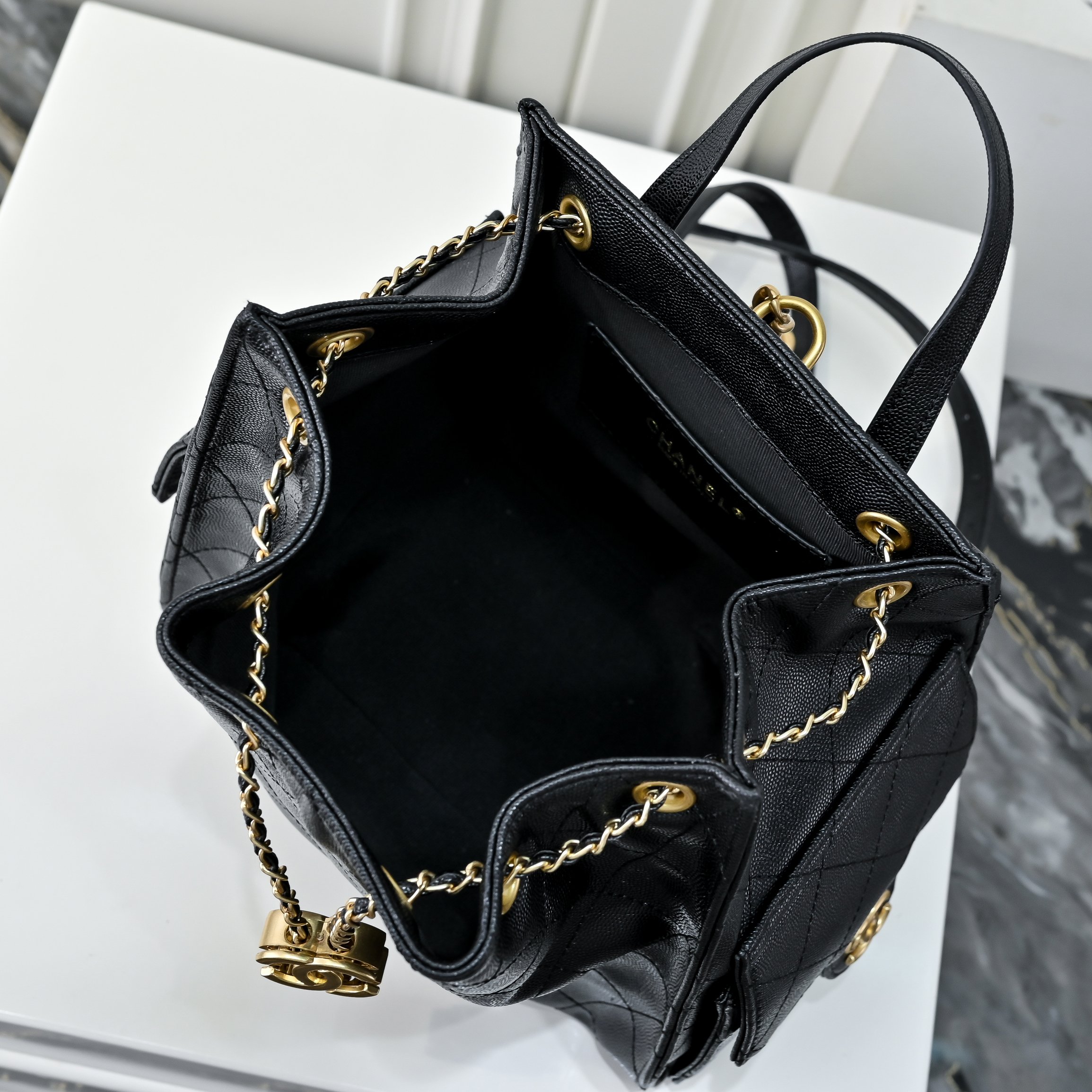 • CHANEL 25C 7017 Retro Gold Coin Bucket Bag
