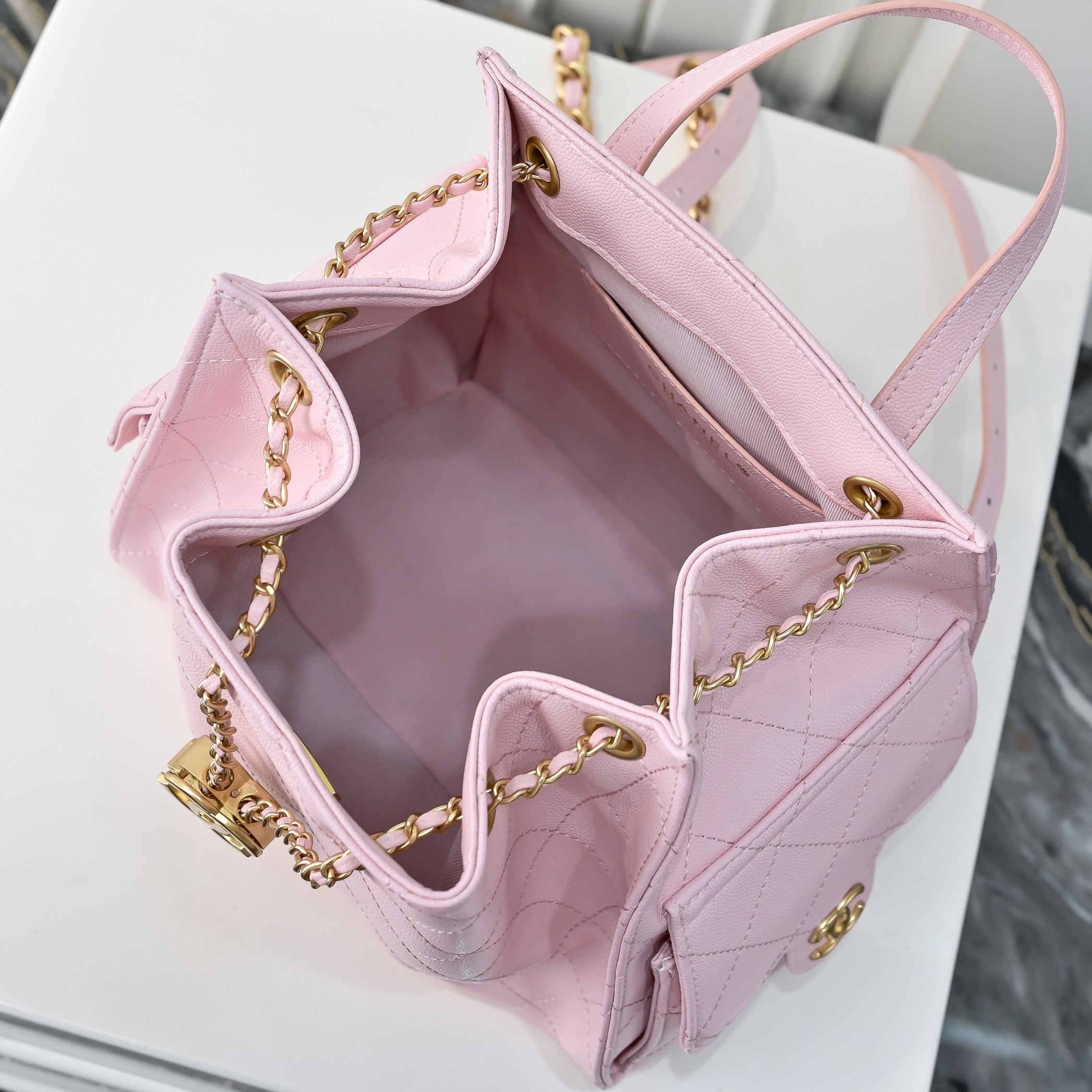 • CHANEL 25C 7017 Retro Gold Coin Bucket Bag
