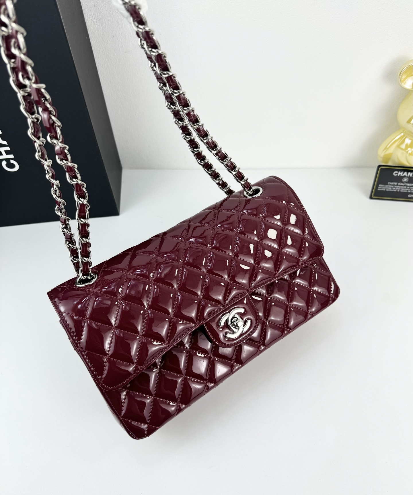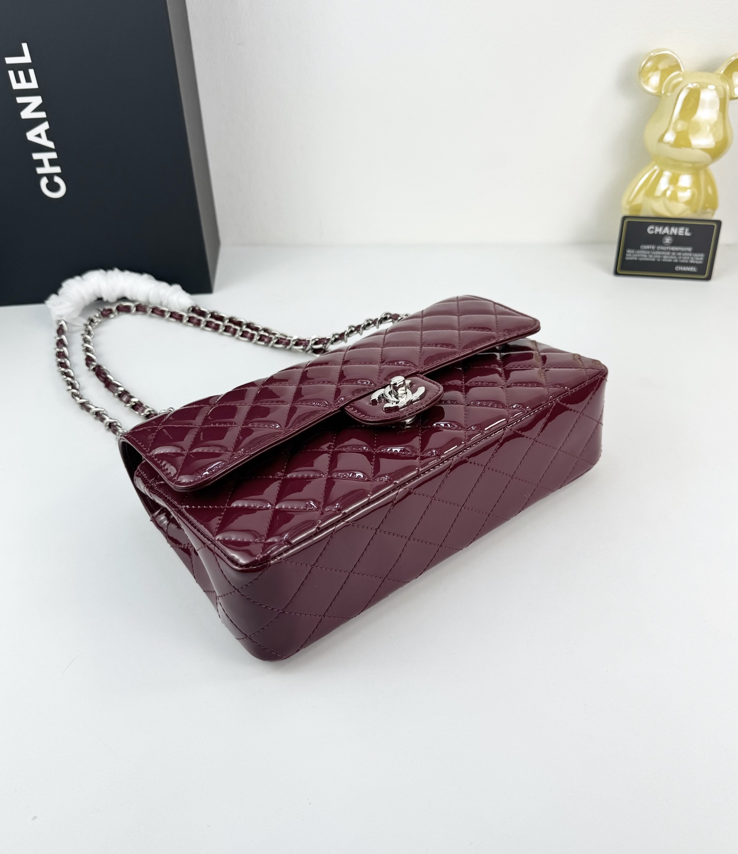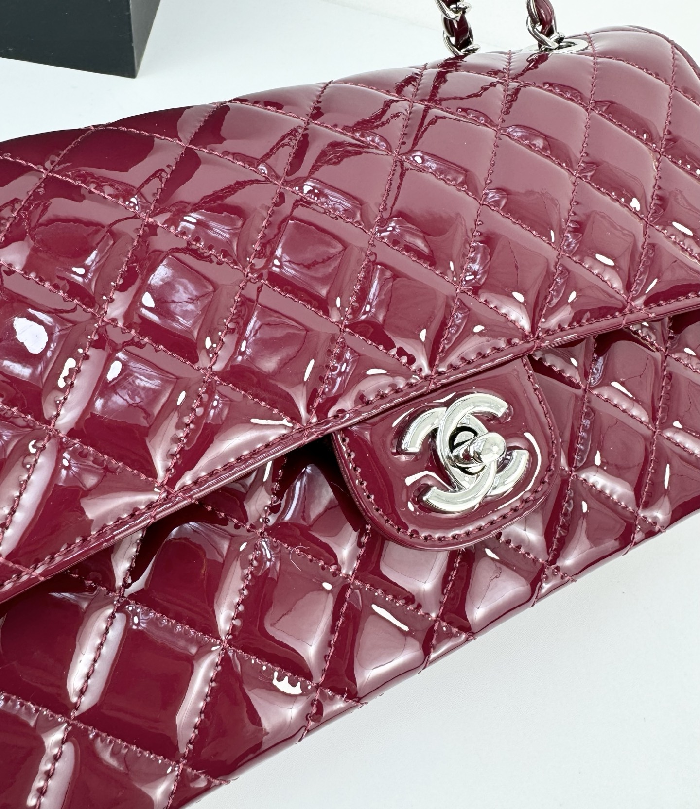 • Chanel 25cm Red Patent Leather Classic Flap Bag 1112