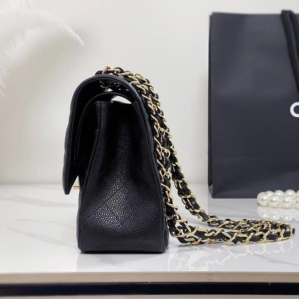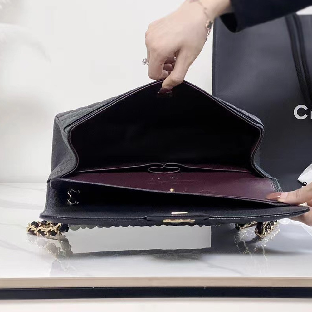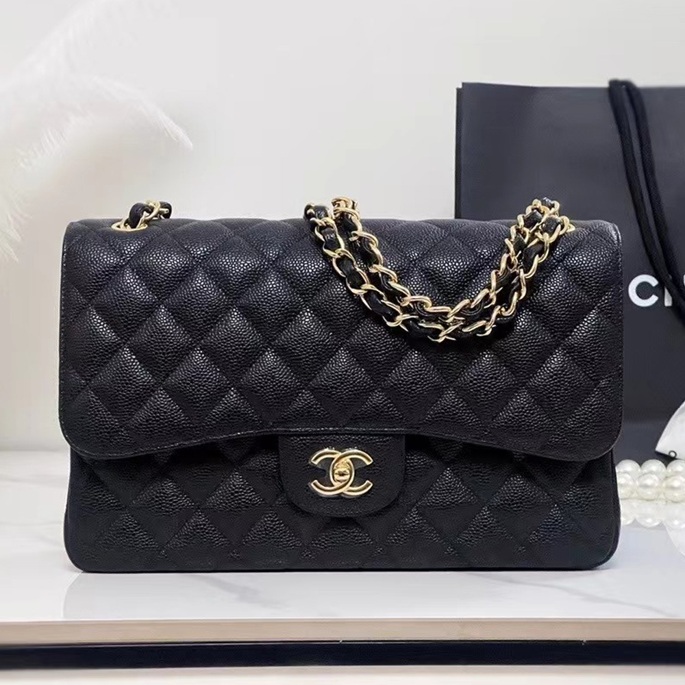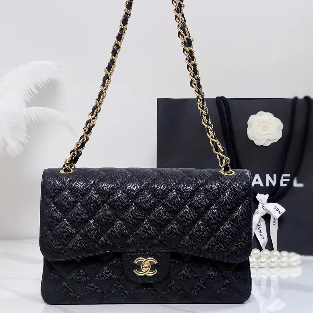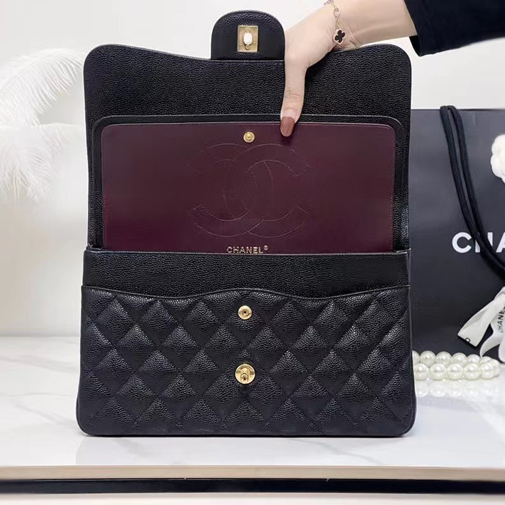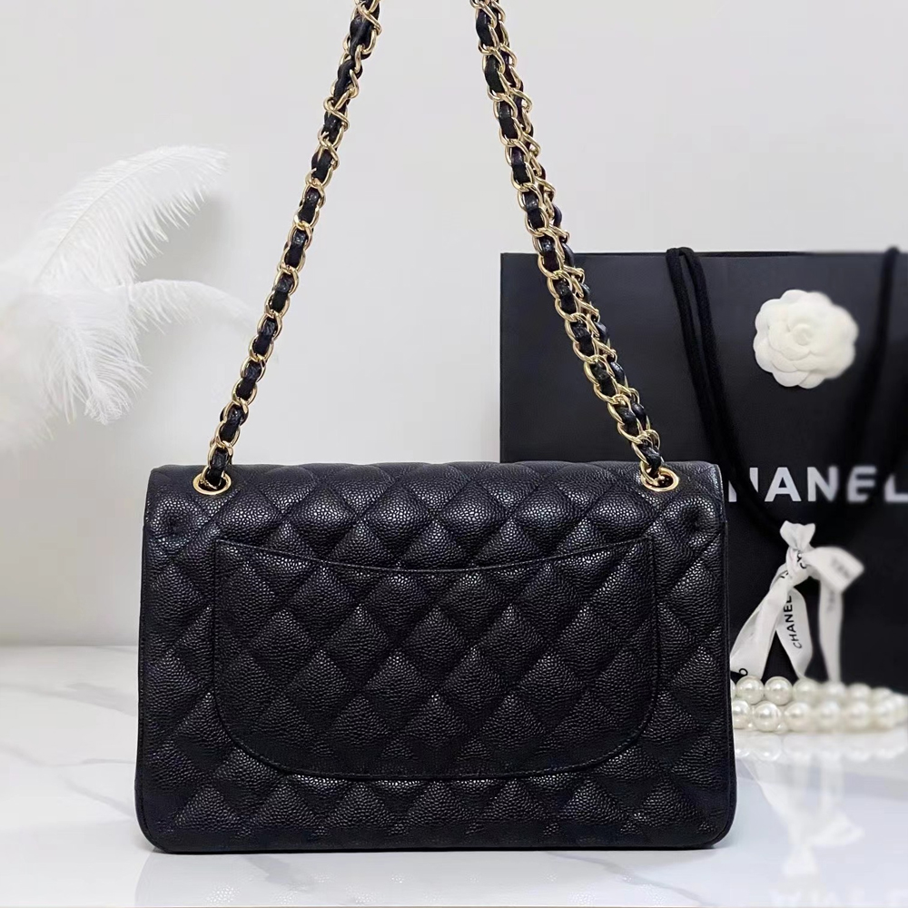• CHANEL Caviar Quilted Jumbo Double Flap Black 30CM
