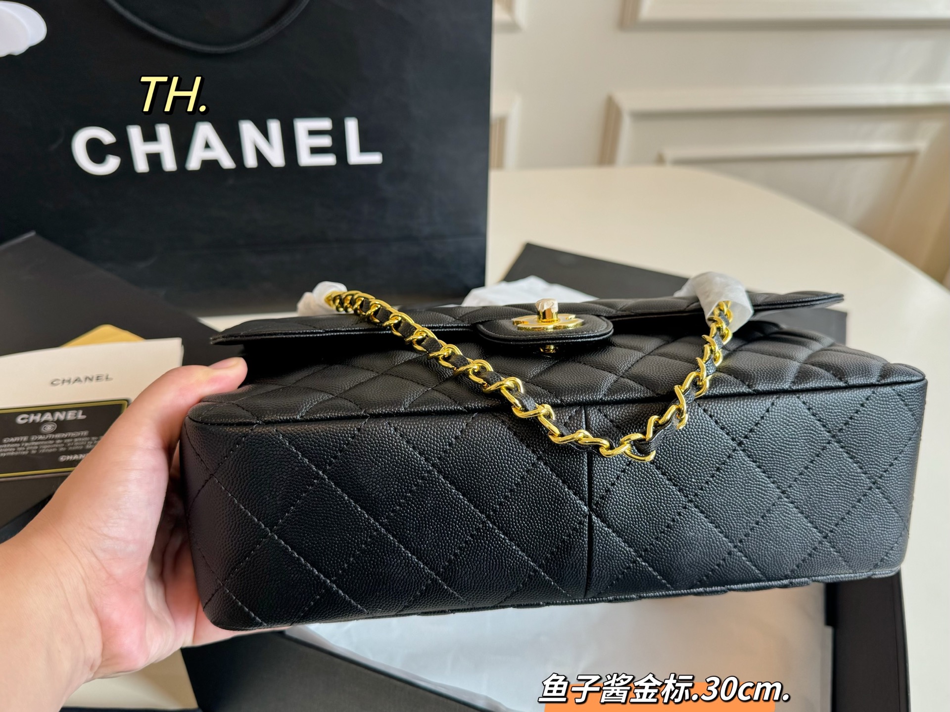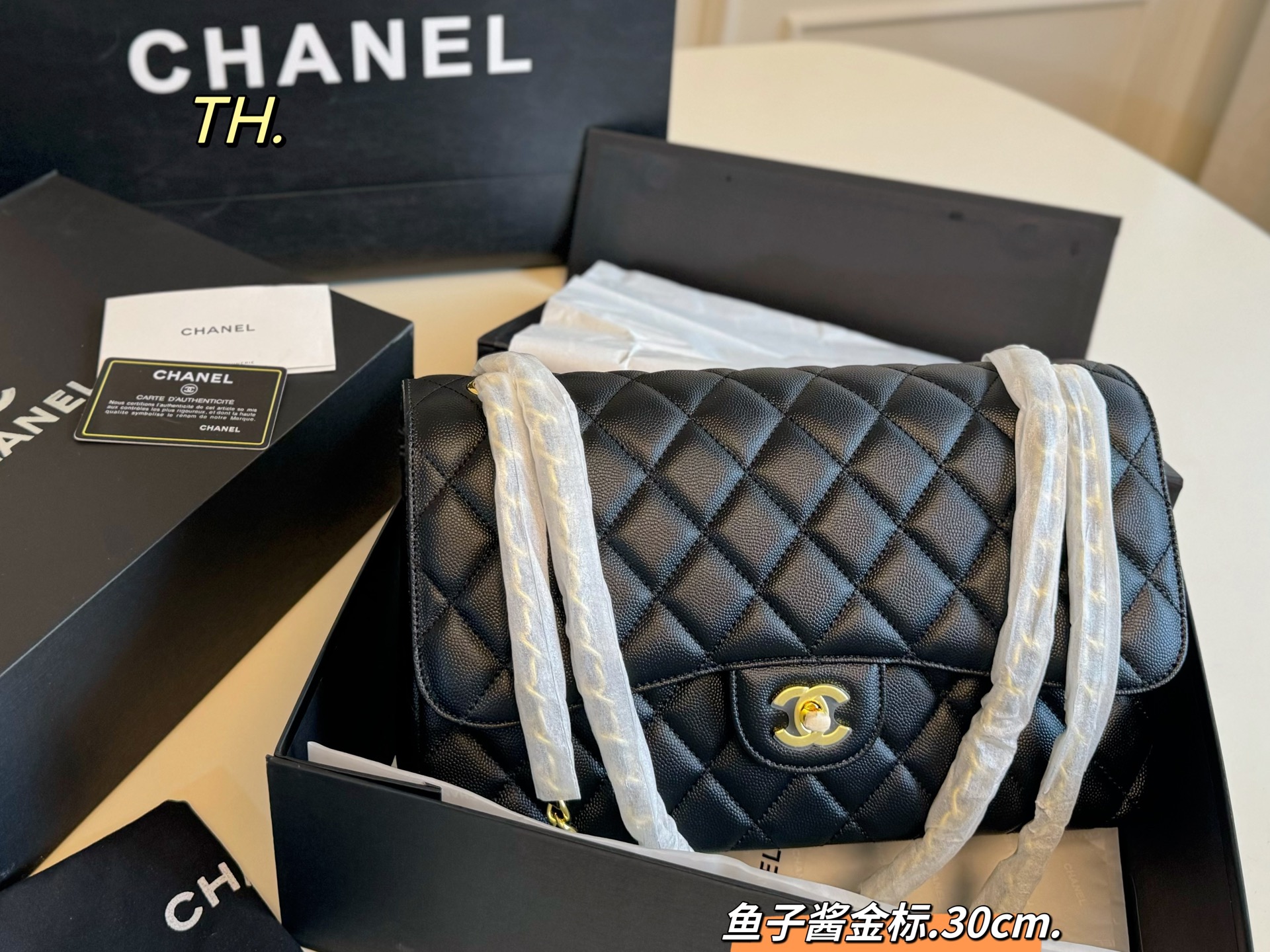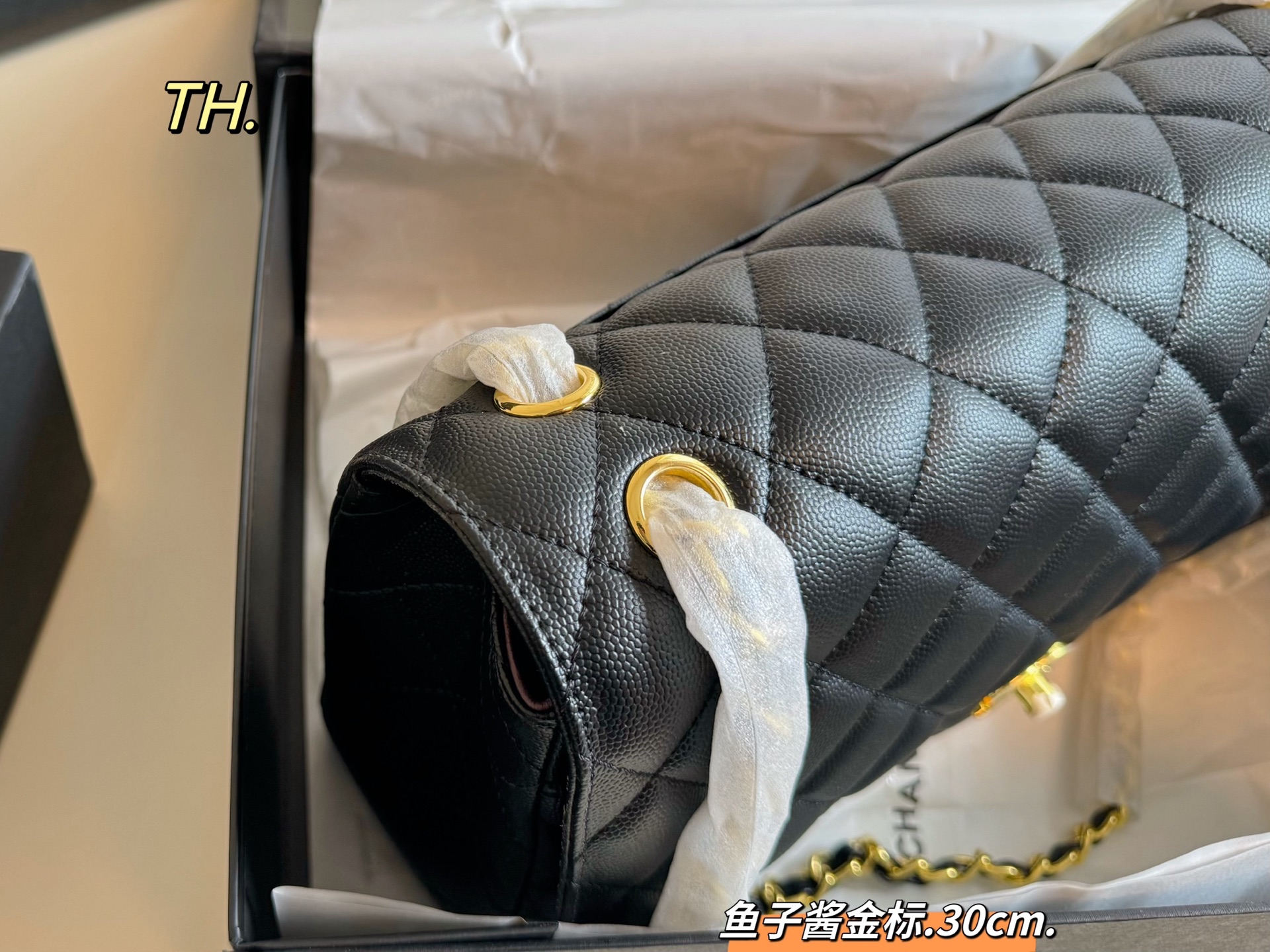 • Chanel CF Double Flap Caviar Leather Bag 30cm