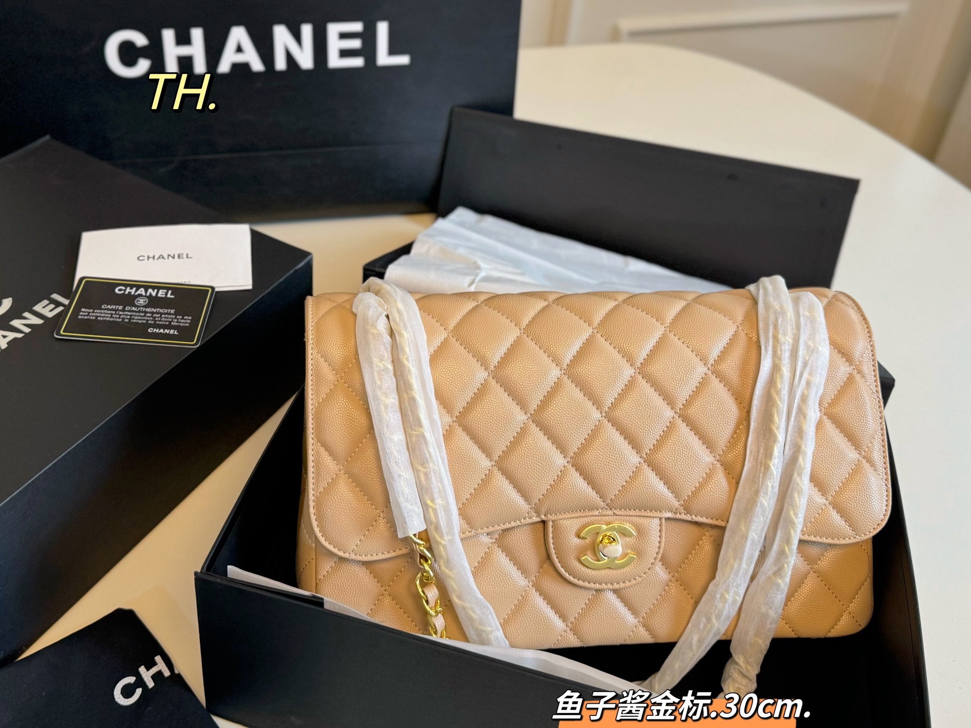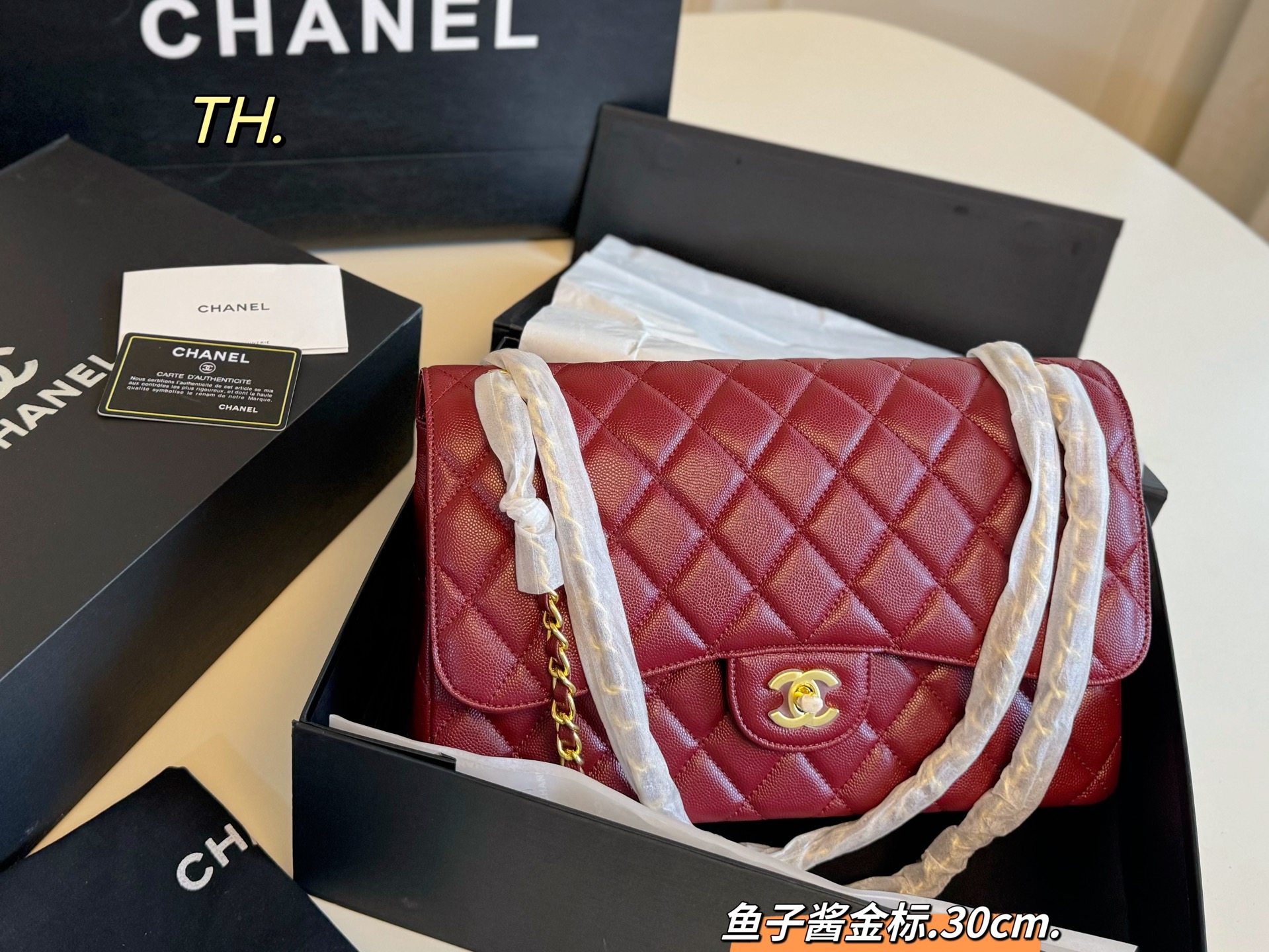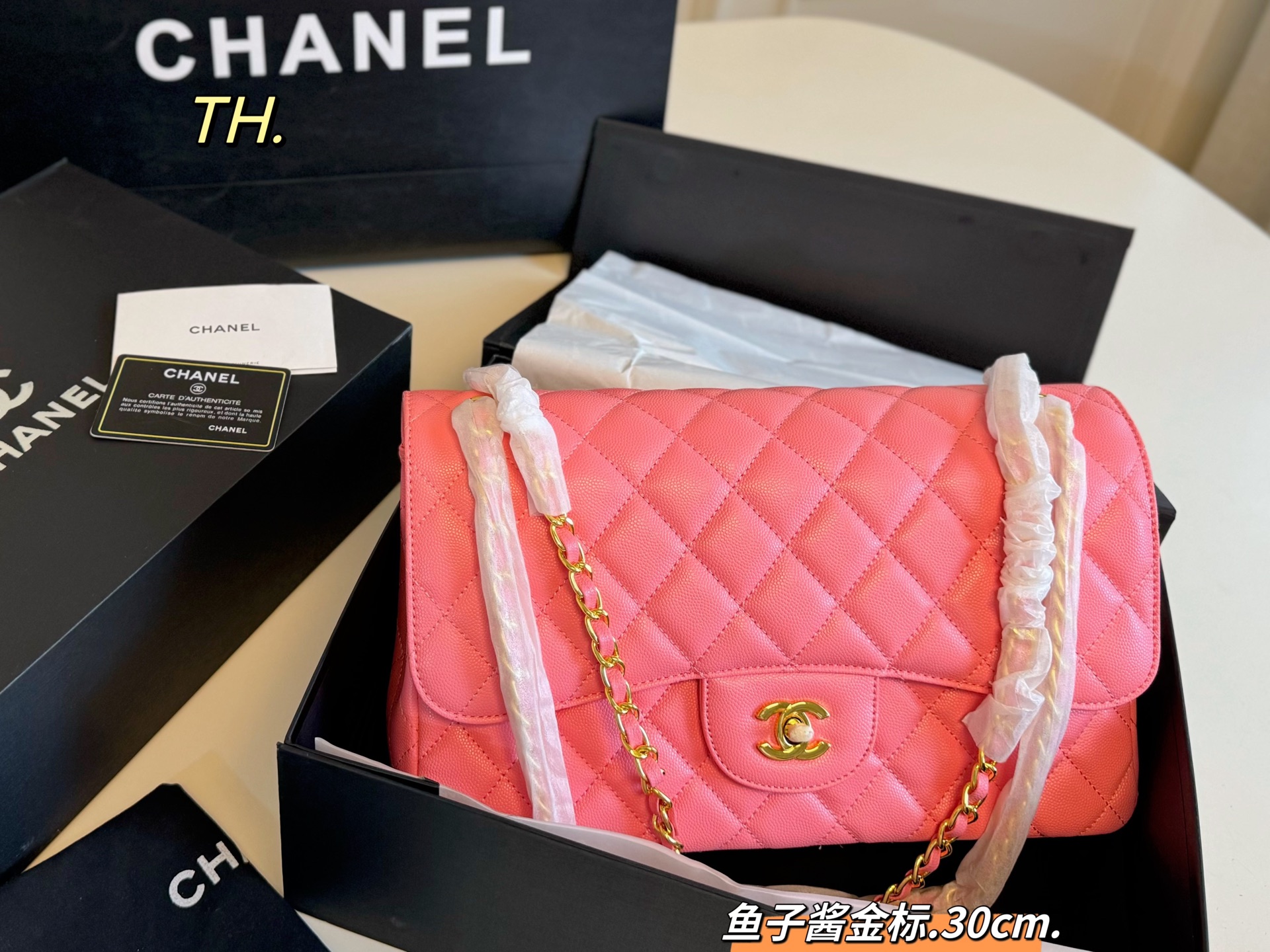 • Chanel CF Double Flap Caviar Leather Bag 30cm