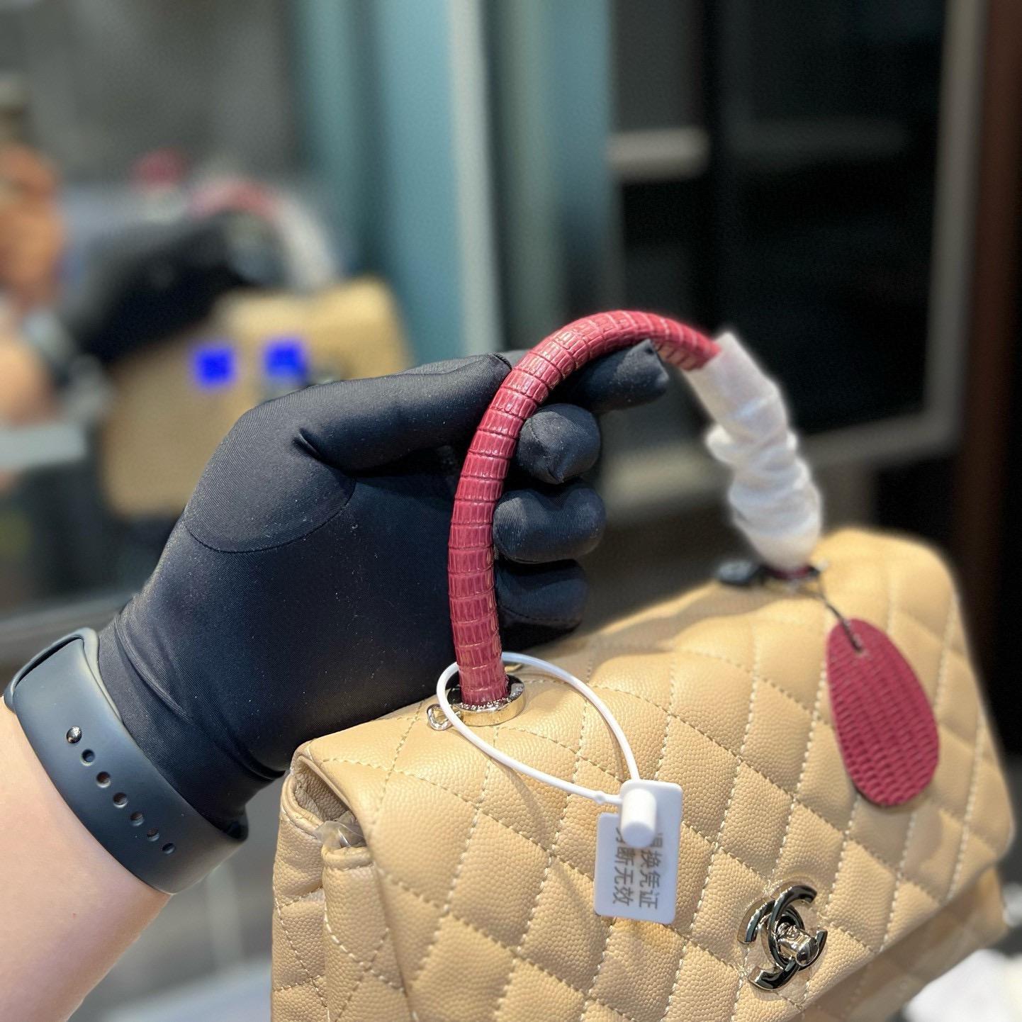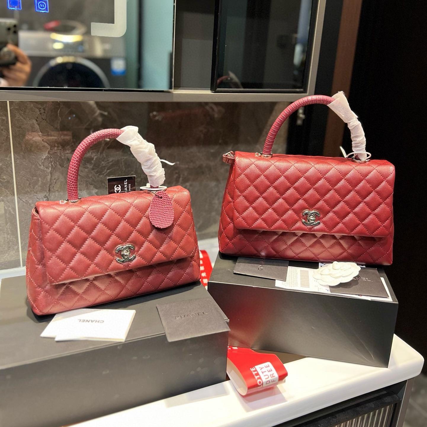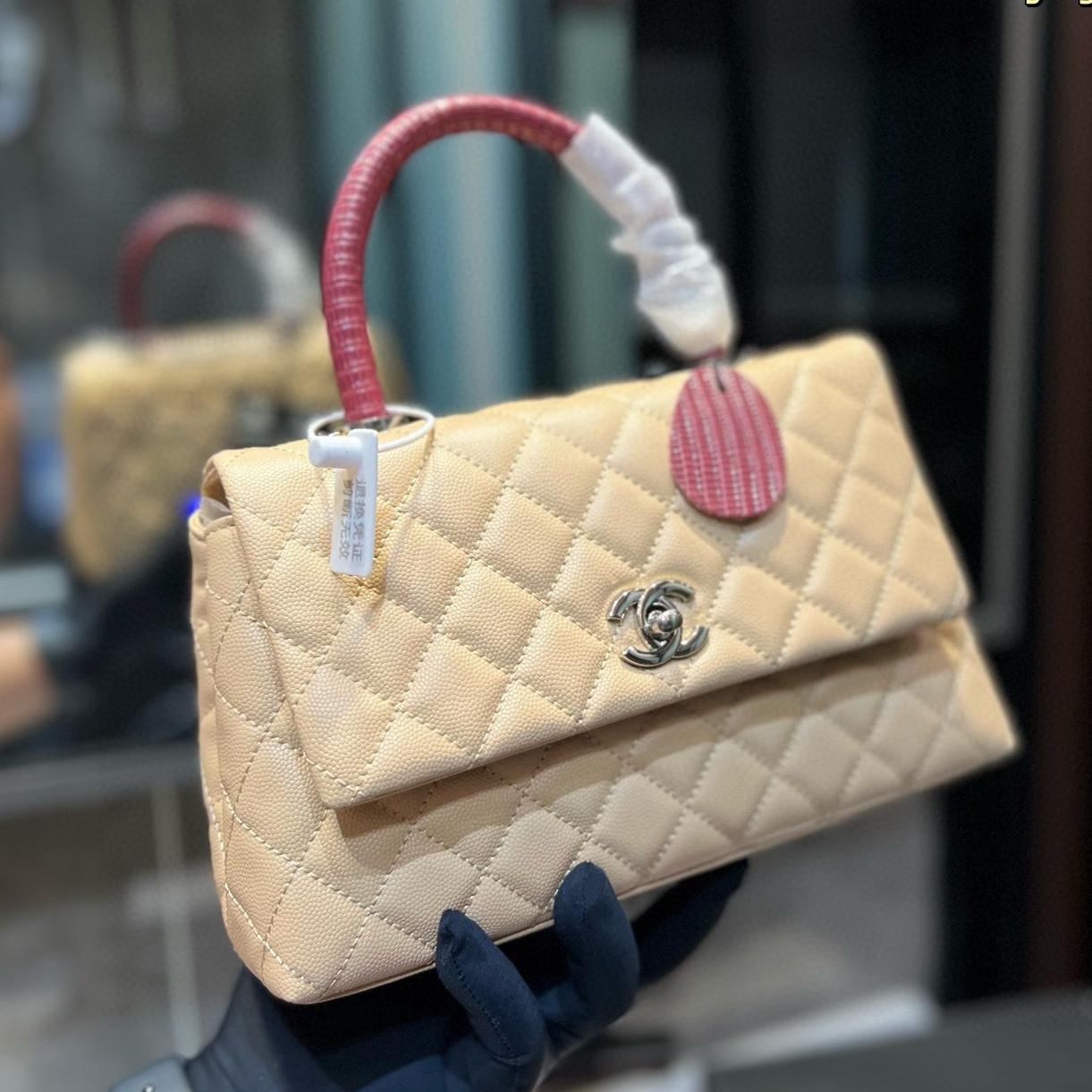 Chanel Coco Handle Quilted Lizard Handle Bag Caviar Leather Silver Hardware