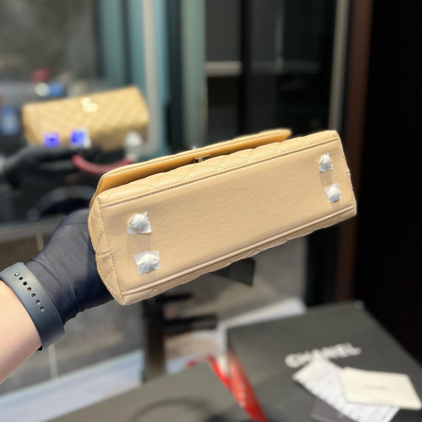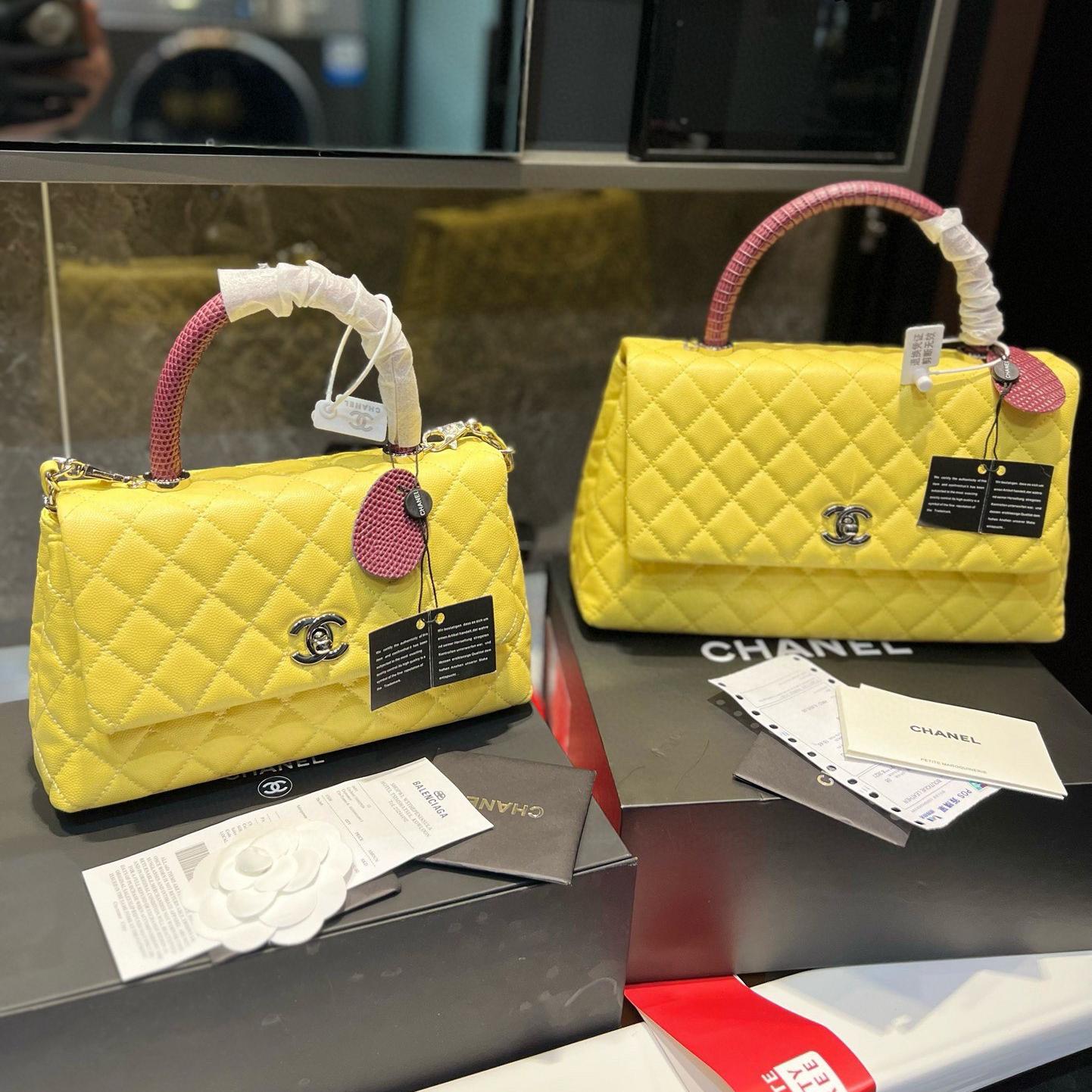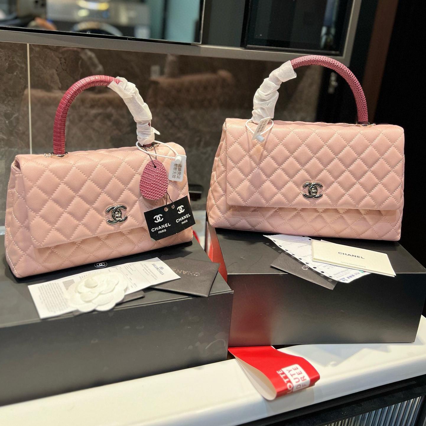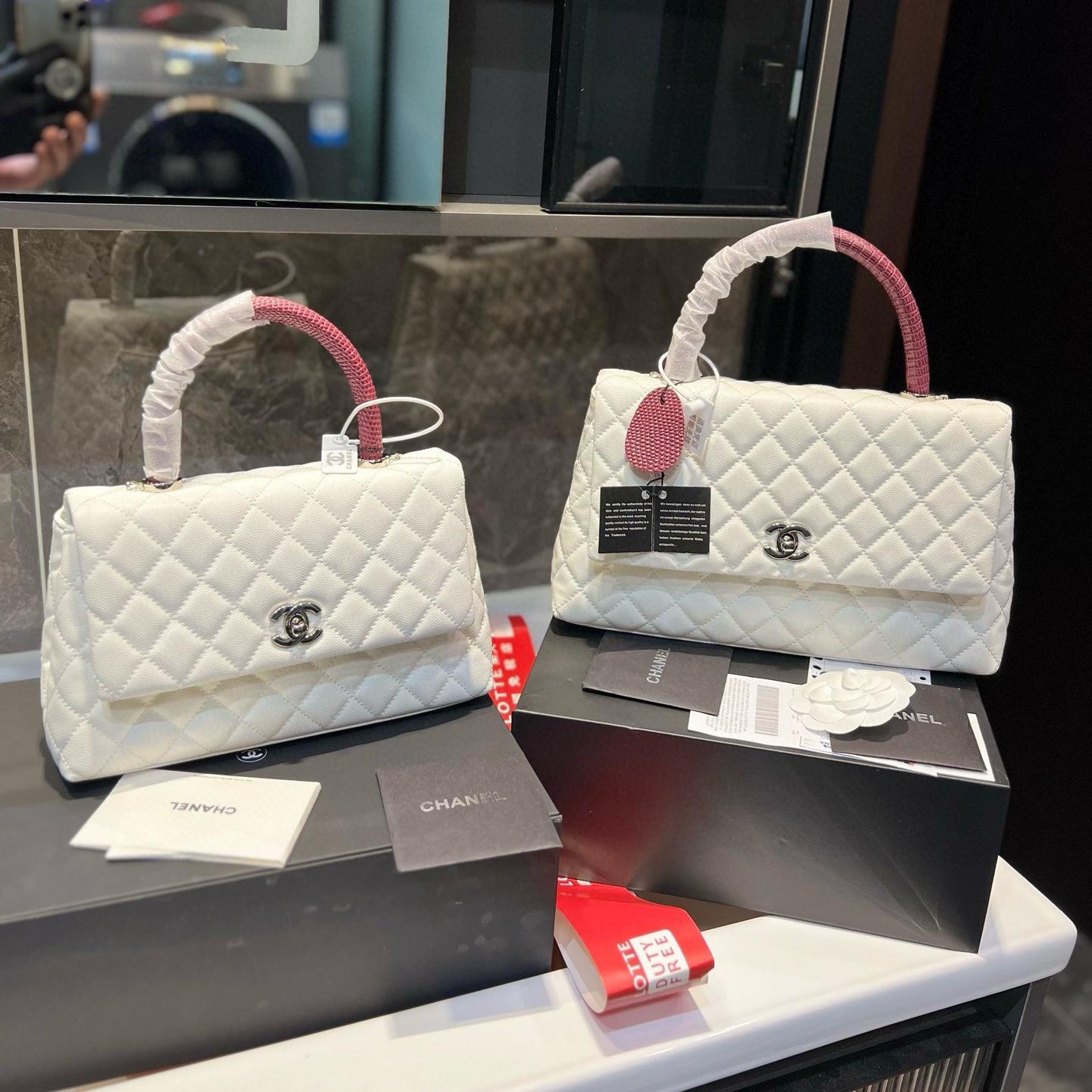 Chanel Coco Handle Quilted Lizard Handle Bag Caviar Leather Silver Hardware