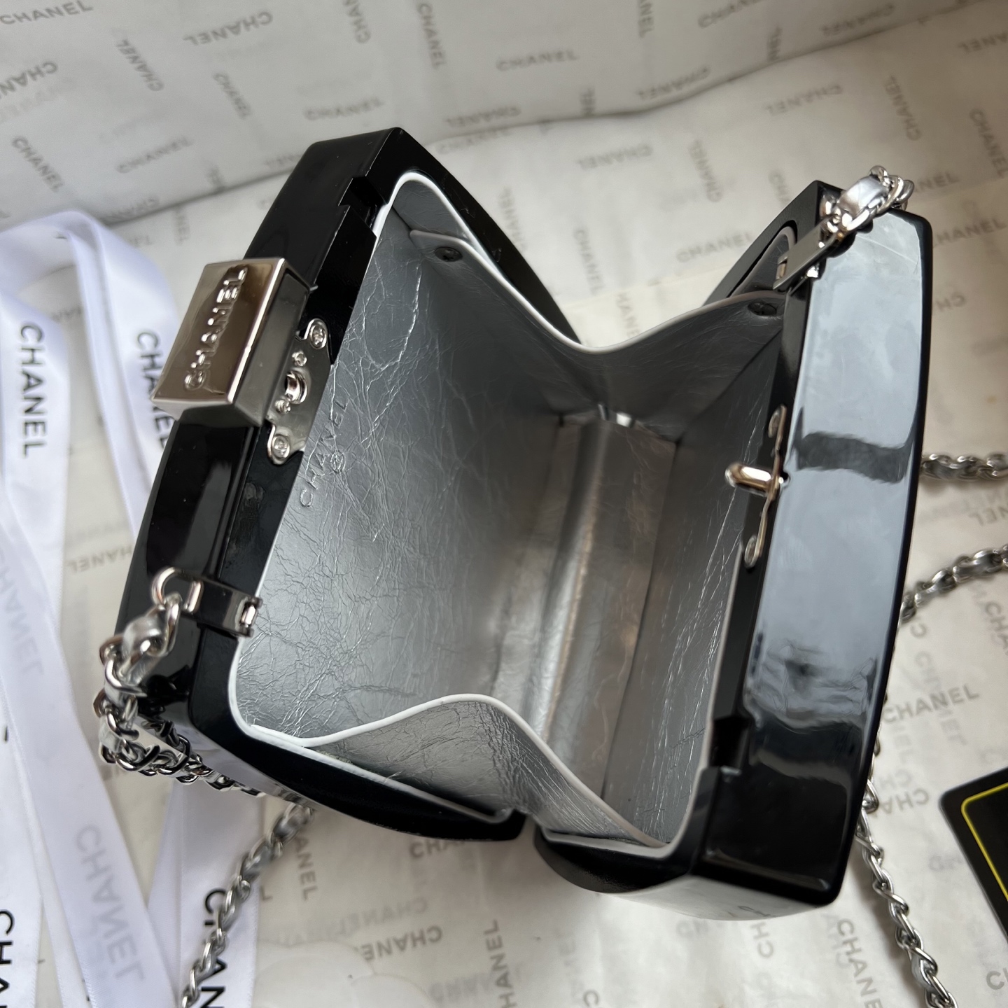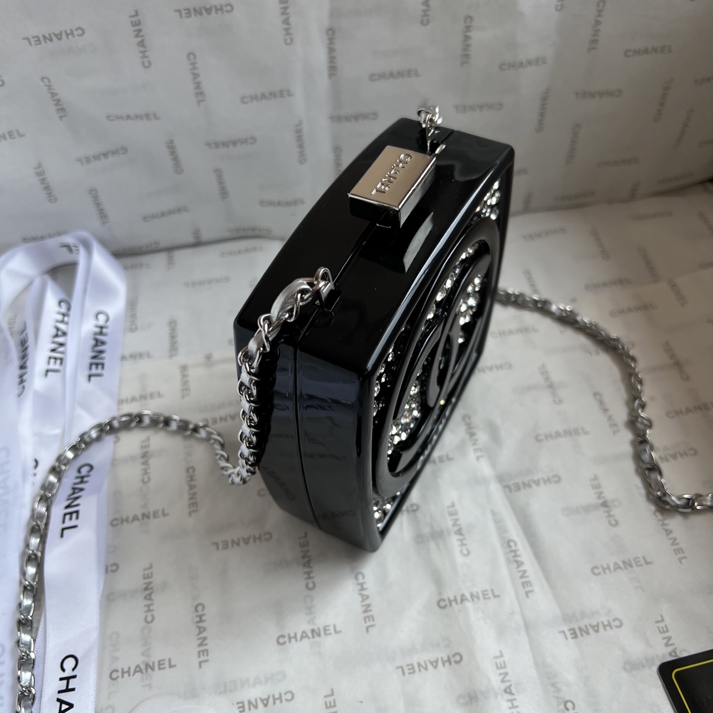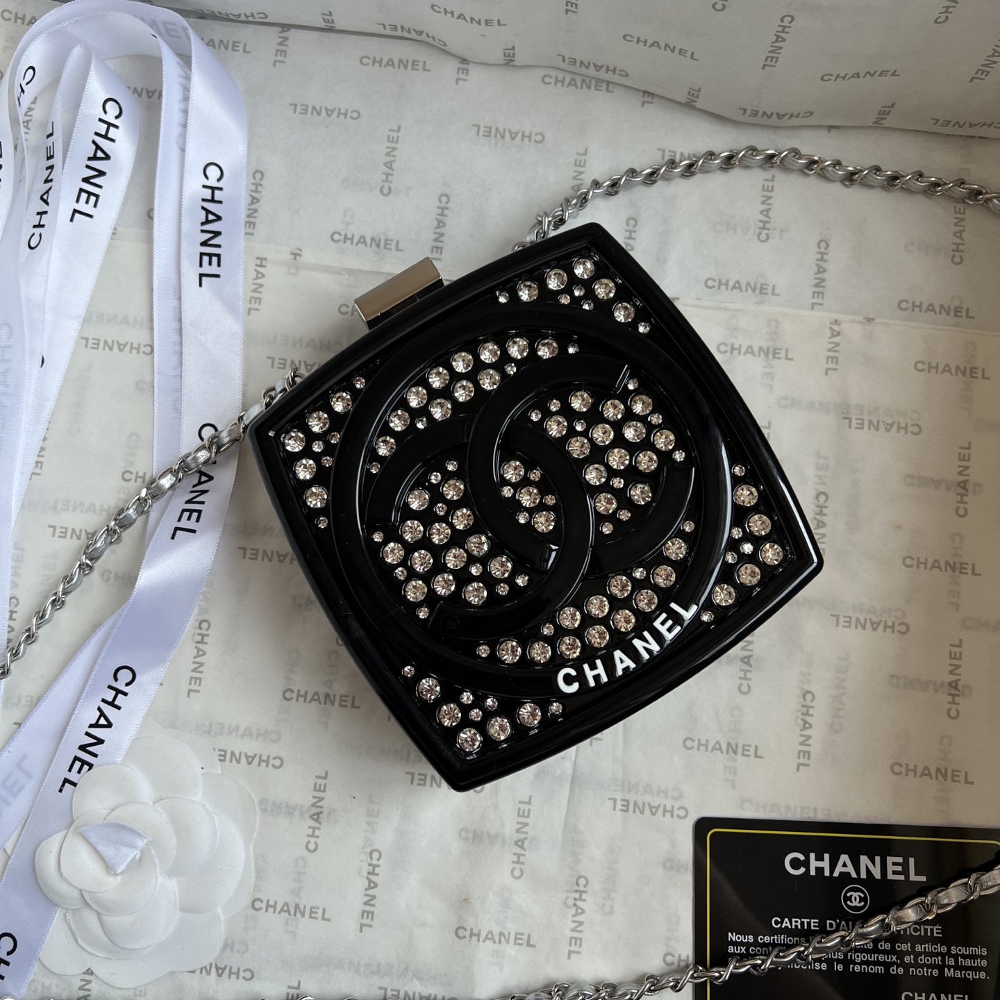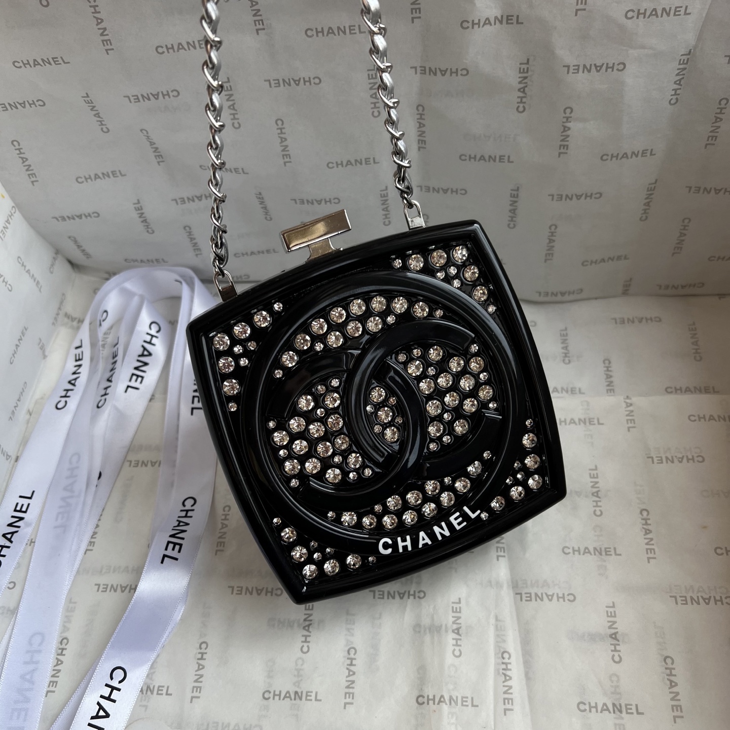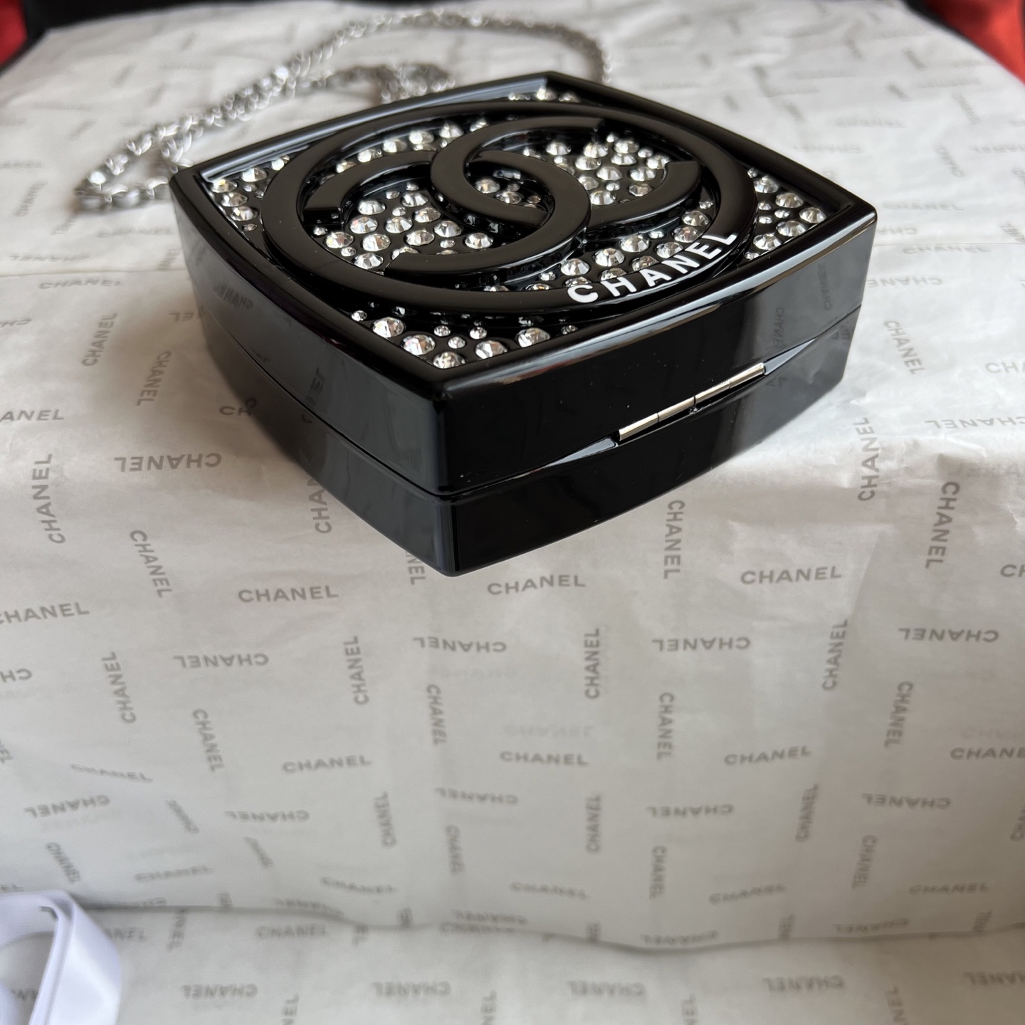 The limited-edition CHANEL Diamond Compact Case is dazzling, shimmering, and captivating. It's so much more beautiful in person than in the photos! It features a mirrored interior and space for cream and a lock-and-tie clasp. The diamond color and details are beautifully displayed. With its vibrant, elegant colors, ocean-inspired design, and holiday-inspired elements, it's sure to be this season's hottest item!