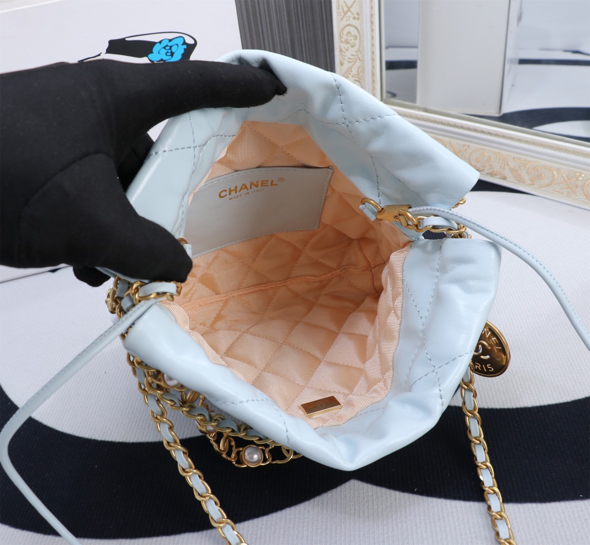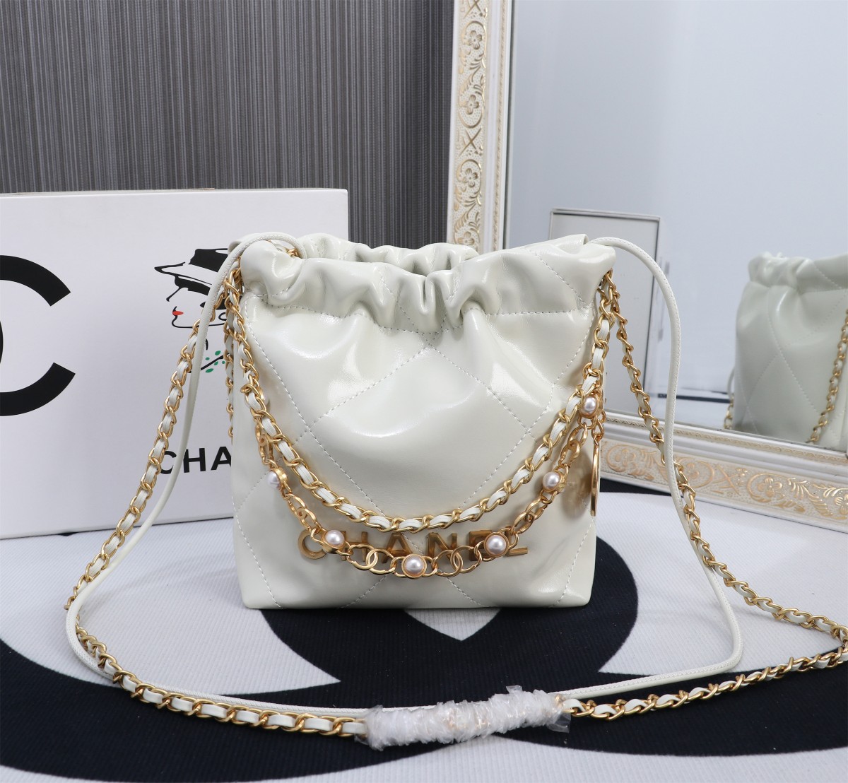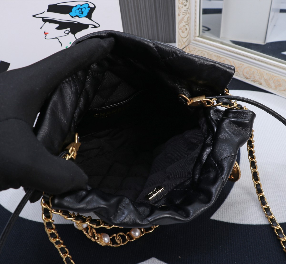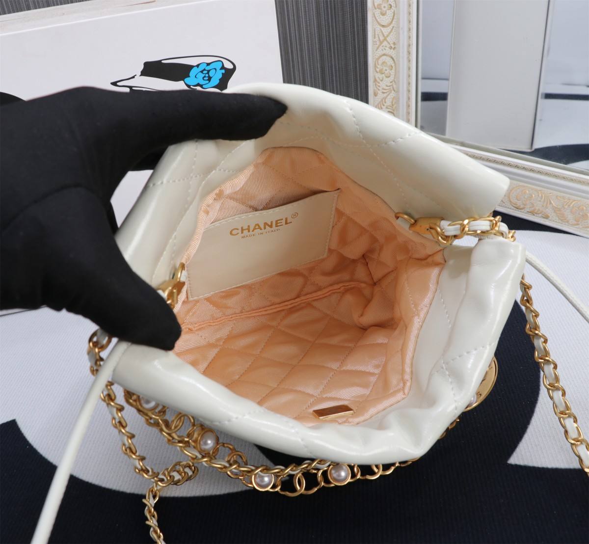 • Chanel Mini Trash Bag 20cm Calfskin Leather 8866
