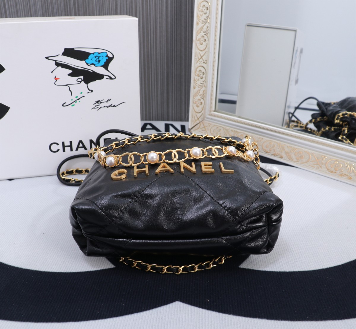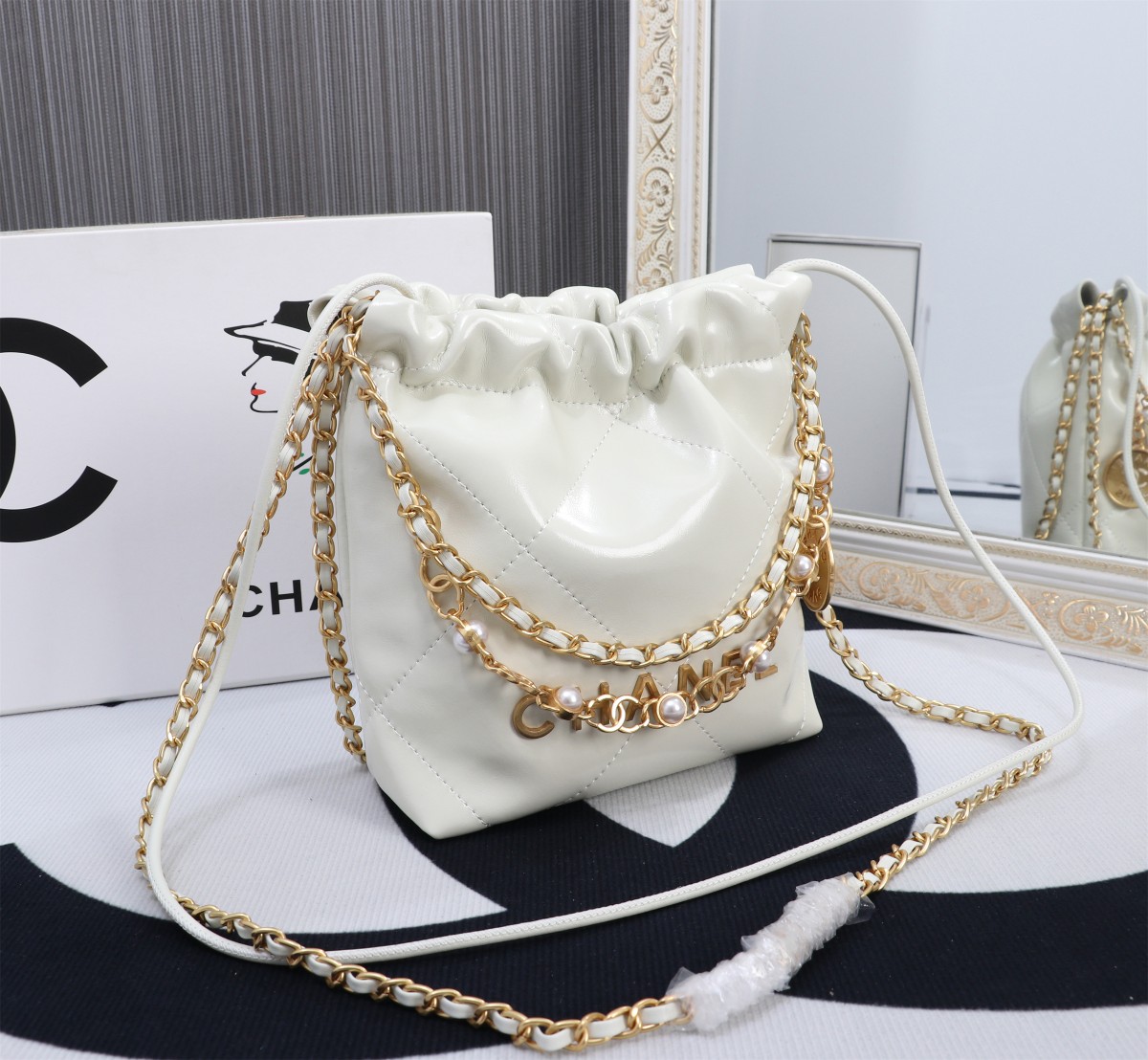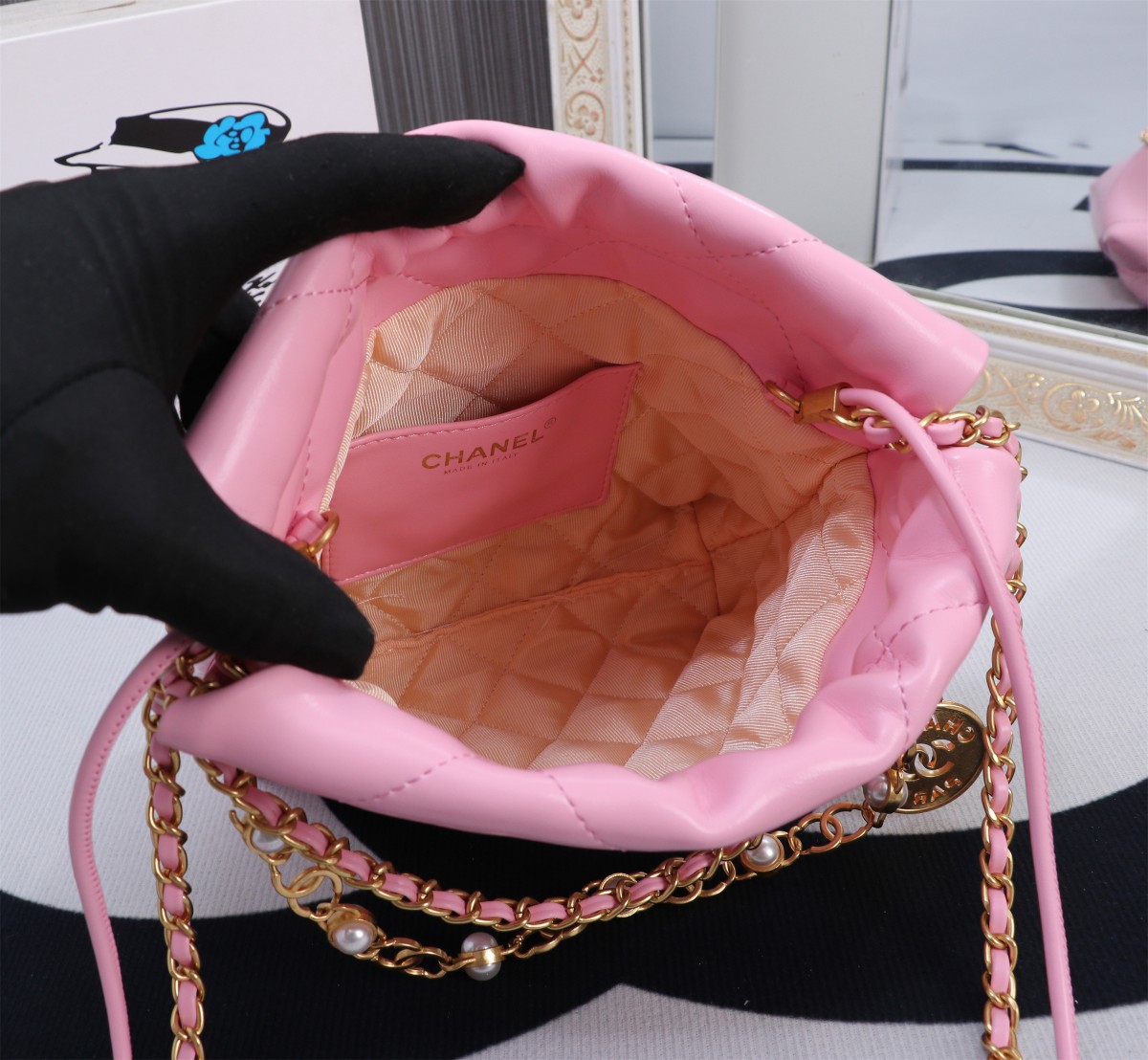 • Chanel Mini Trash Bag 20cm Calfskin Leather 8866