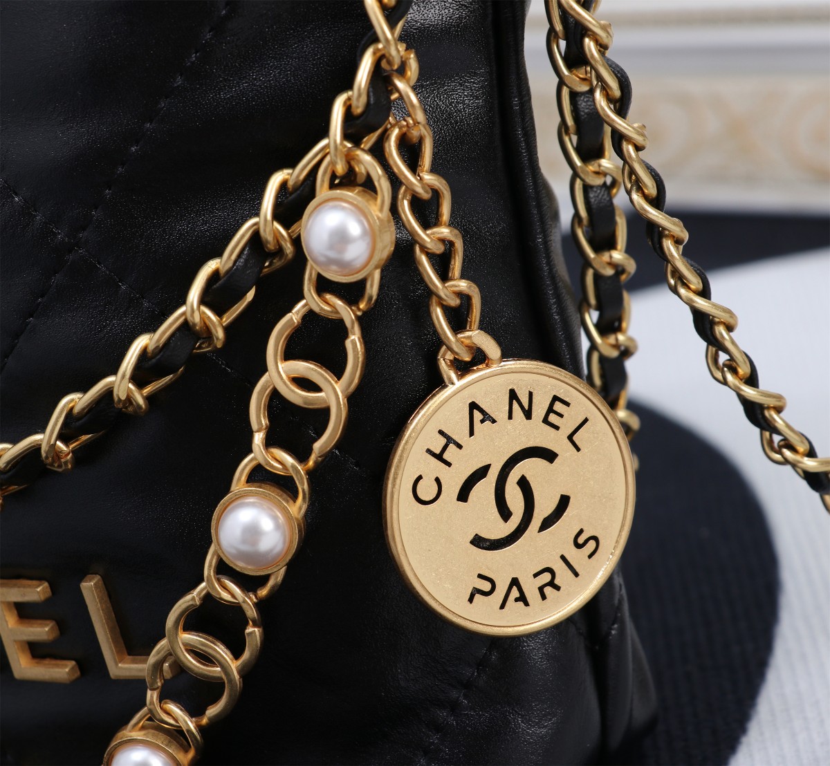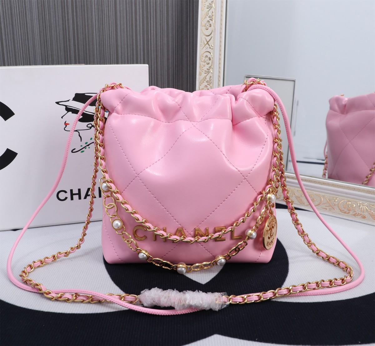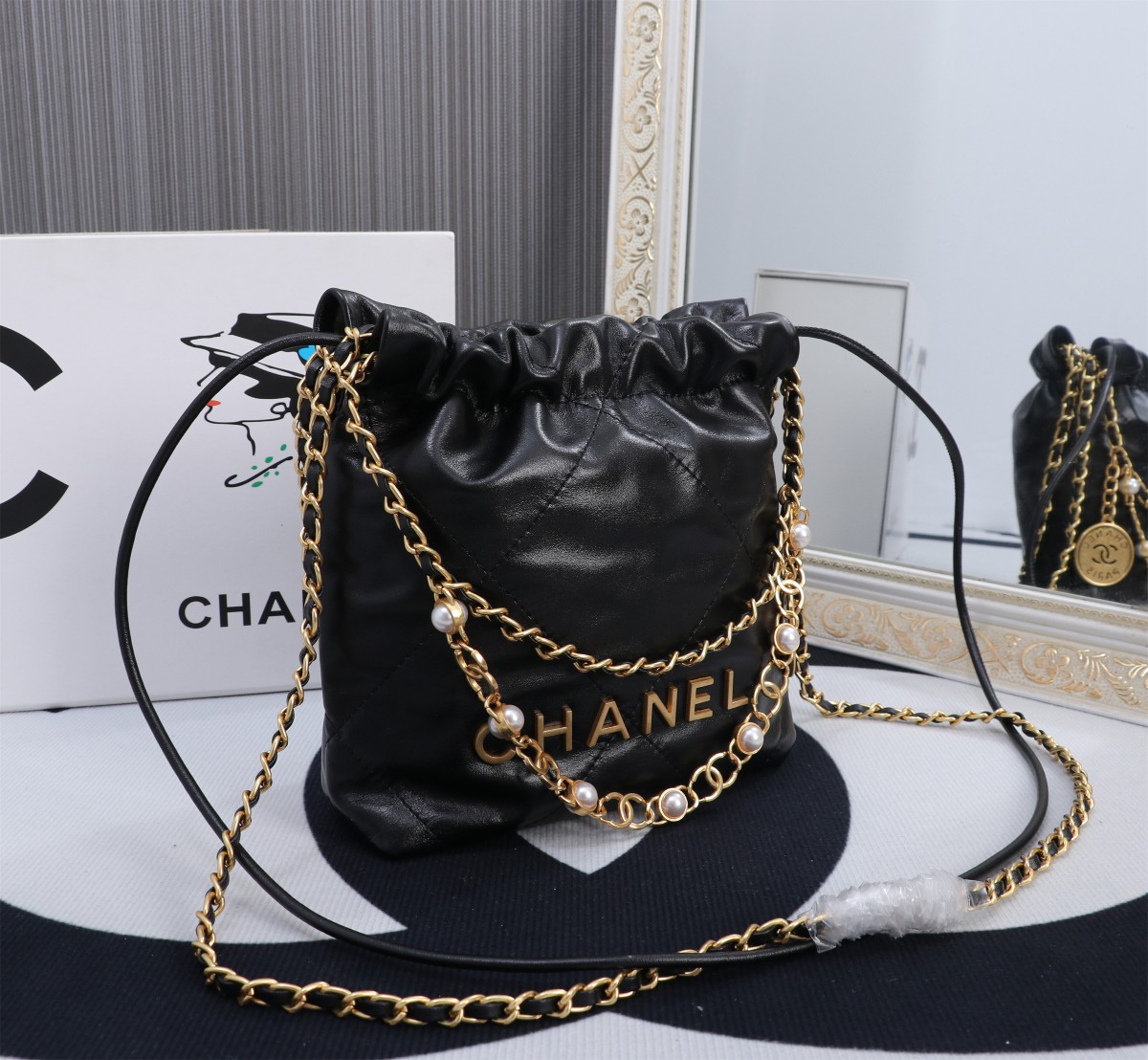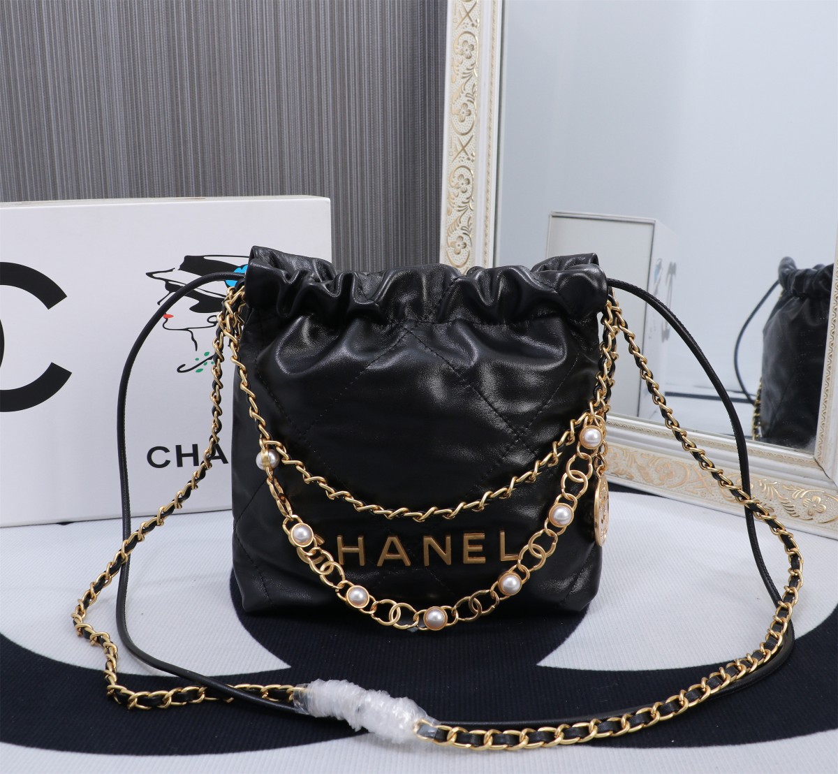 • Chanel Mini Trash Bag 20cm Calfskin Leather 8866
