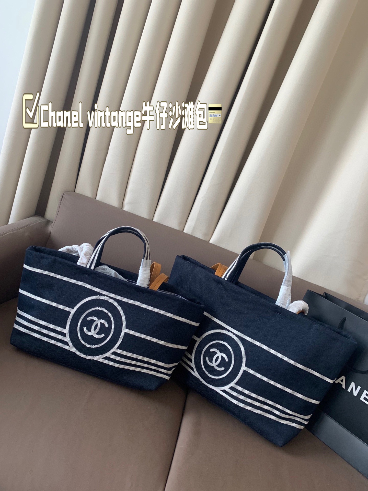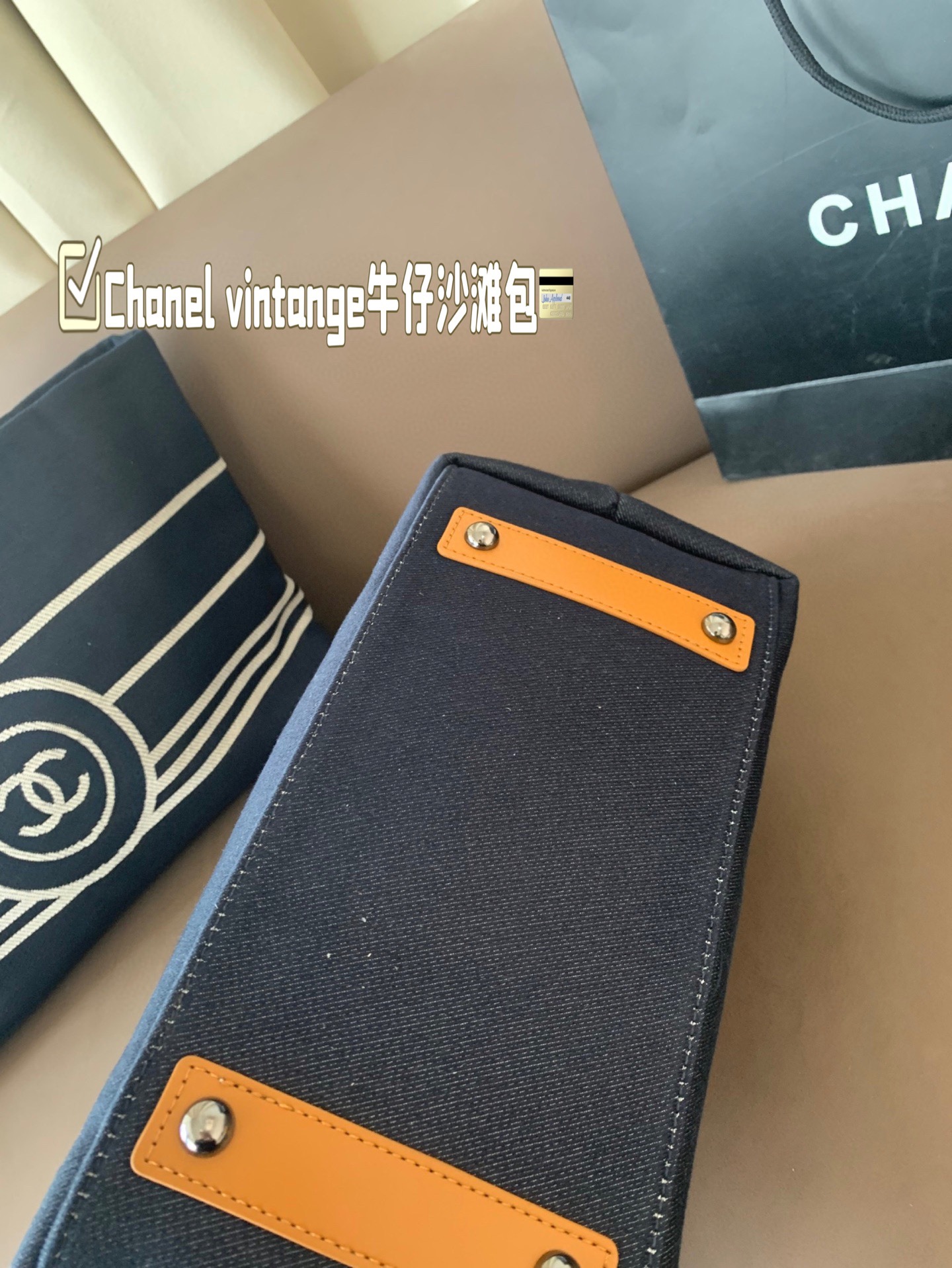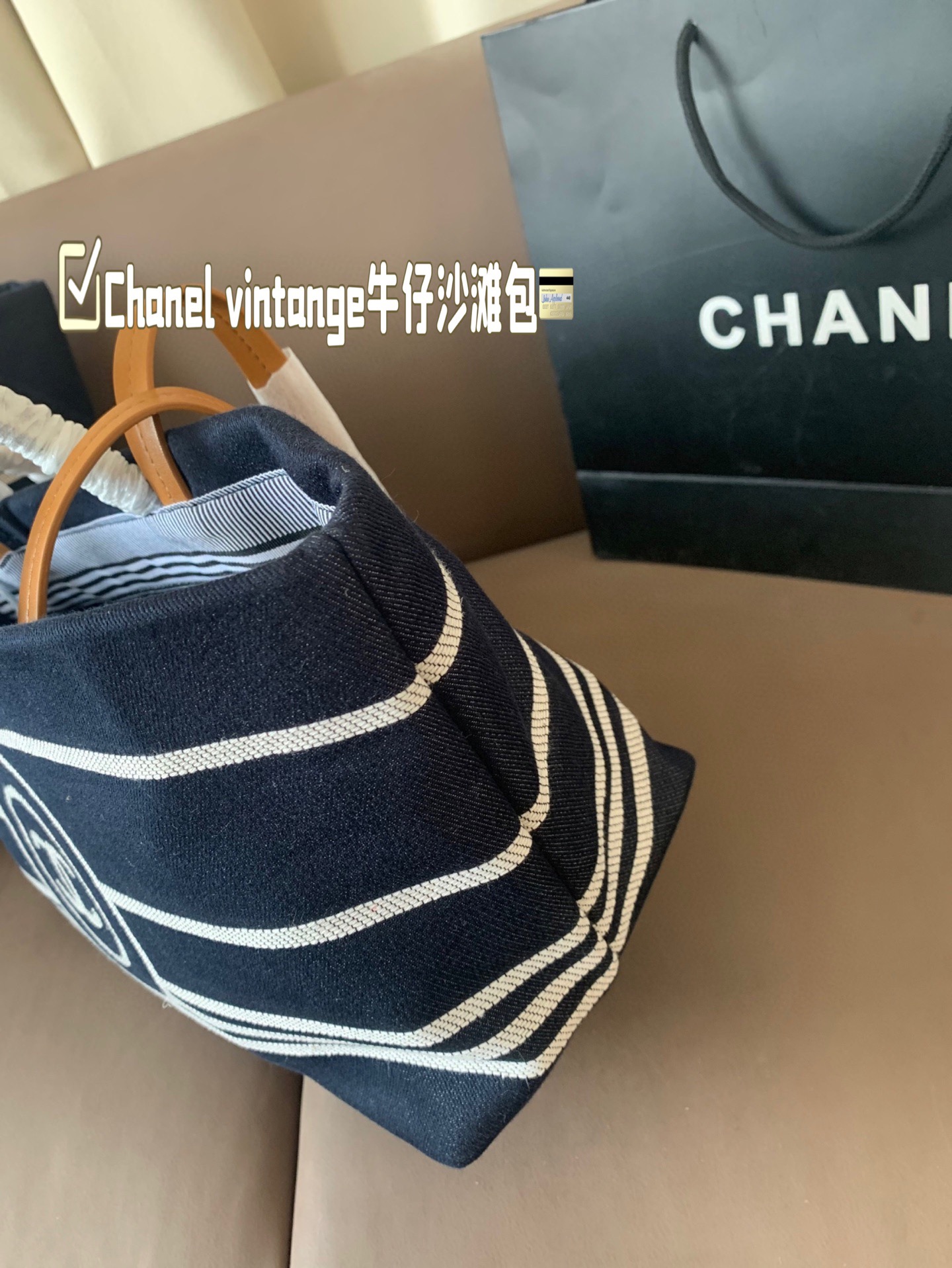 • Chanel Vintage Navy Stripe Canvas & Denim Beach Tote