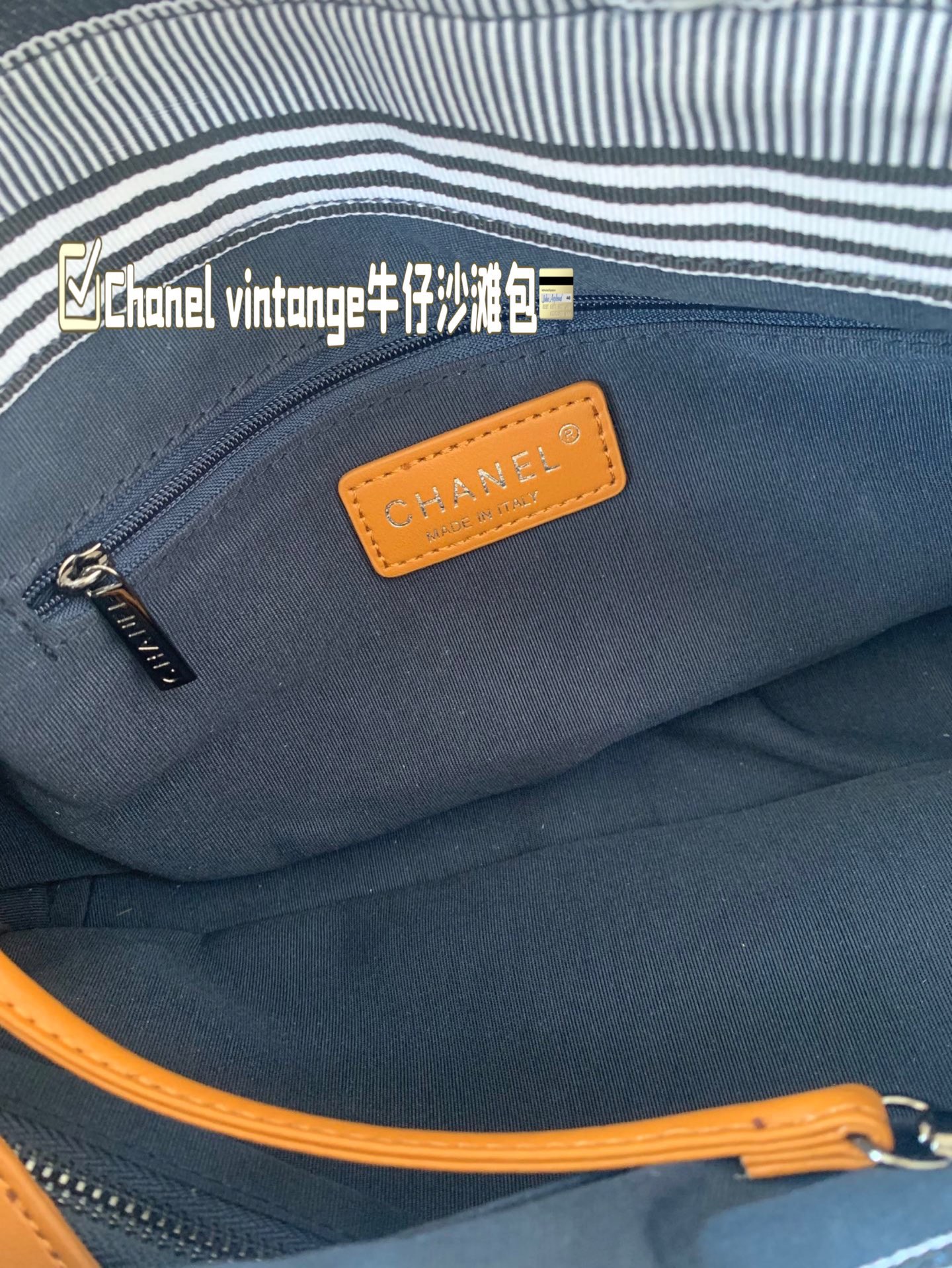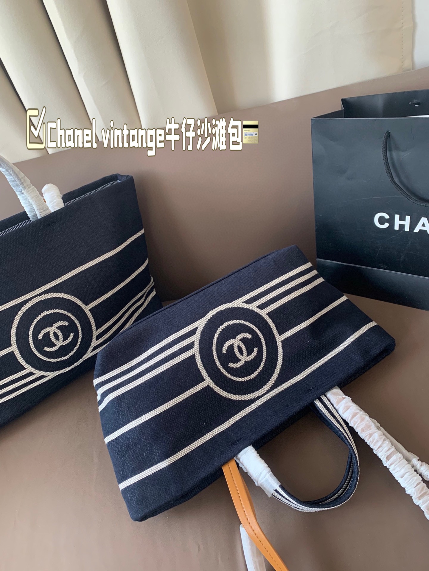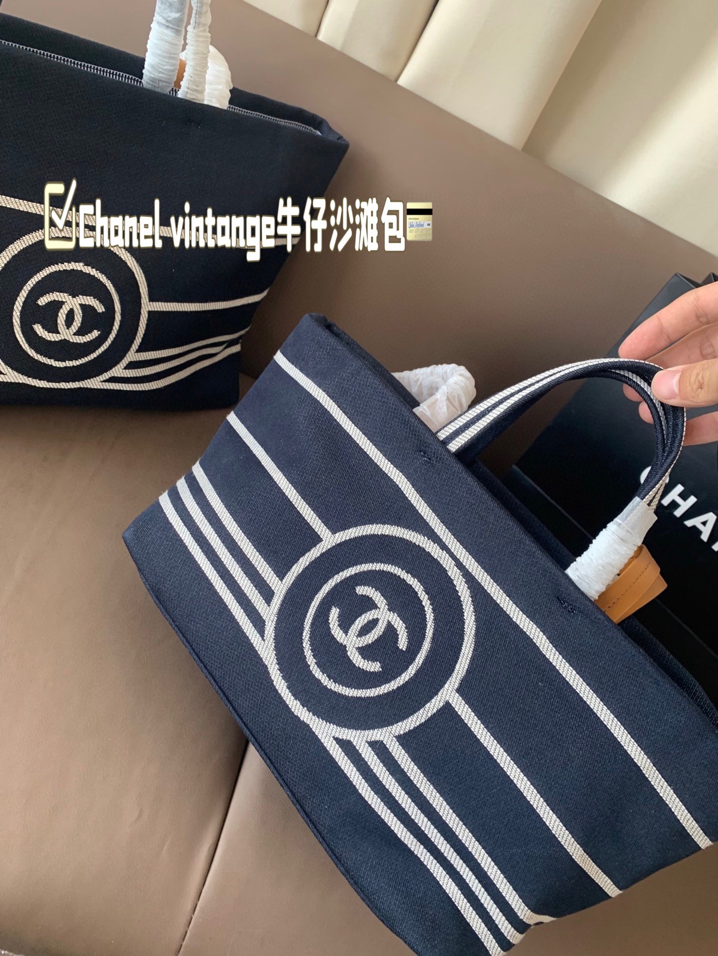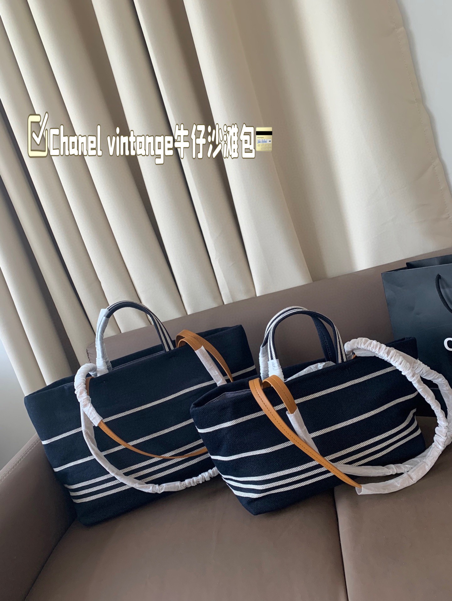 • Chanel Vintage Navy Stripe Canvas & Denim Beach Tote