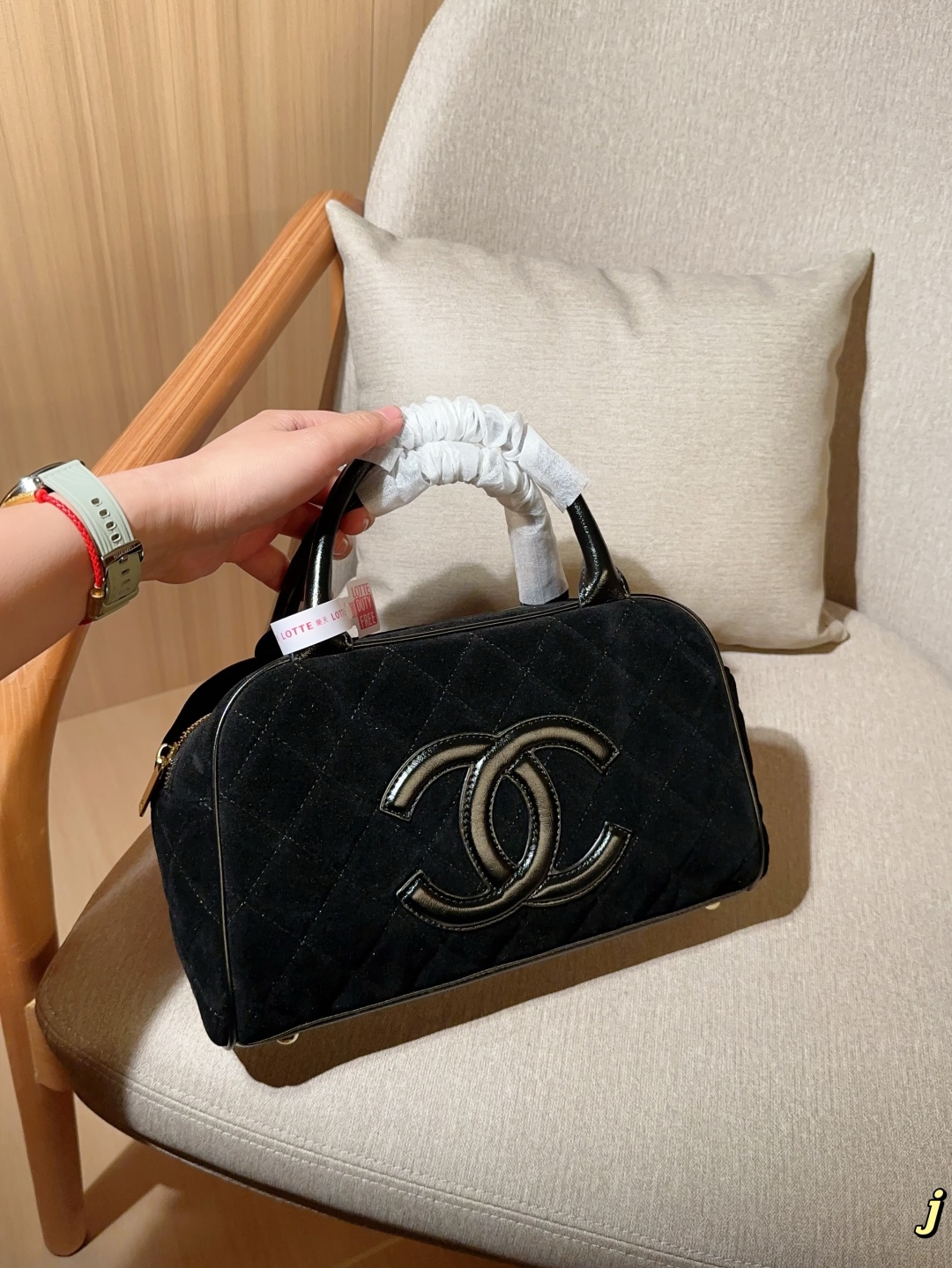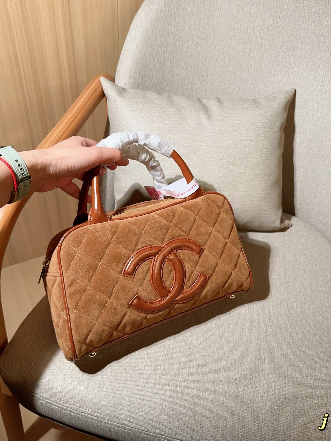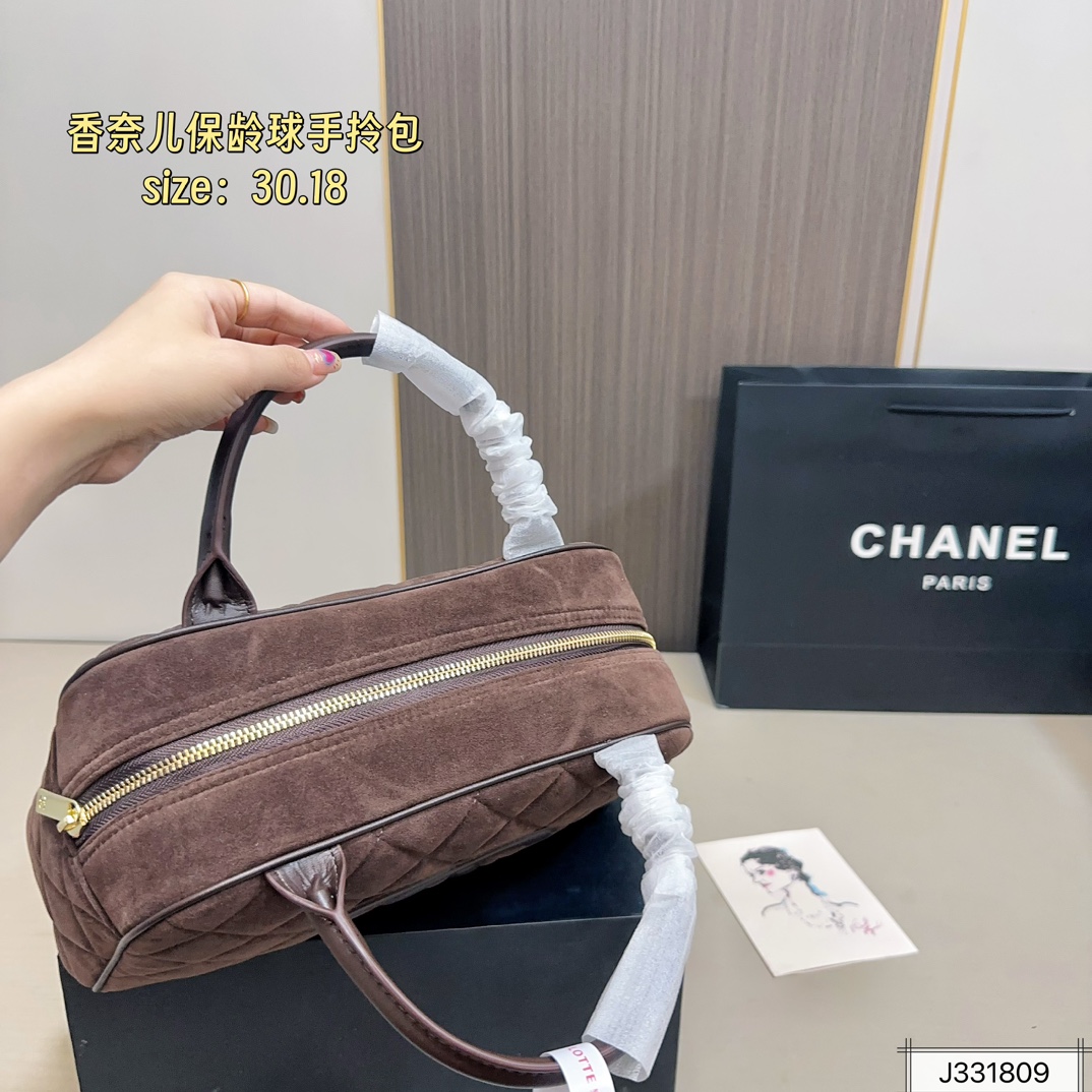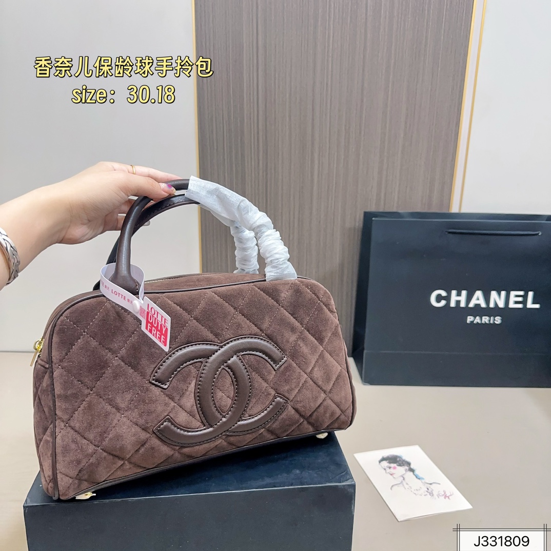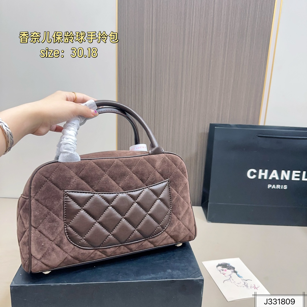 • Chanel Vintage Suede Bowling Bag 30cm