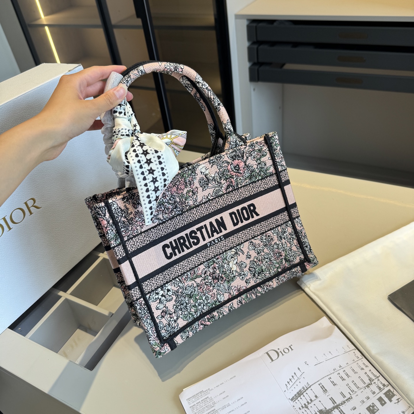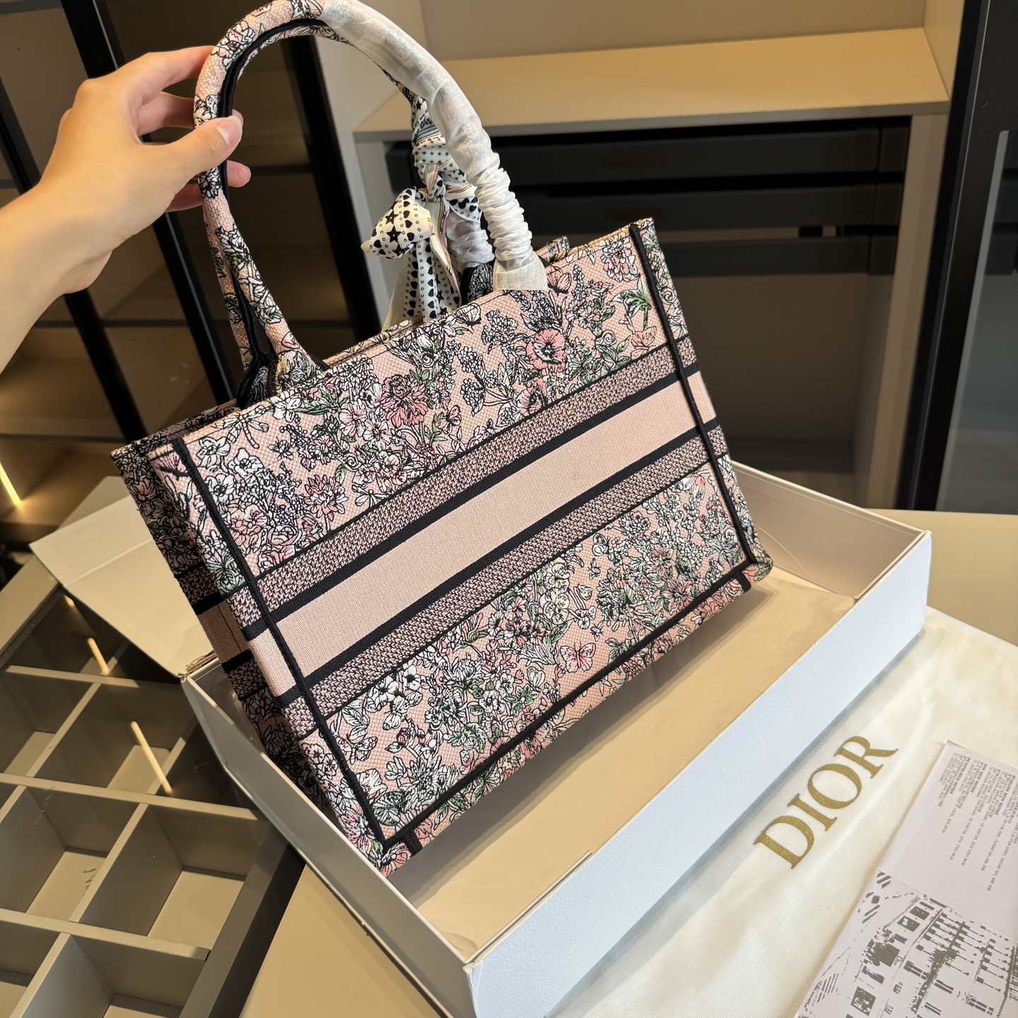 Dior Floral Embroidery Tote 10A
