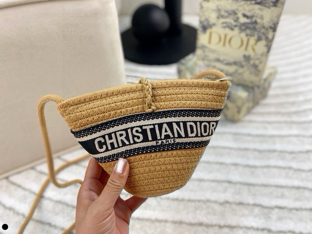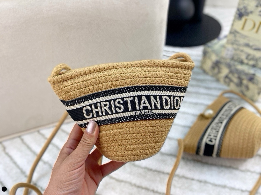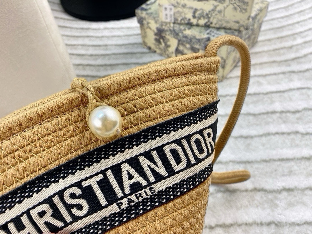 Dior Raffia Mini Bucket Bag