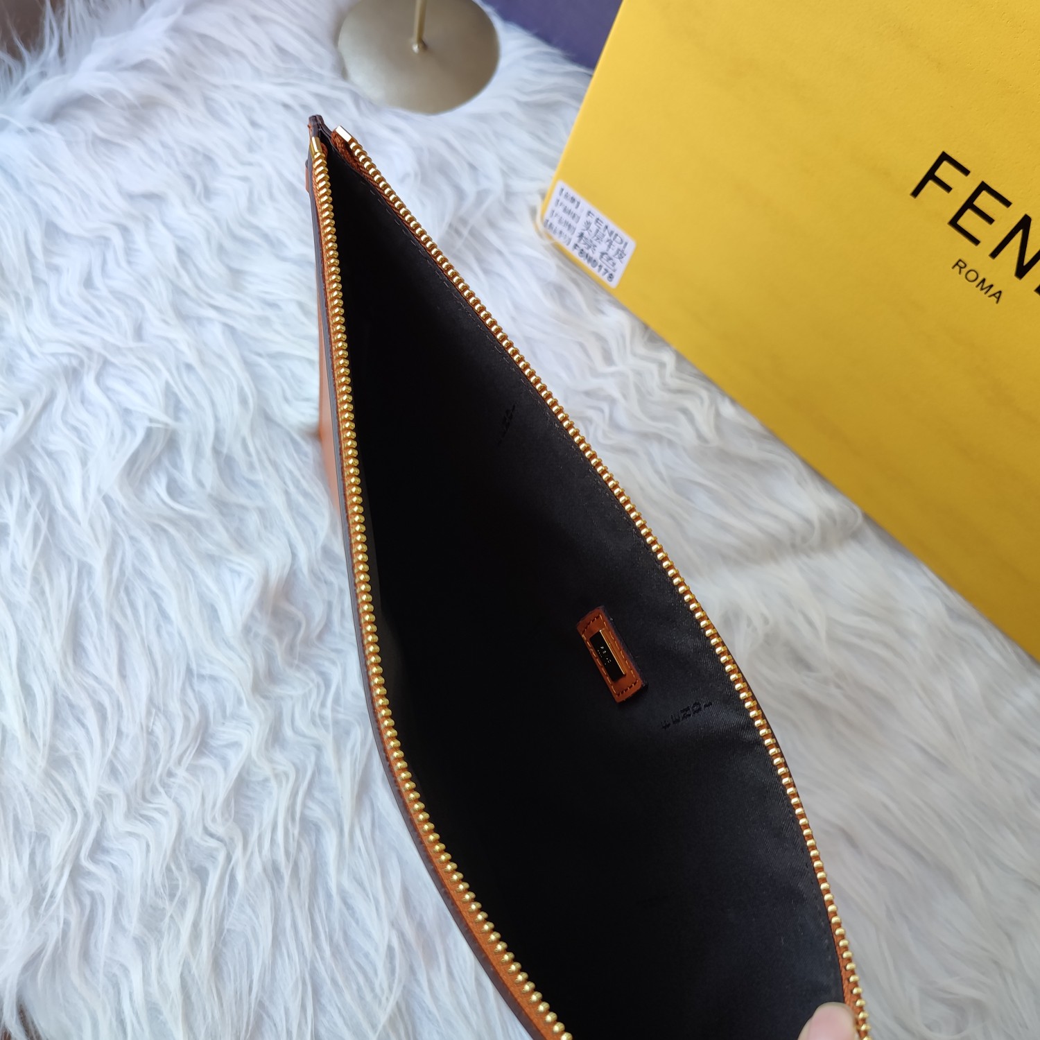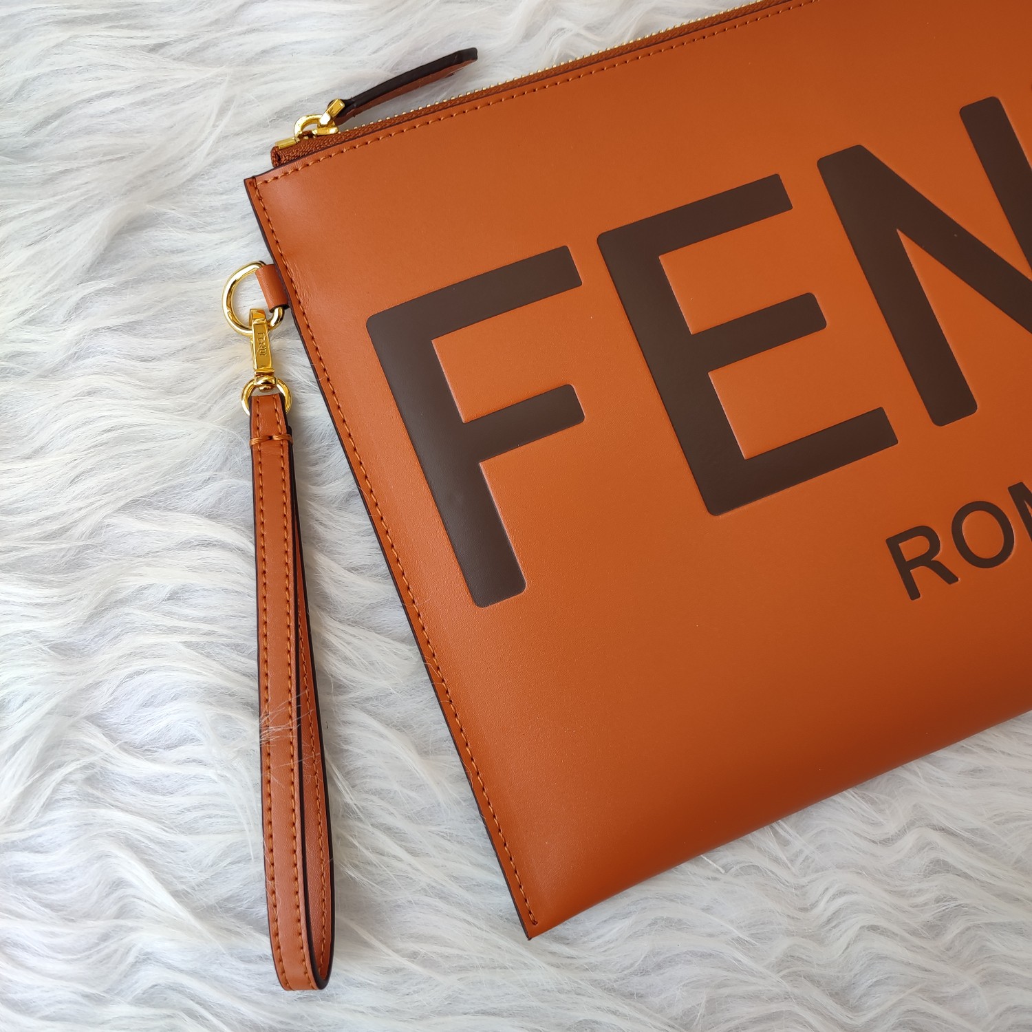 • Fendi Logo Embossed Calfskin Clutch Bag