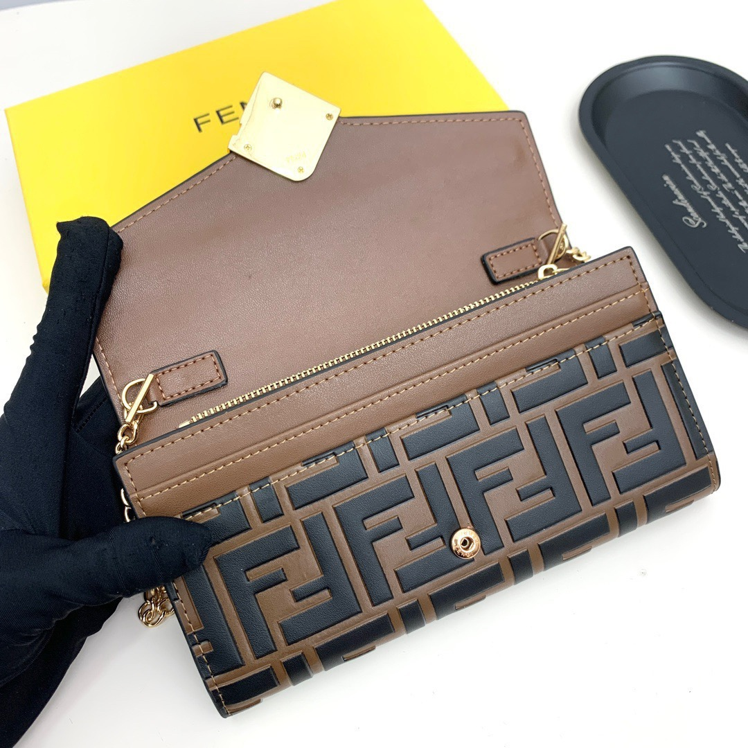 • Fendi Logo Old Flower FF Embossed Chain Waistcoat Shoulder Crossbody Bag