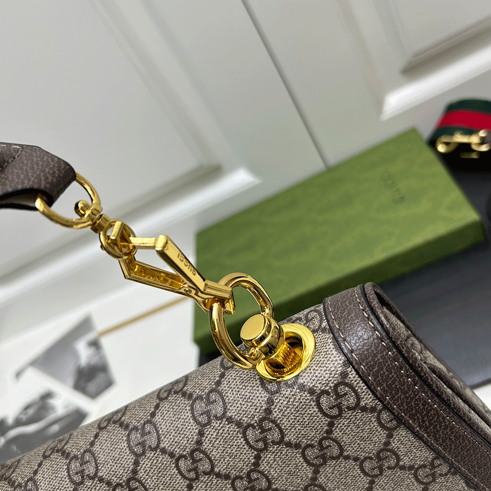 The brand's archive elements are reinterpreted with geometric shapes and presented in a variety of unique pieces. Gold-tone hardware adds a touch of elegant retro style to this piece, highlighting the classic and timeless design style, which complements the modern beauty of Hollywood shown on the fashion show. This GG Supreme canvas tote bag comes with two interchangeable shoulder straps.