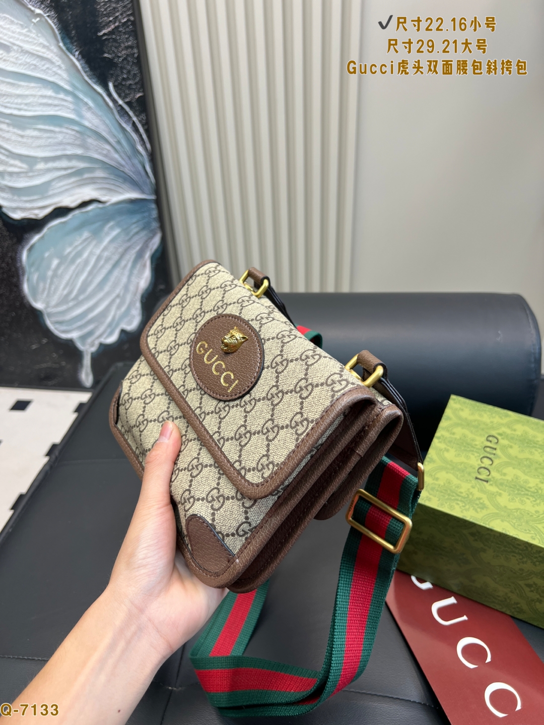 • Gucci Double-Sided Tiger Head Waist Bag 10A