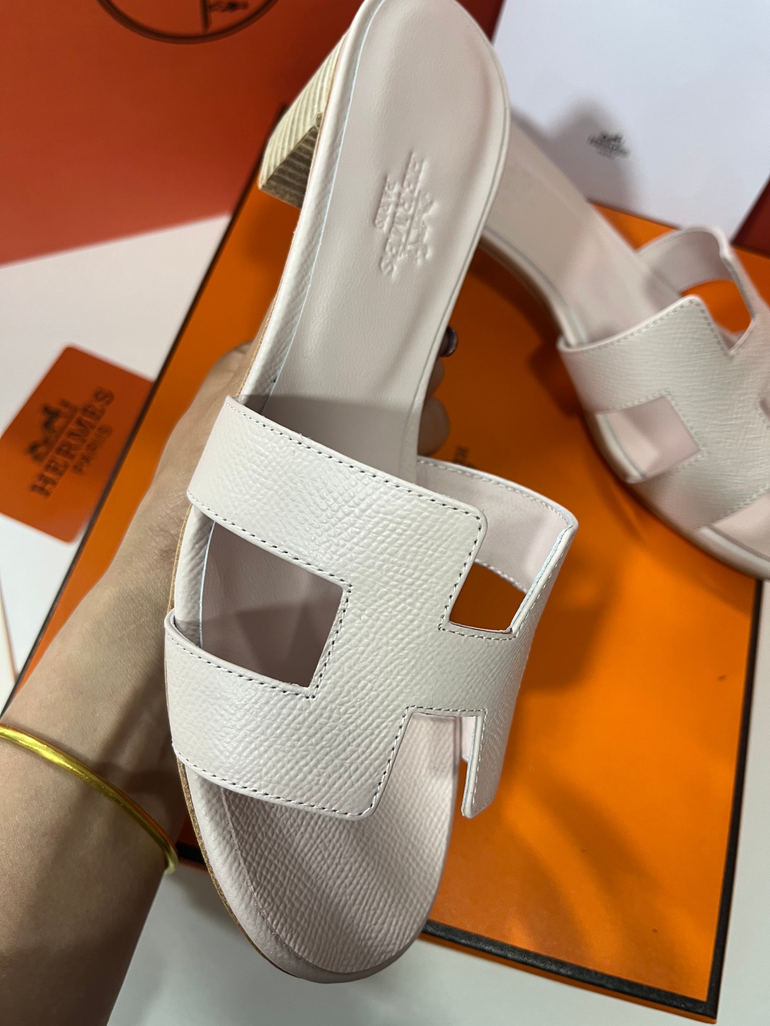 Hermes Palm epson leather H Sandals Slippers Chunky Heels