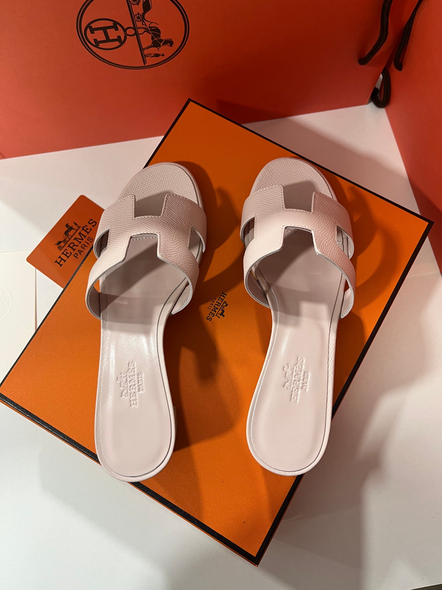 • Hermes Palm epson leather H Sandals Slippers Chunky Heels
