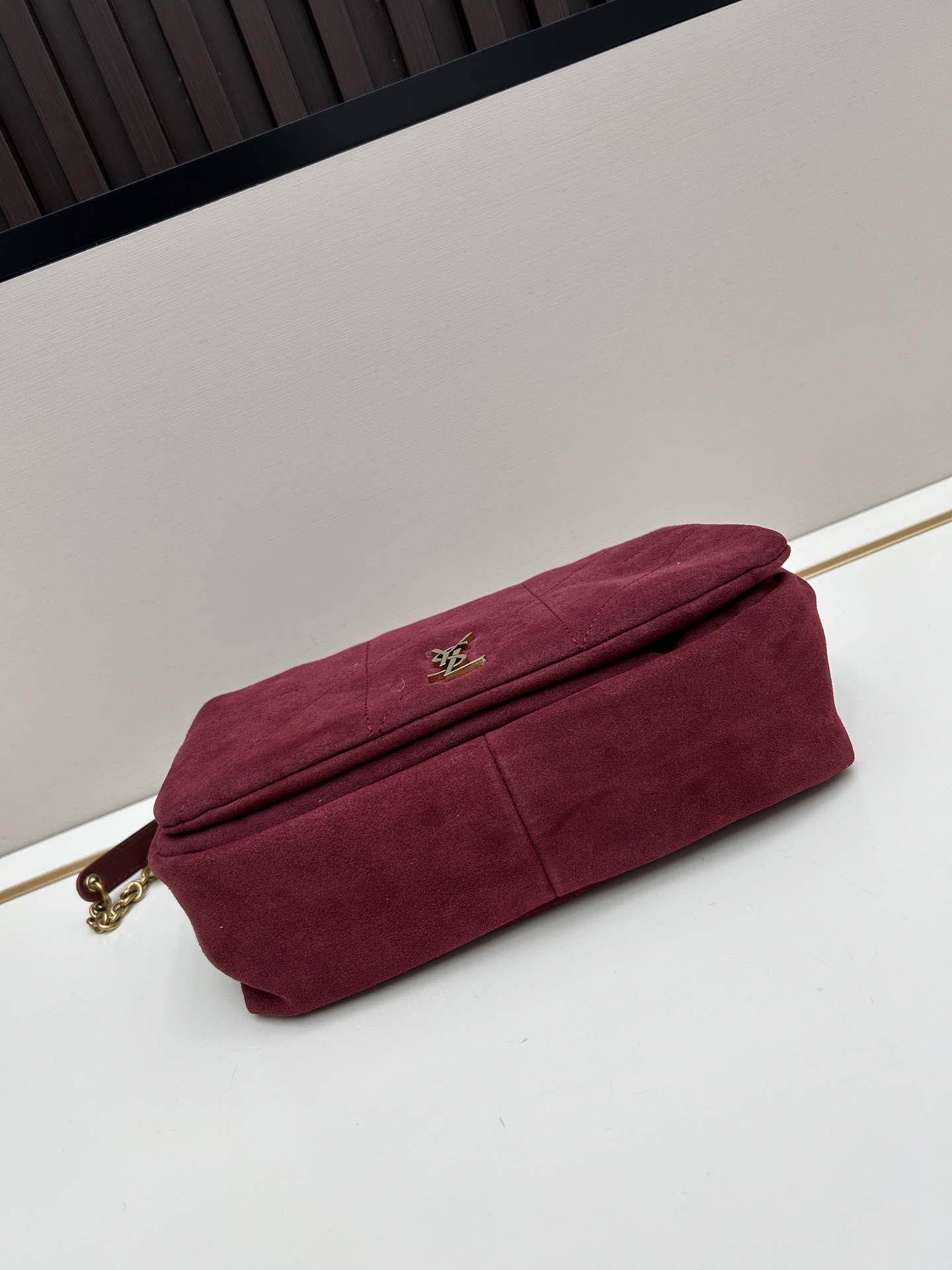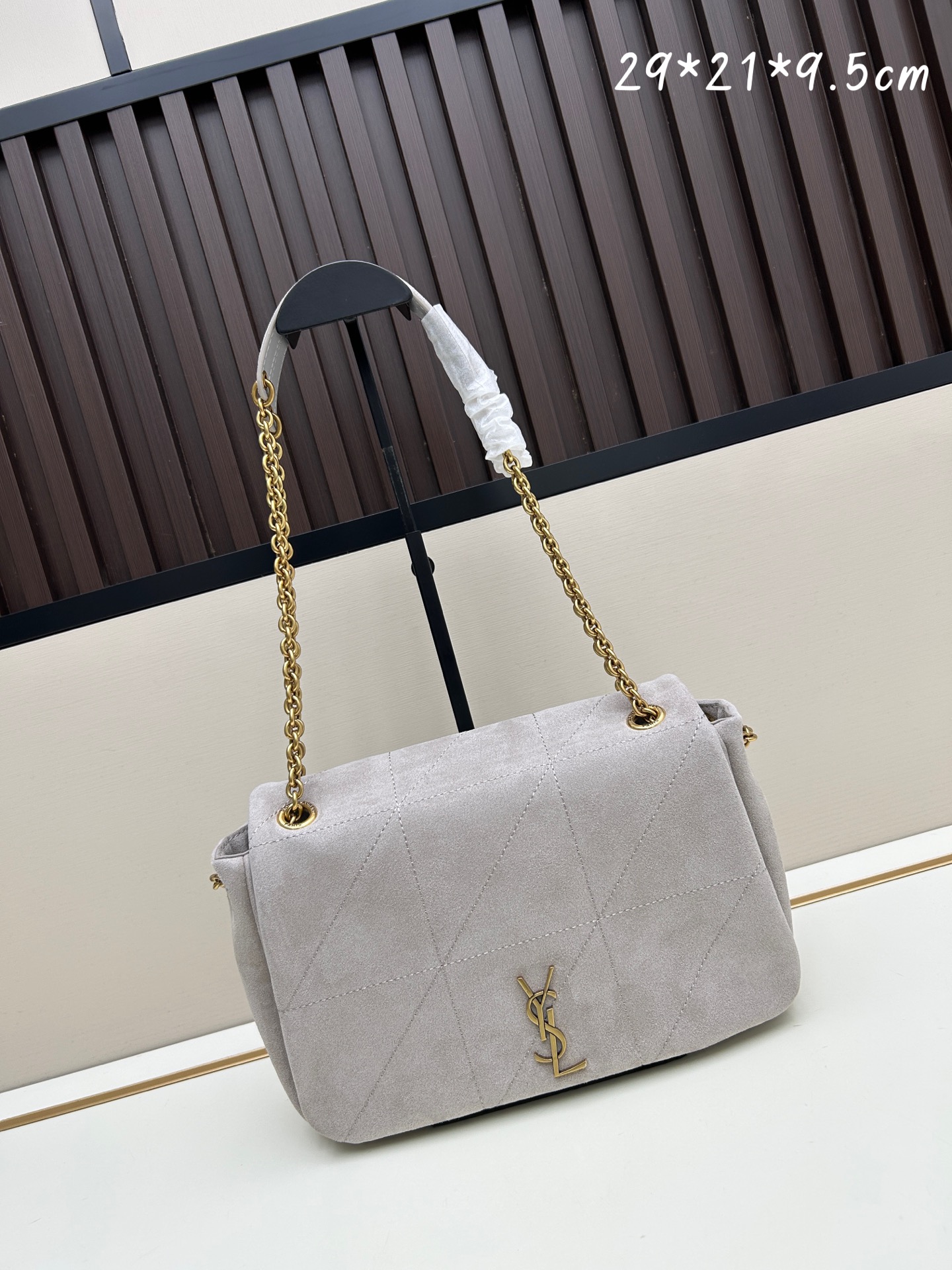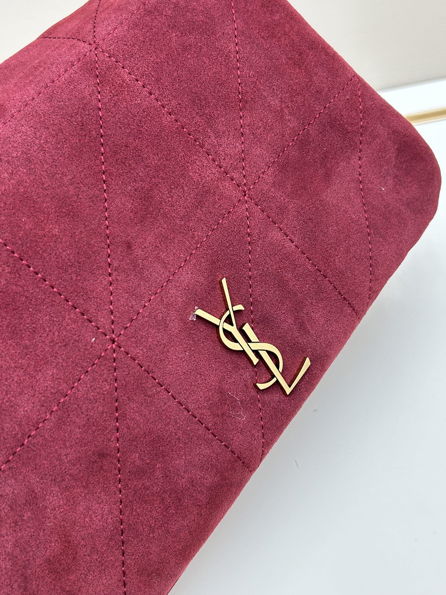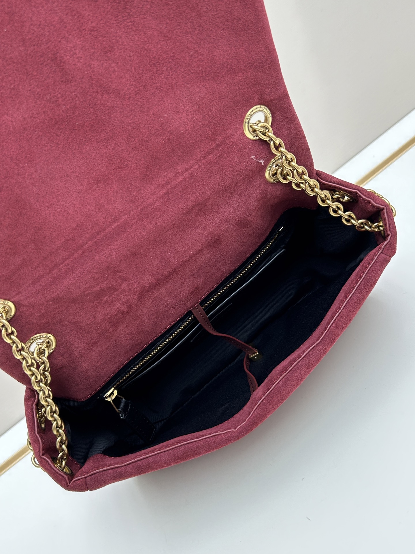 JAMIE 4.3 Medium Suede Bag. This suede bag features Carré Rive Gauche topstitching. This lightweight, compact bag features an adjustable sliding chain shoulder strap for shoulder or crossbody wear.