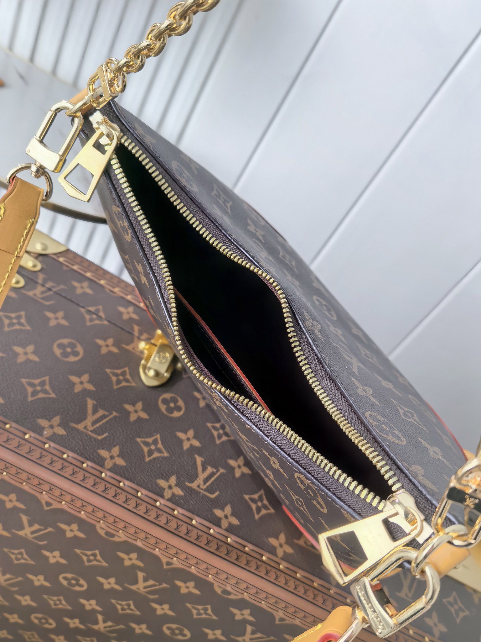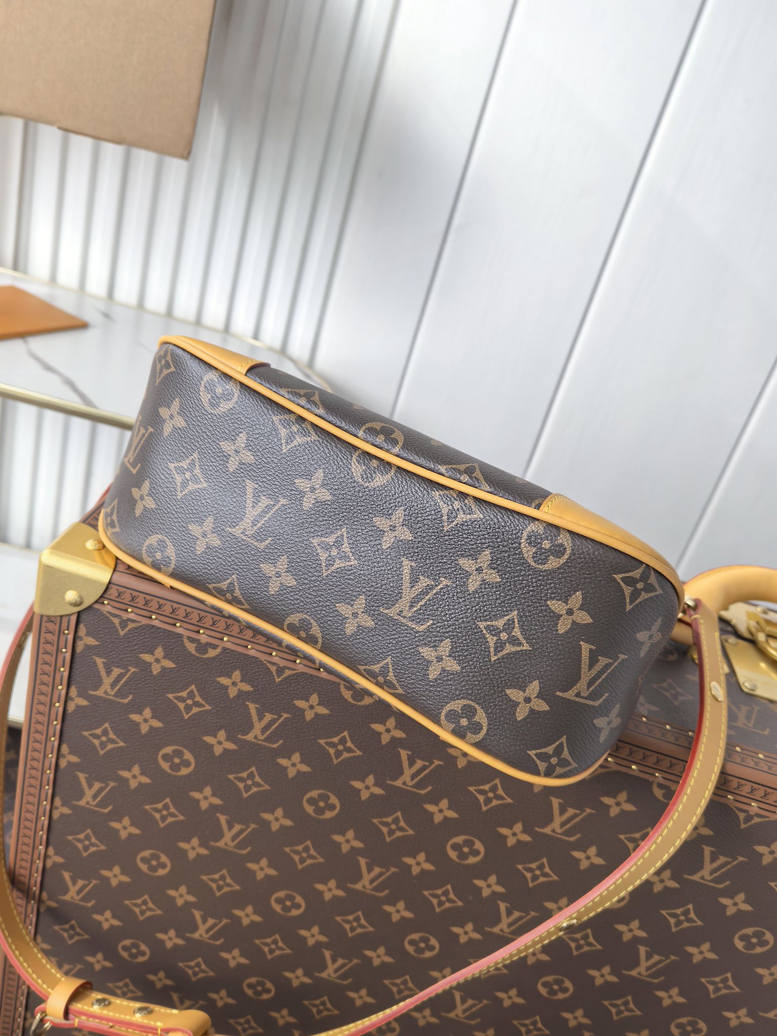 The Louis Vuitton Odeon Small Handbag, in yellow leather and black with Monogram pattern, exudes a vintage feel with its Monogram canvas and reinforced leather trims. The adjustable strap allows for shoulder or crossbody wear, and the zipper allows for easy access to belongings.