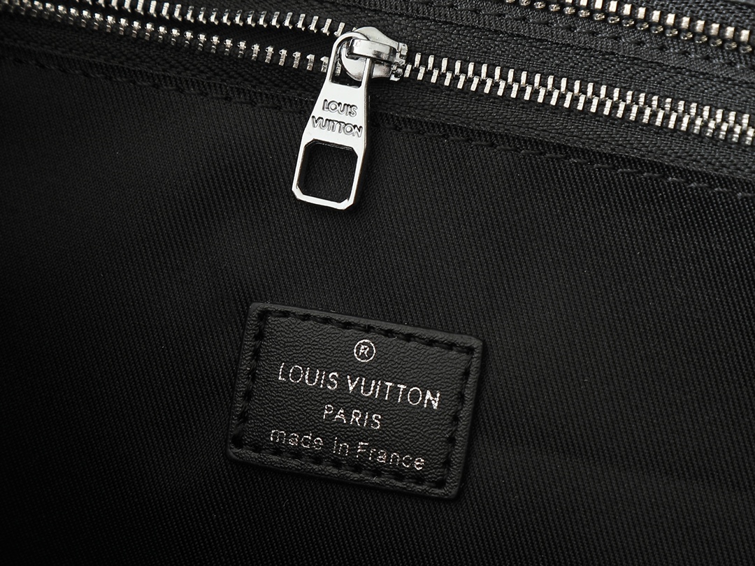 The Sac Plat 24H bag, crafted from elegant Monogram Eclipse coated canvas, features classic styling with side straps, handle fastenings, and a removable name tag. It boasts ample space for a zippered and patch pockets, one of which can accommodate a laptop, and features long and short handles for shoulder or hand carry.