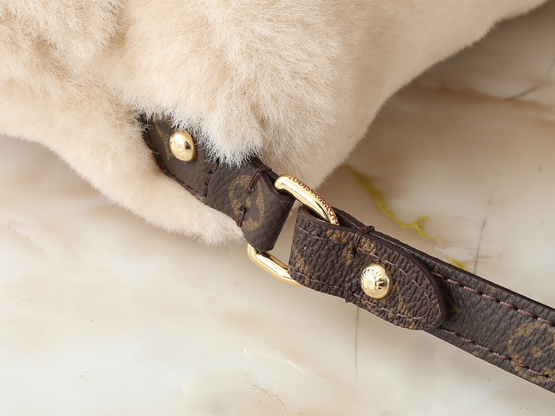 Crafted from soft shearling, this Sunset bag embodies the LV Ski Cozygram collection with a chic design. Lustrous hardware and Monogram details elevate a classic style, instantly elevating any winter look. Its spacious interior easily accommodates day and nighttime essentials, making it the perfect bag for relaxing after the ski season.
