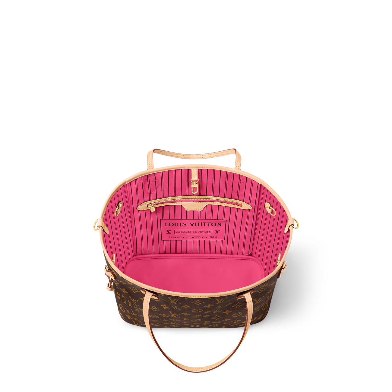 Offered in a new reversible design, the iconic Neverfull Bandoulière Inside Out MM tote is a timeless choice. This edition is made from Monogram canvas and has a brightly colored textile that’s patterned with stripes. It also features a removable strap that allows for shoulder carry. Use the side hooks to transform it into a hobo silhouette.