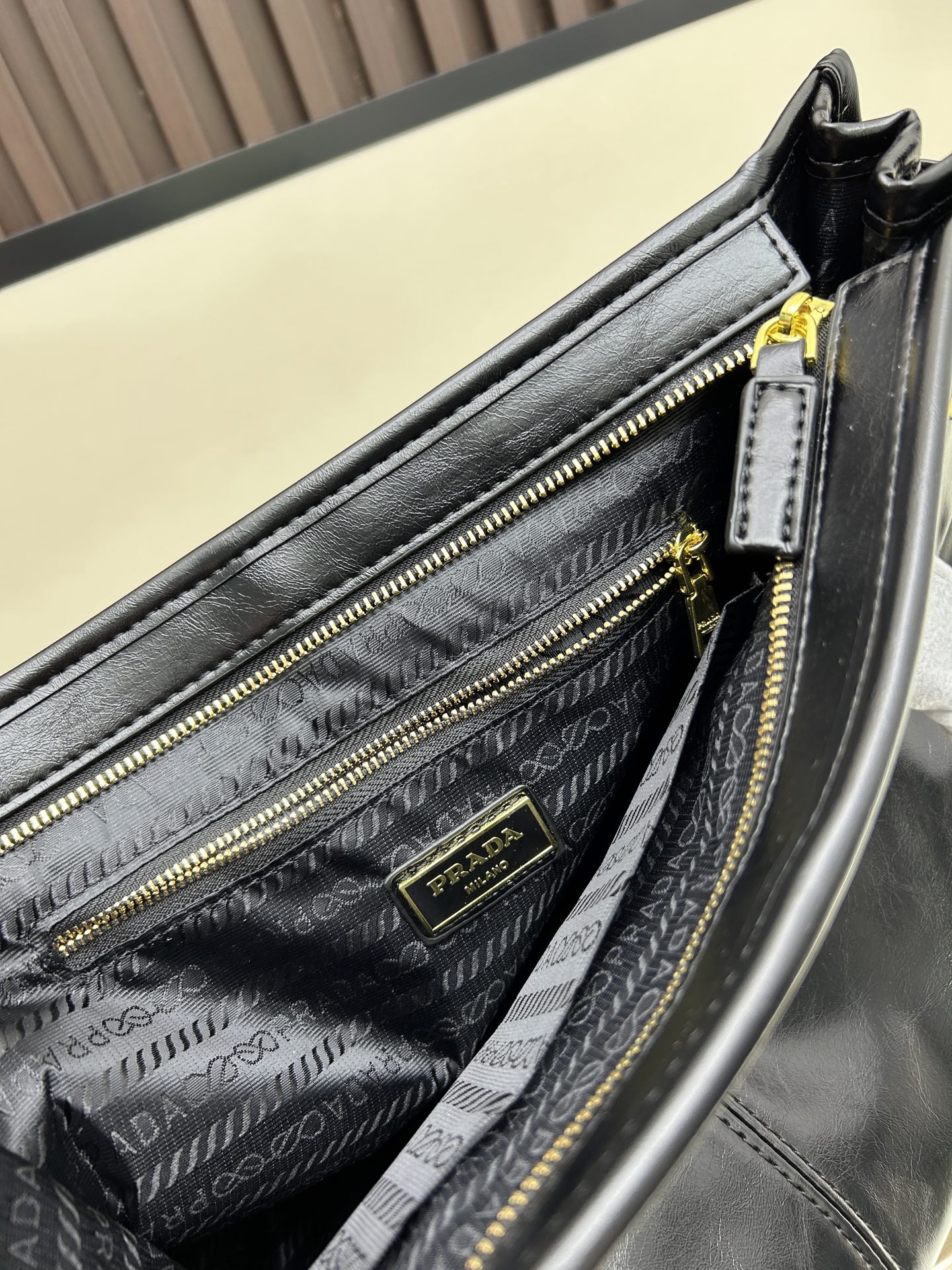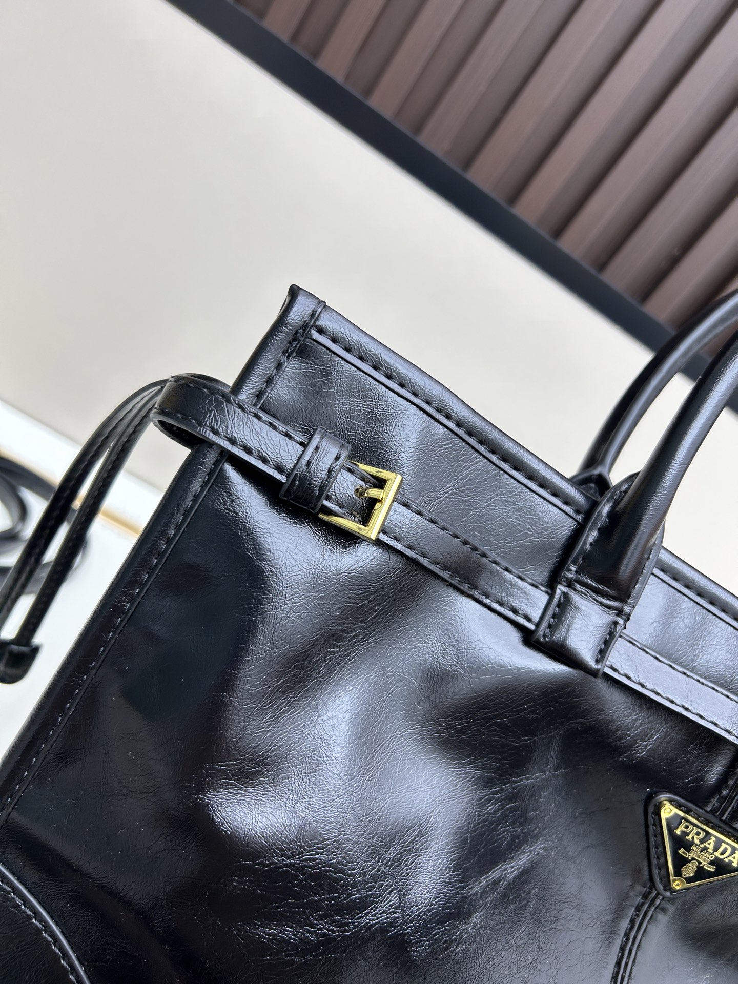 • Prada 446 Lux Soft Large Black Waxed Leather Tote Bag 10A