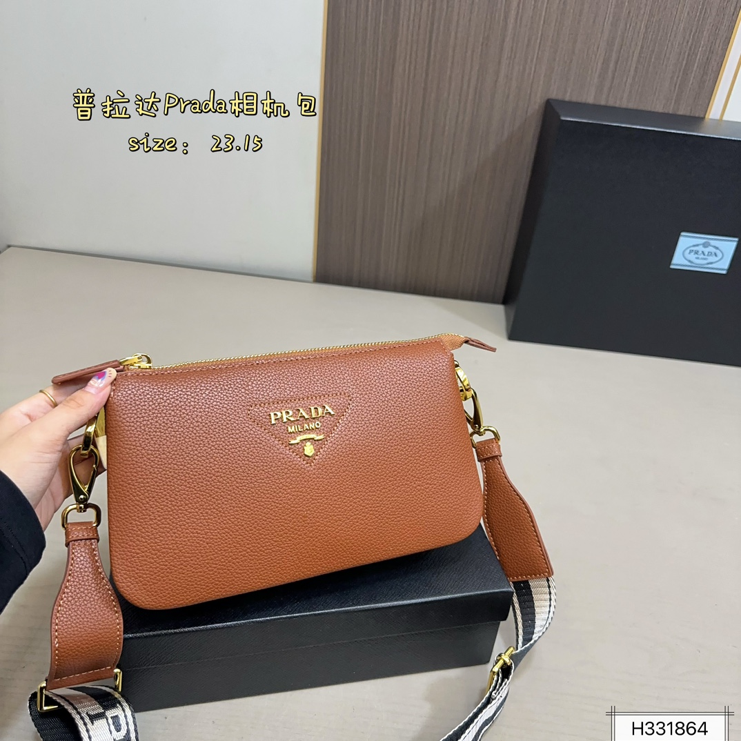 • PRADA Saffiano Camera Bag Unisex Crossbody with Gift Box