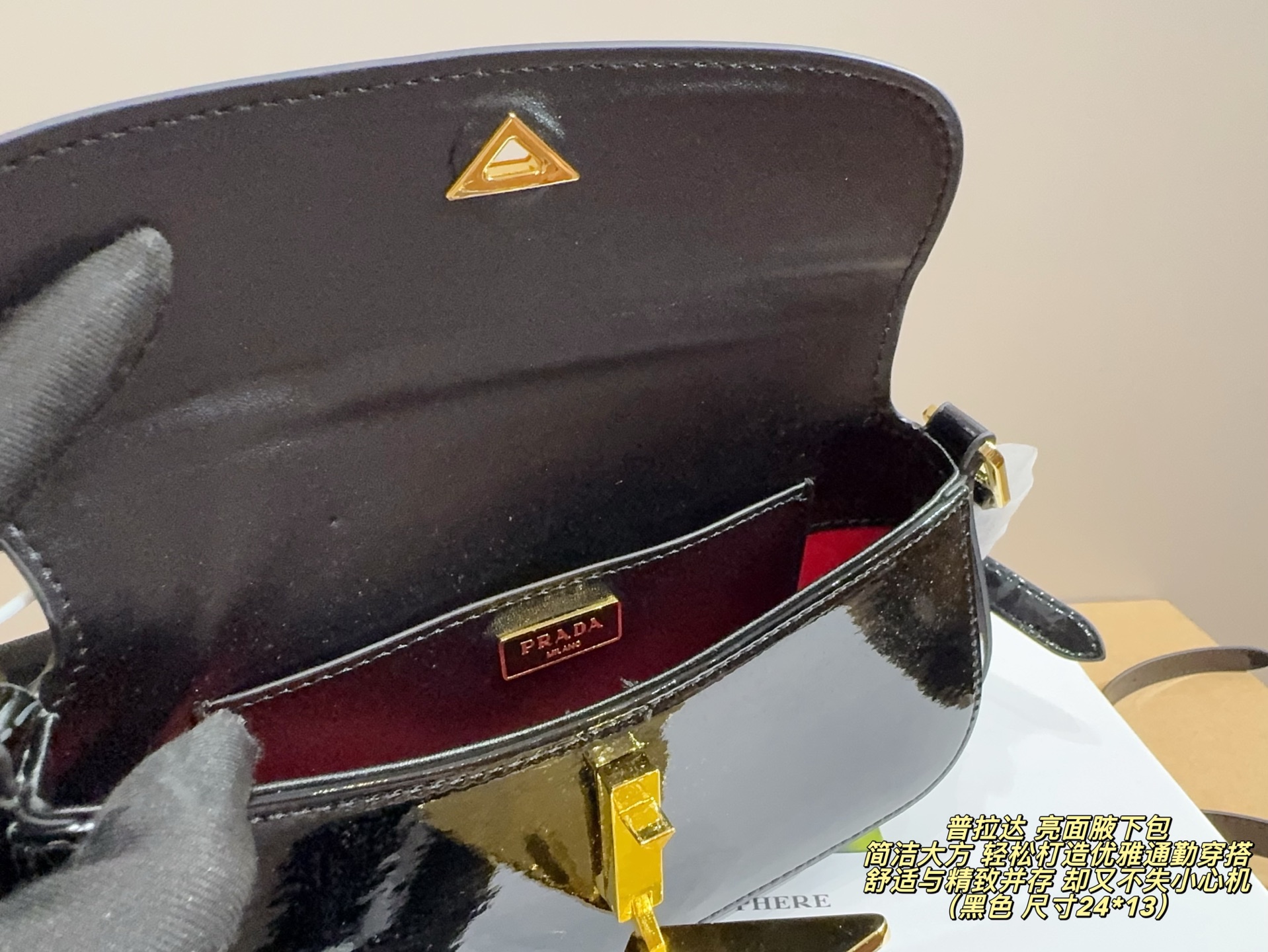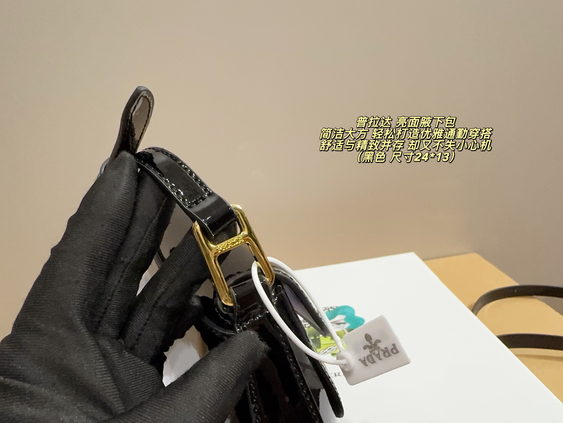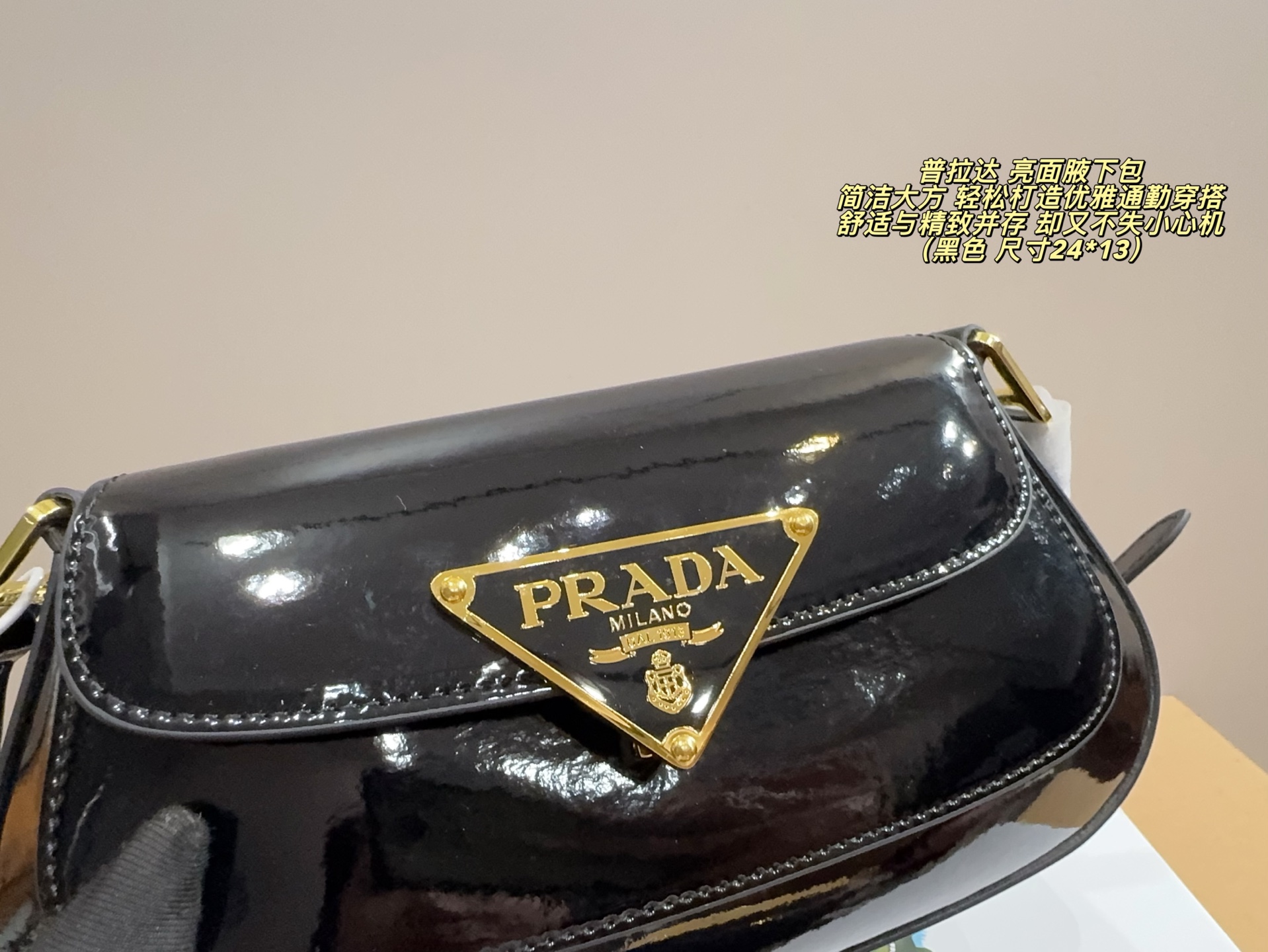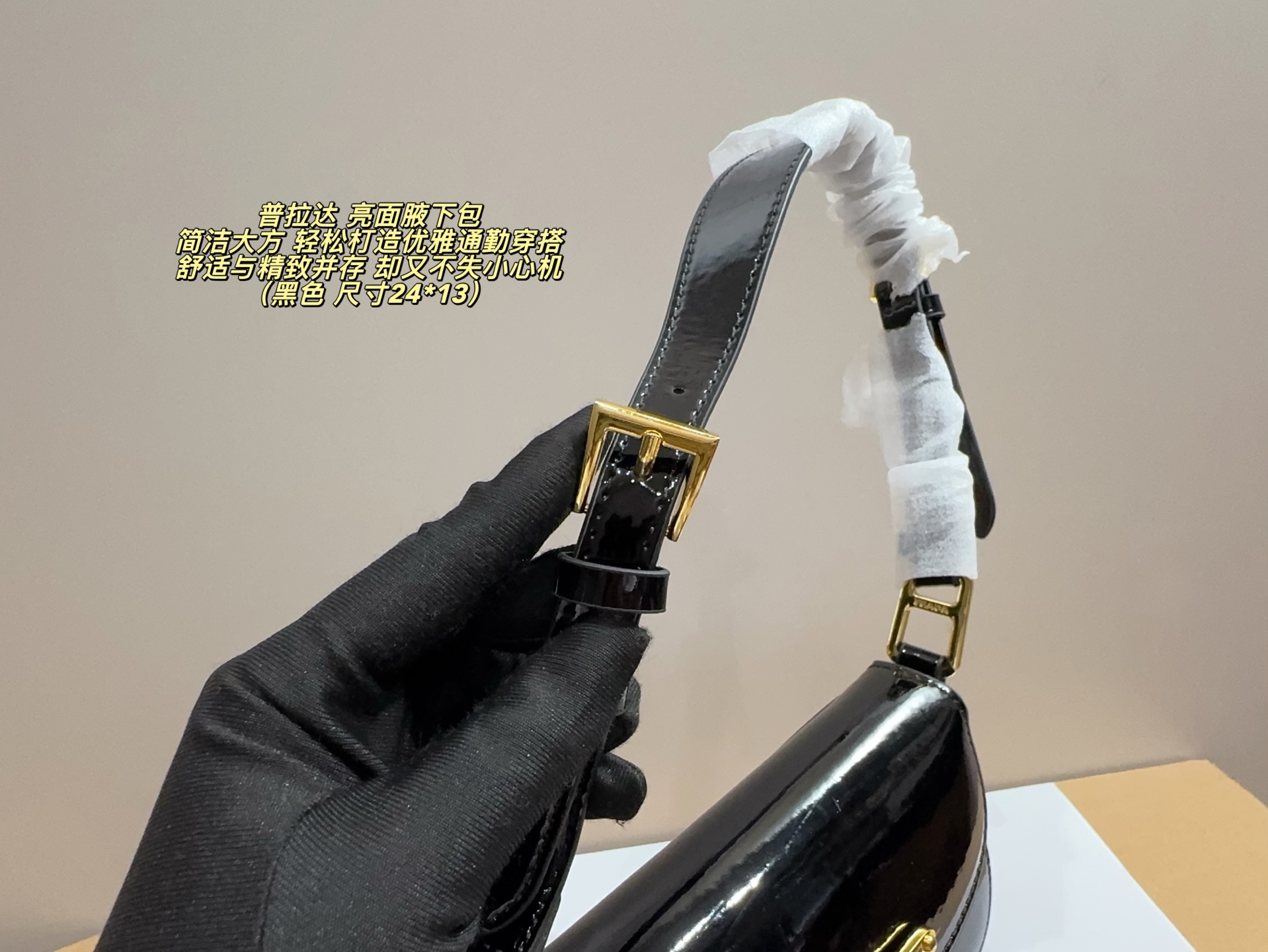 • Prada Vintage Shiny Shoulder Bag Elegant Commuter Purse
