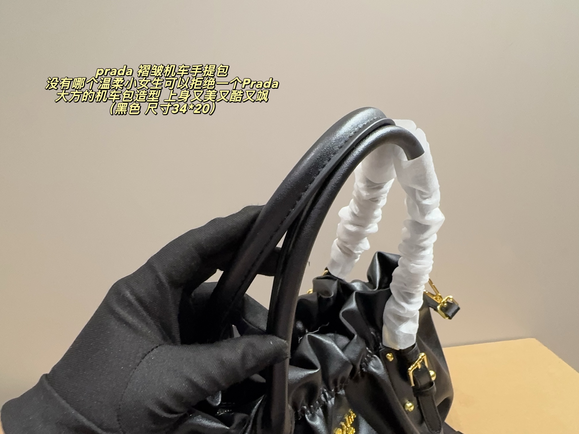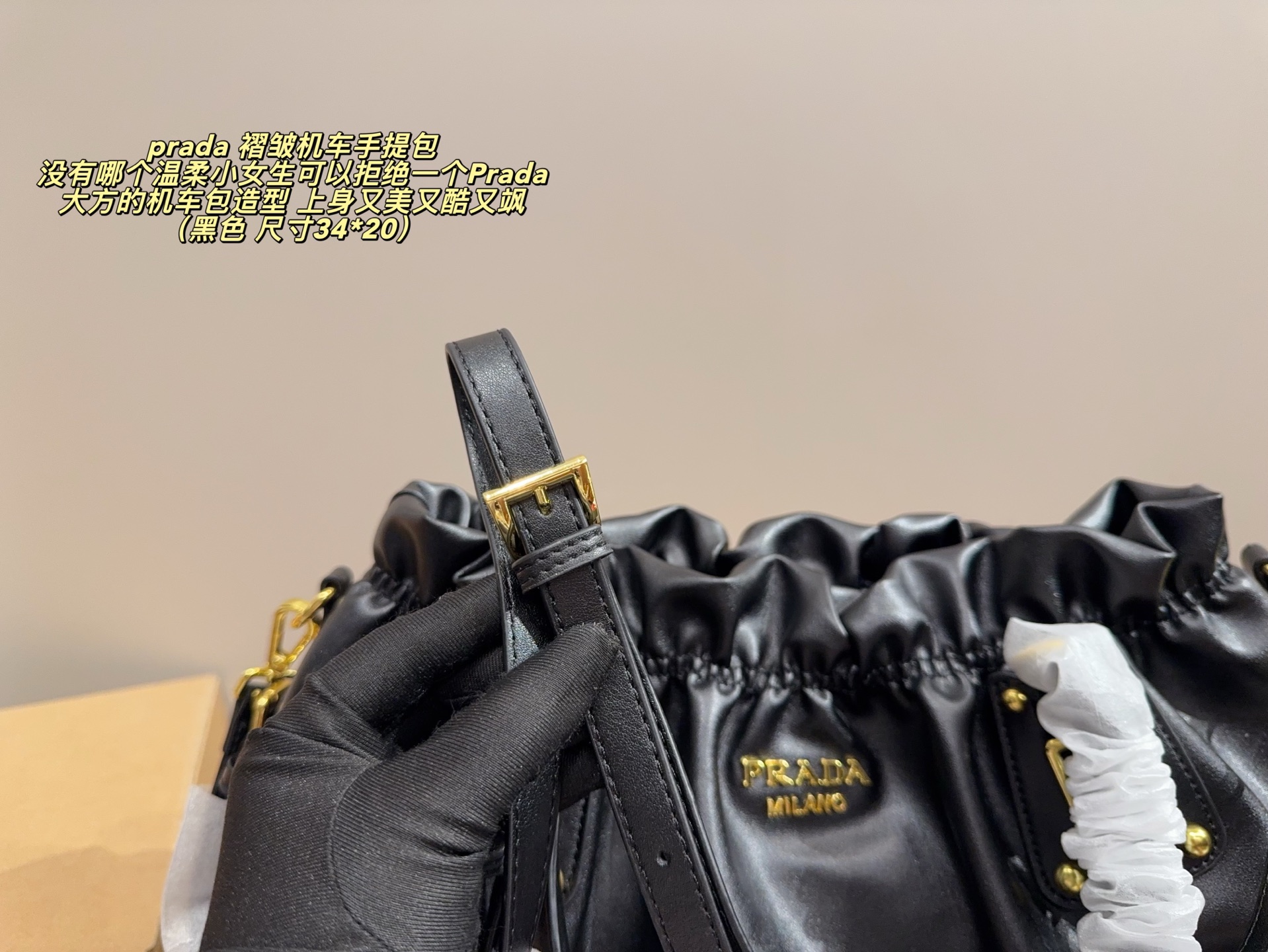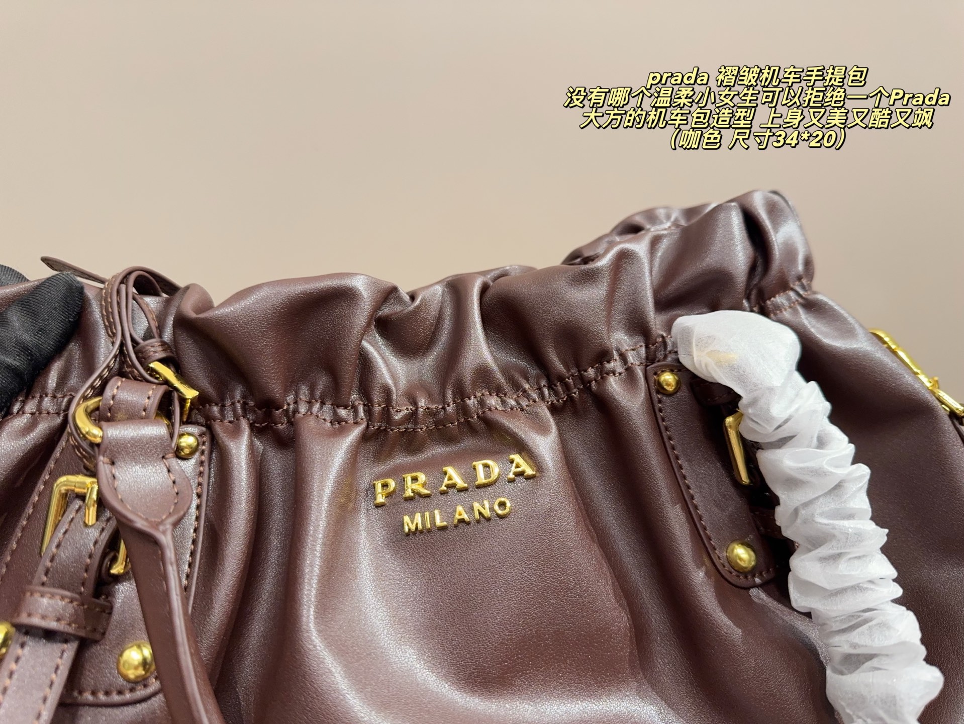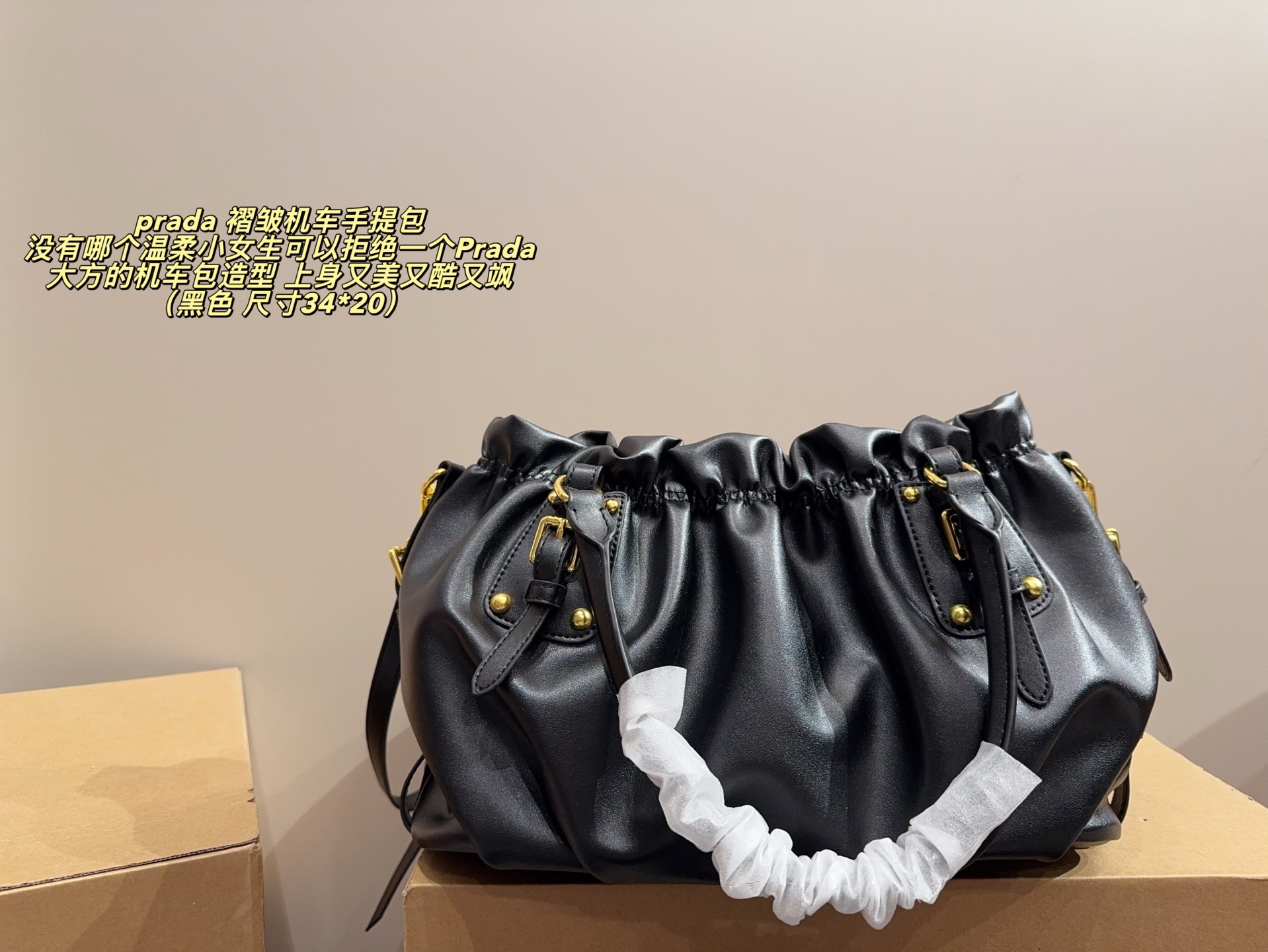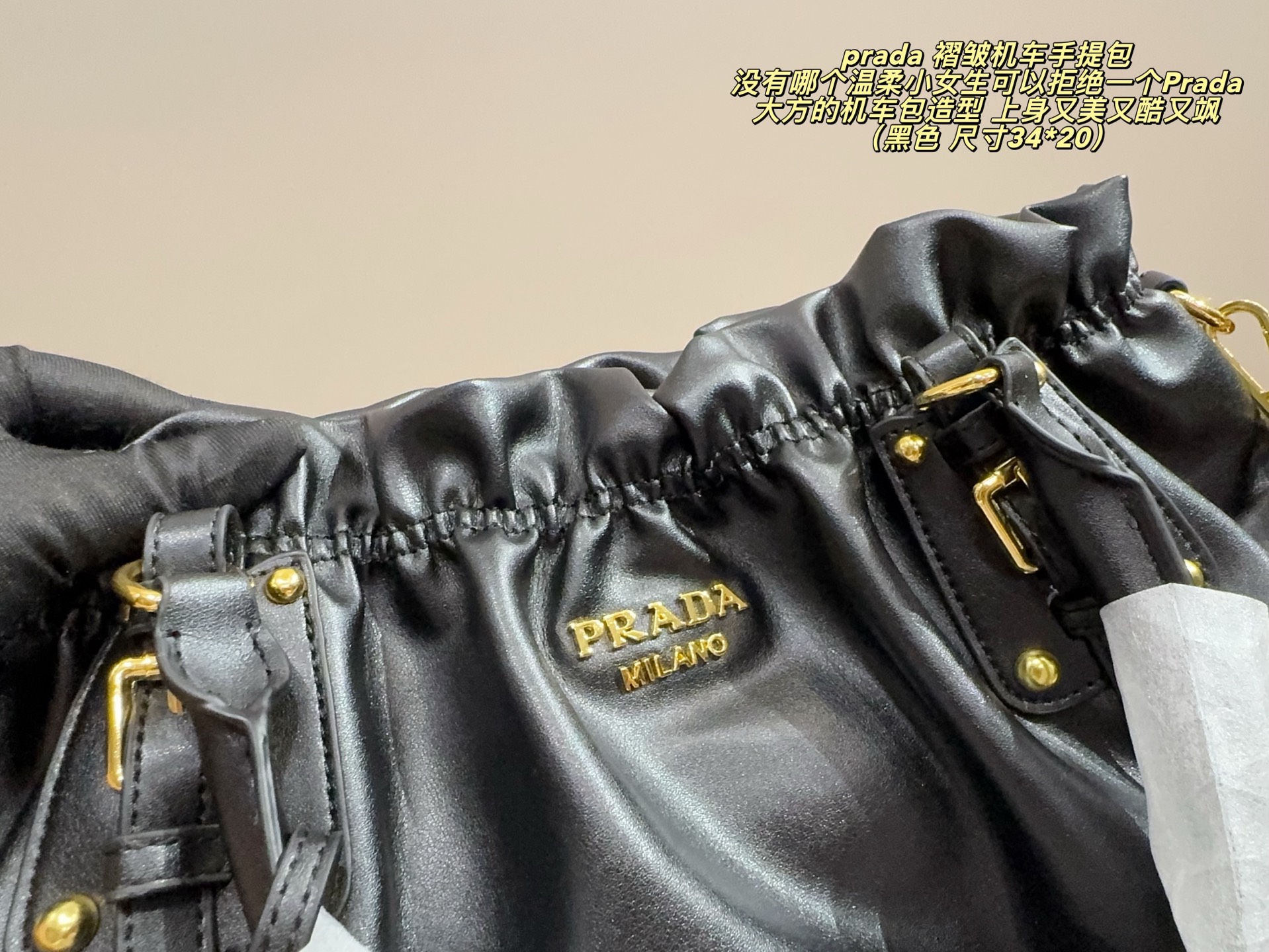 • Prada Wrinkled Leather Motorcycle Tote Bag