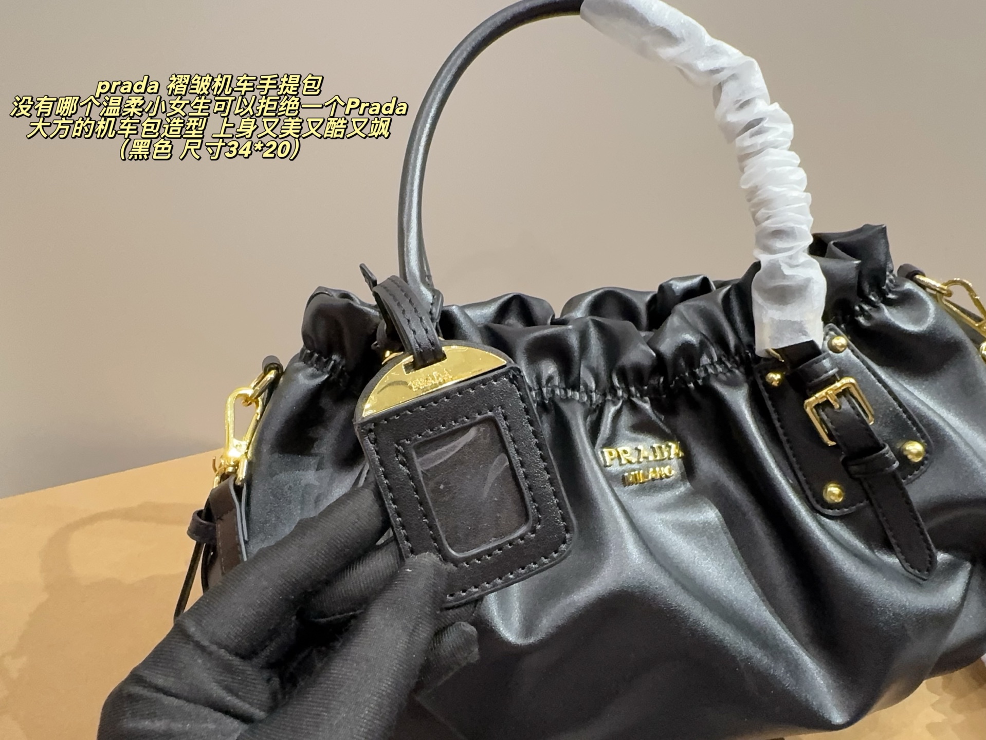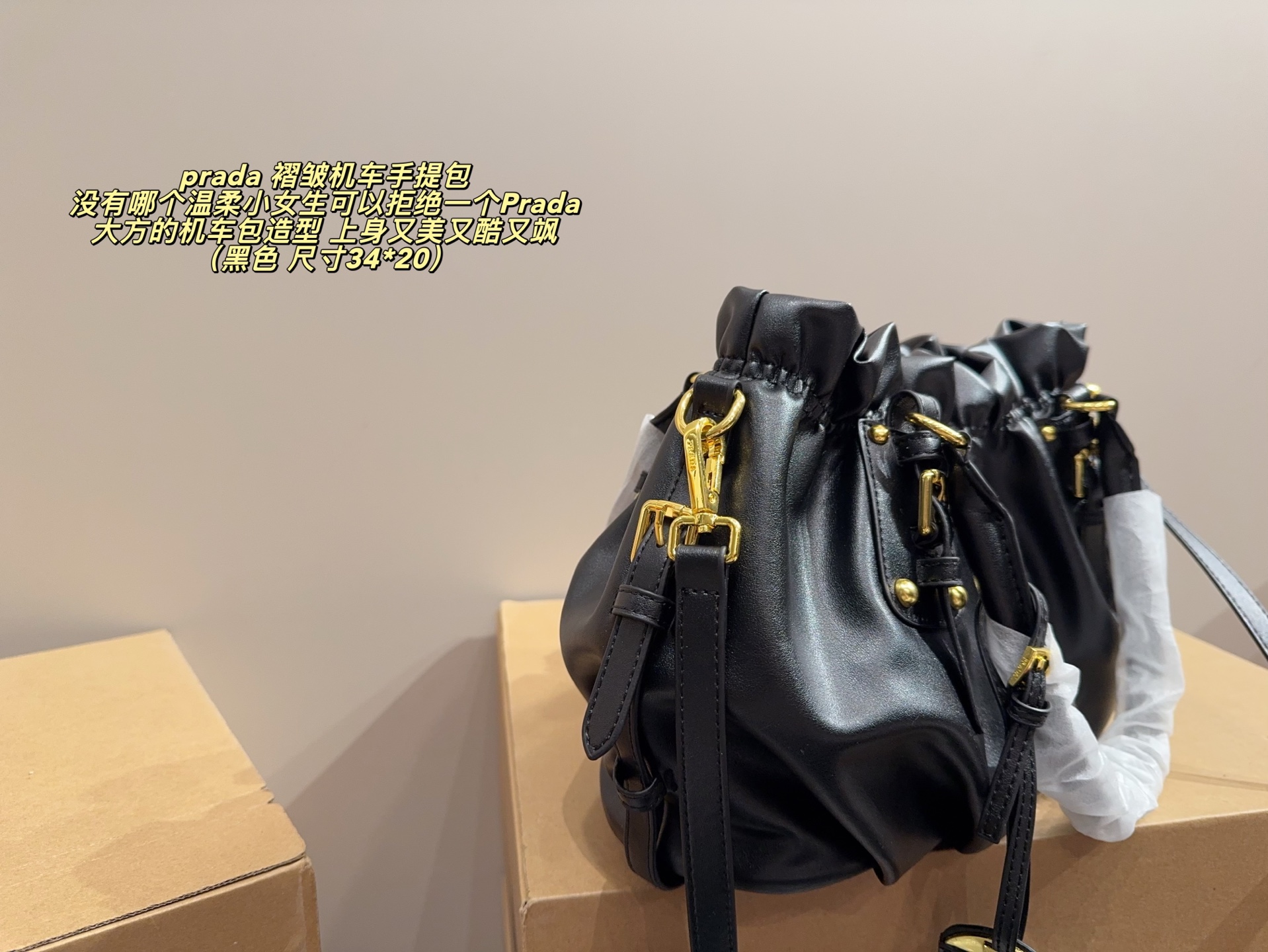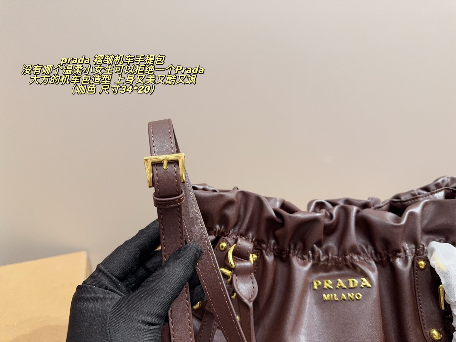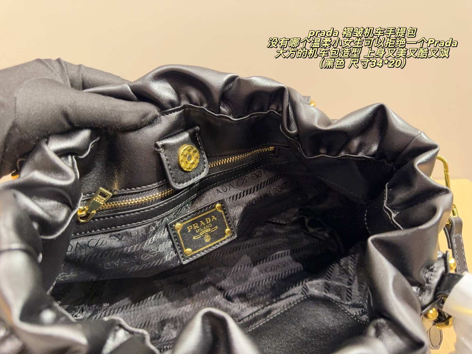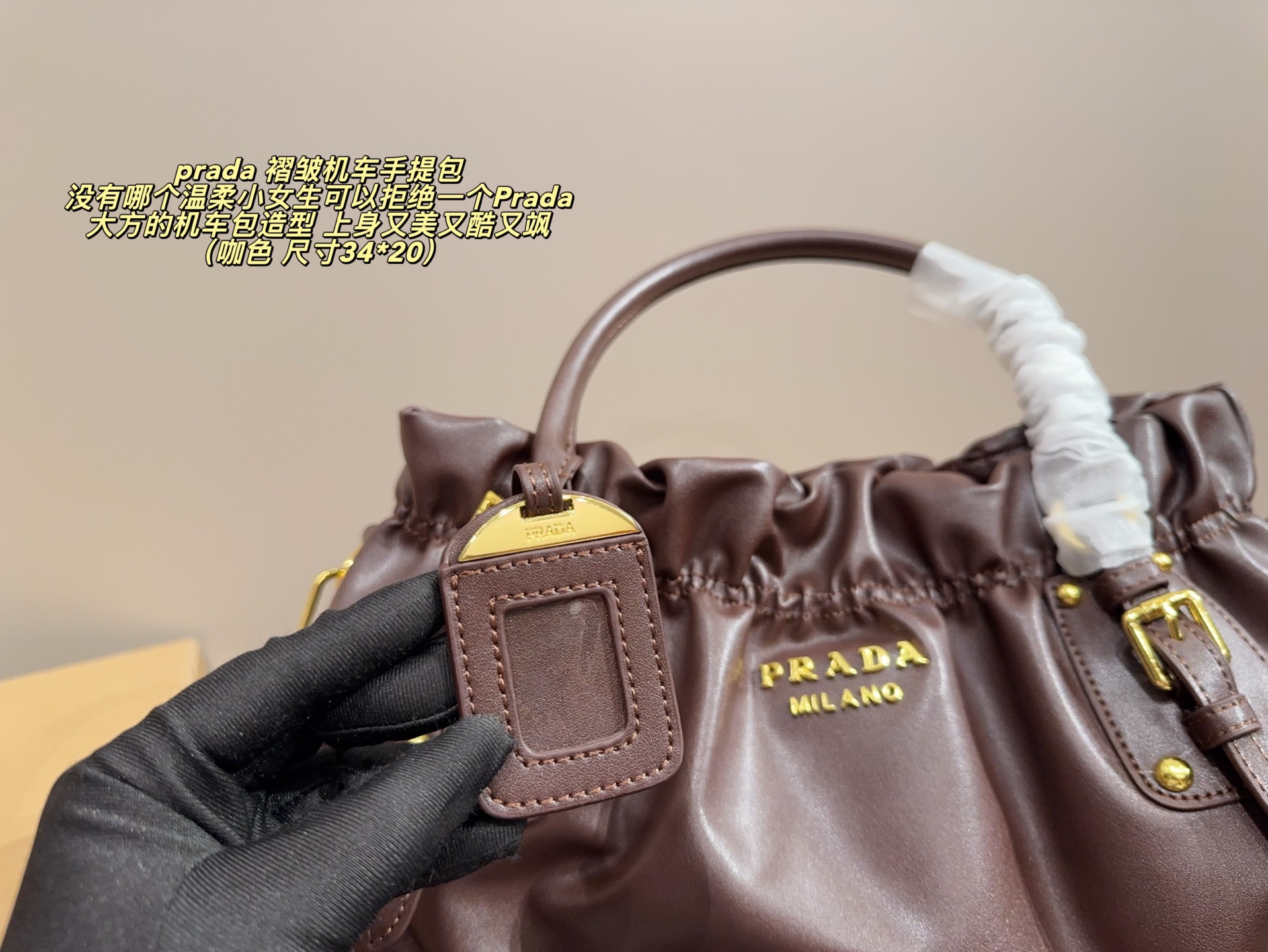 • Prada Wrinkled Leather Motorcycle Tote Bag