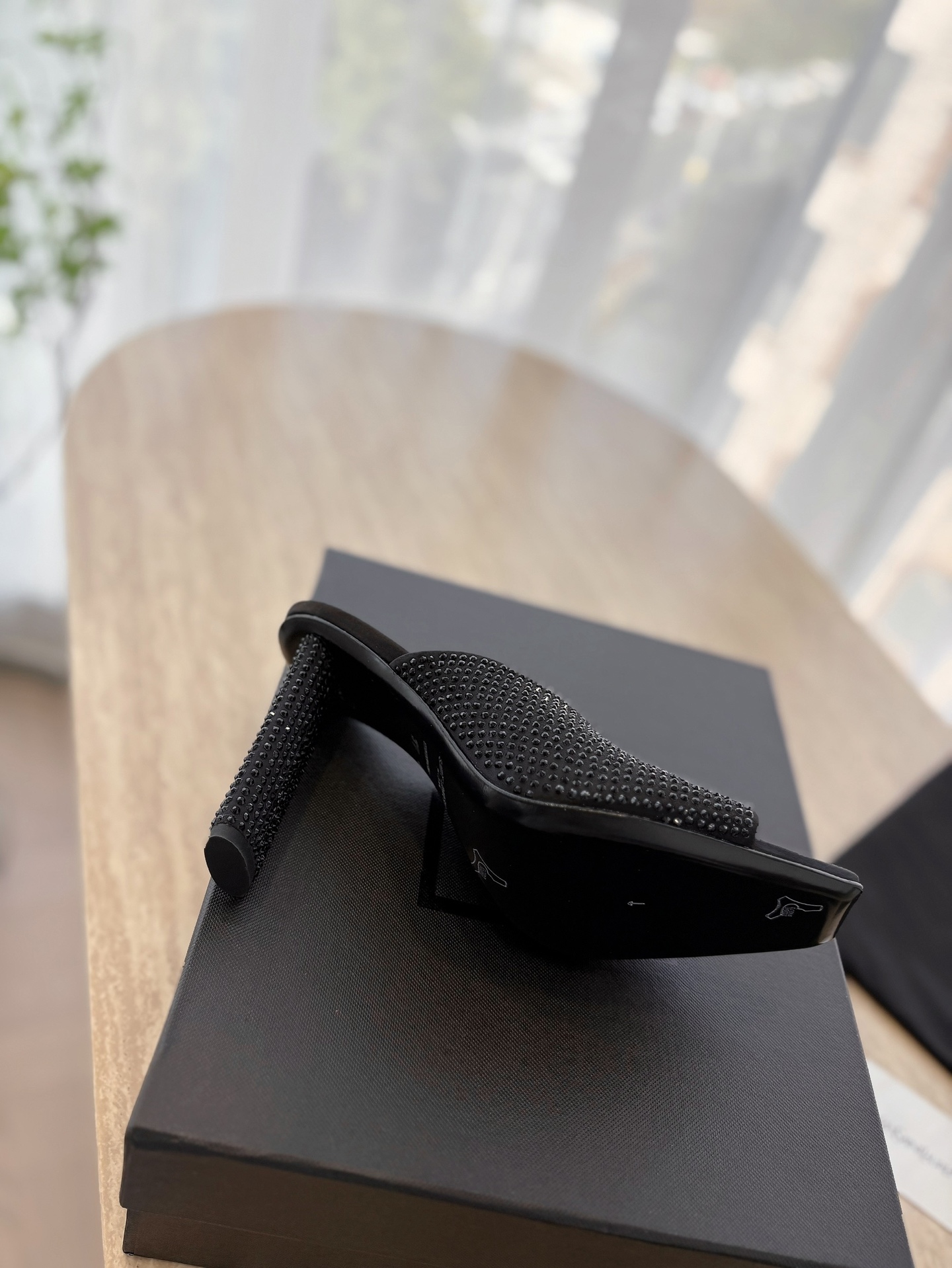 Saint Laurent YSL Rhinestone Heels Sandals Slipper Shoes