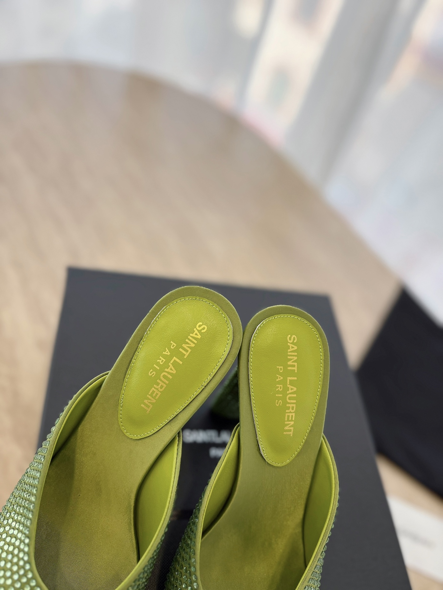 Saint Laurent YSL Rhinestone Heels Sandals Slipper Shoes
