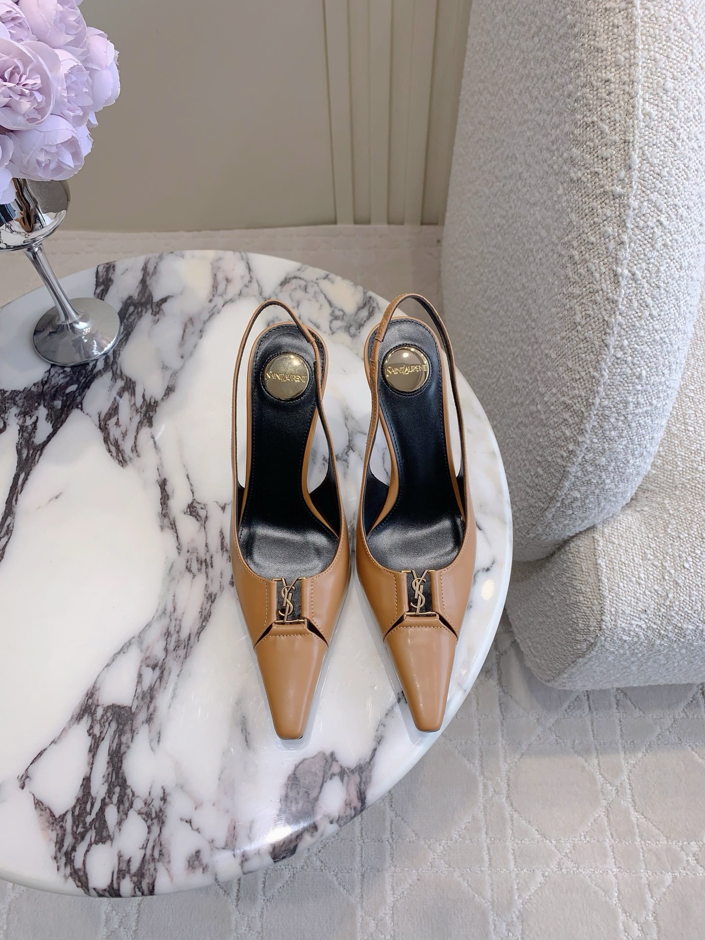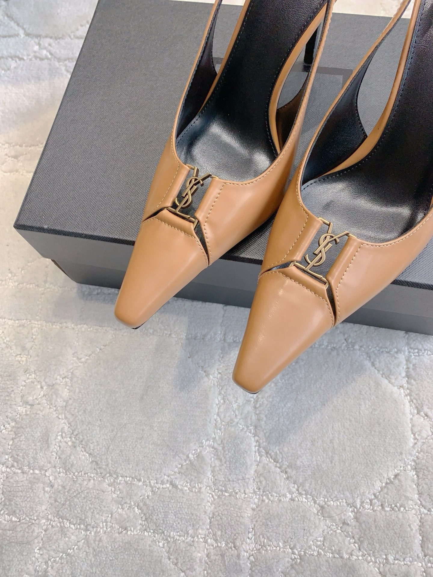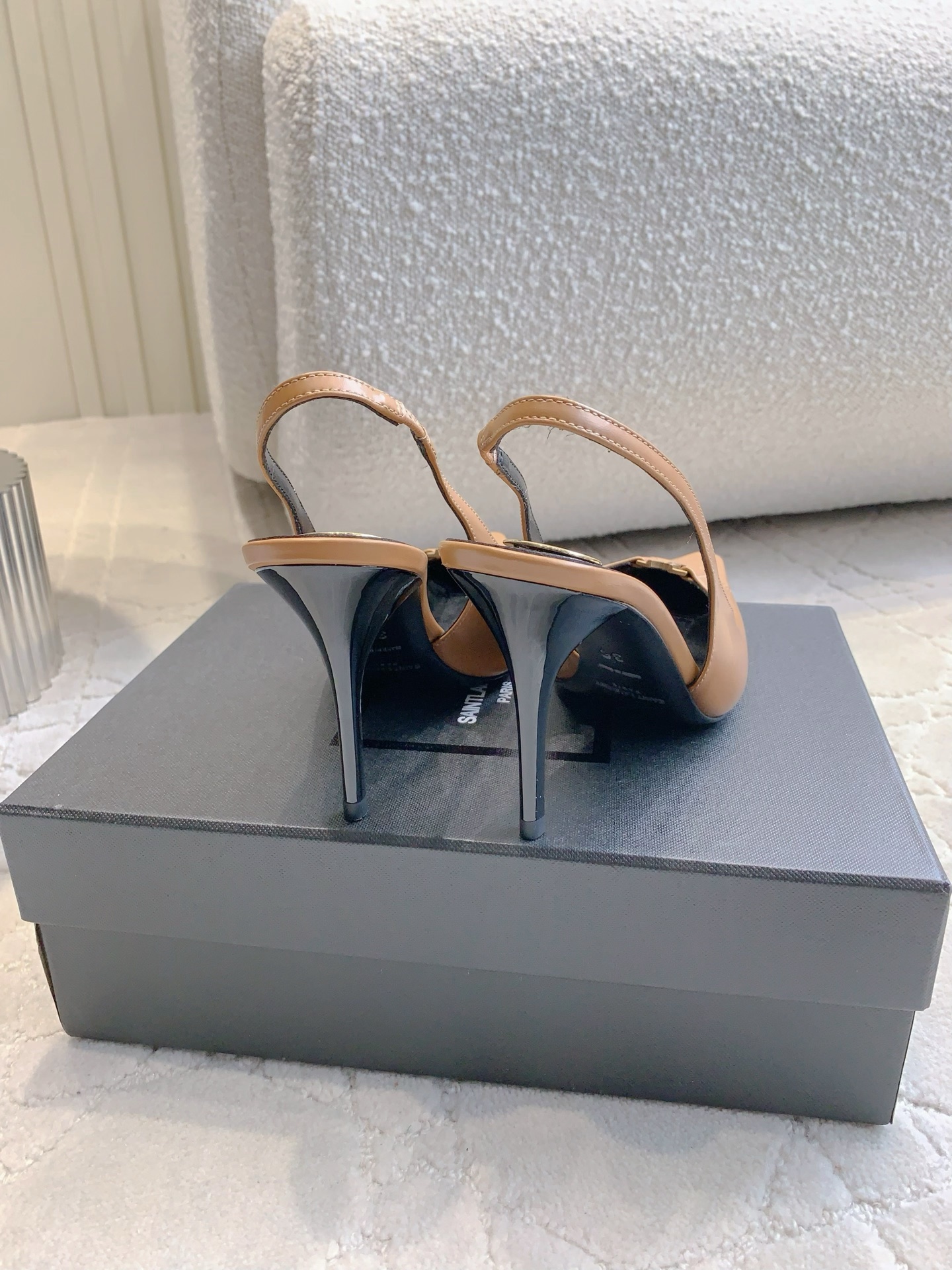 Saint Laurent YSL Pointed Toe Hollow Back Heels Sandals Slipper Shoes