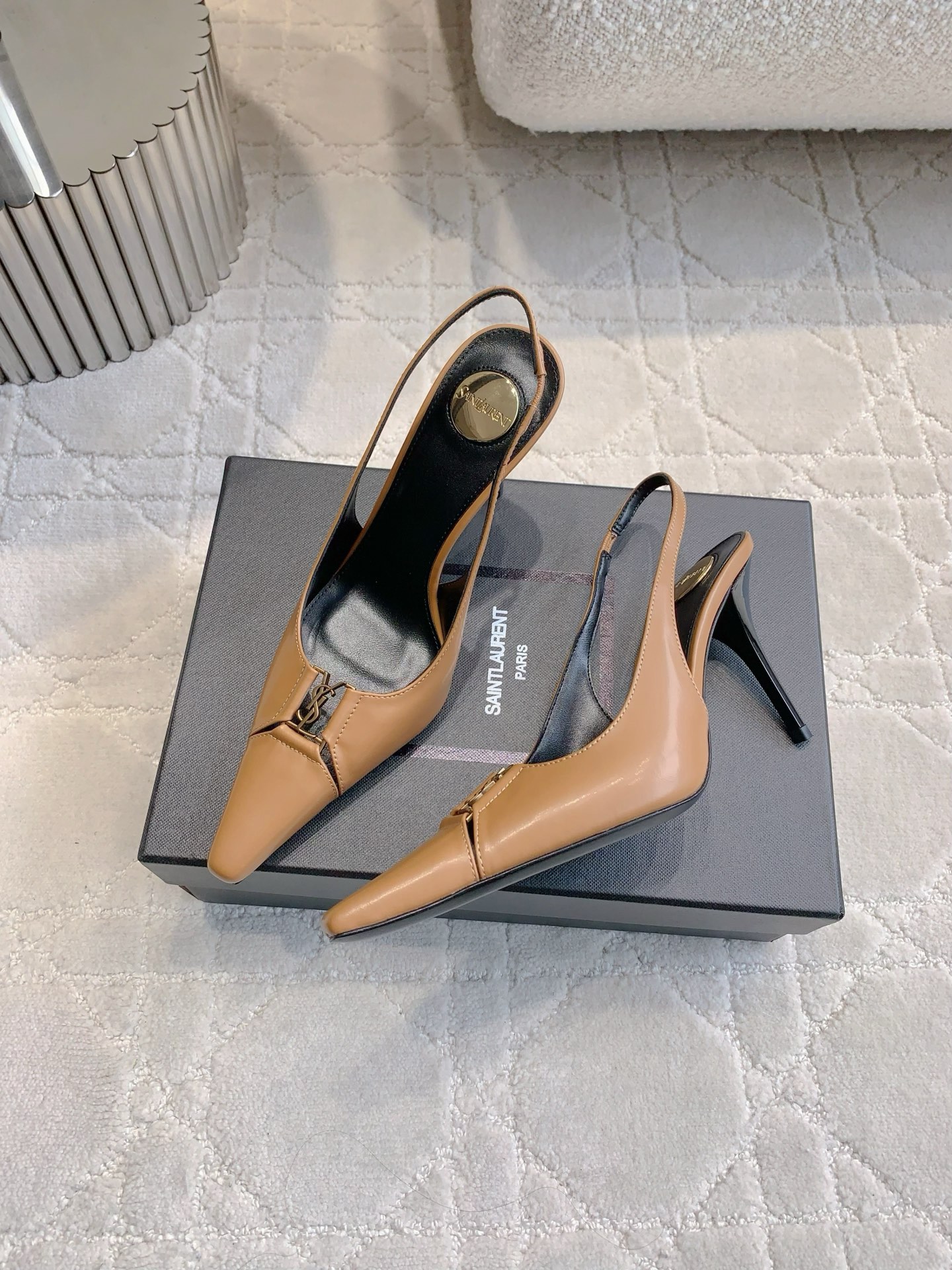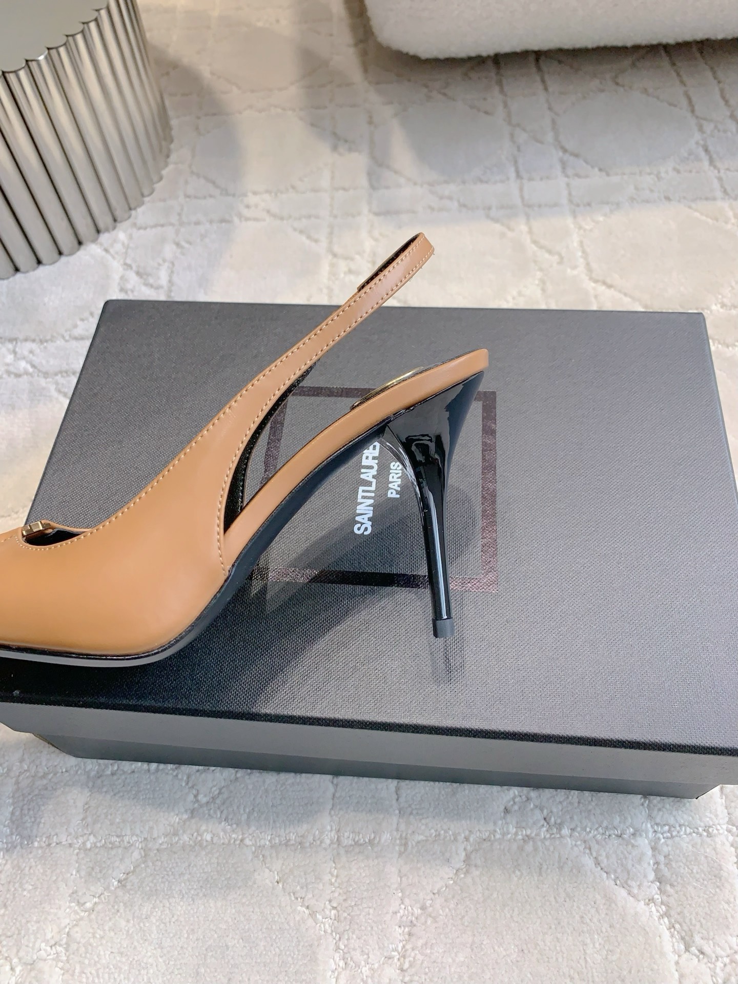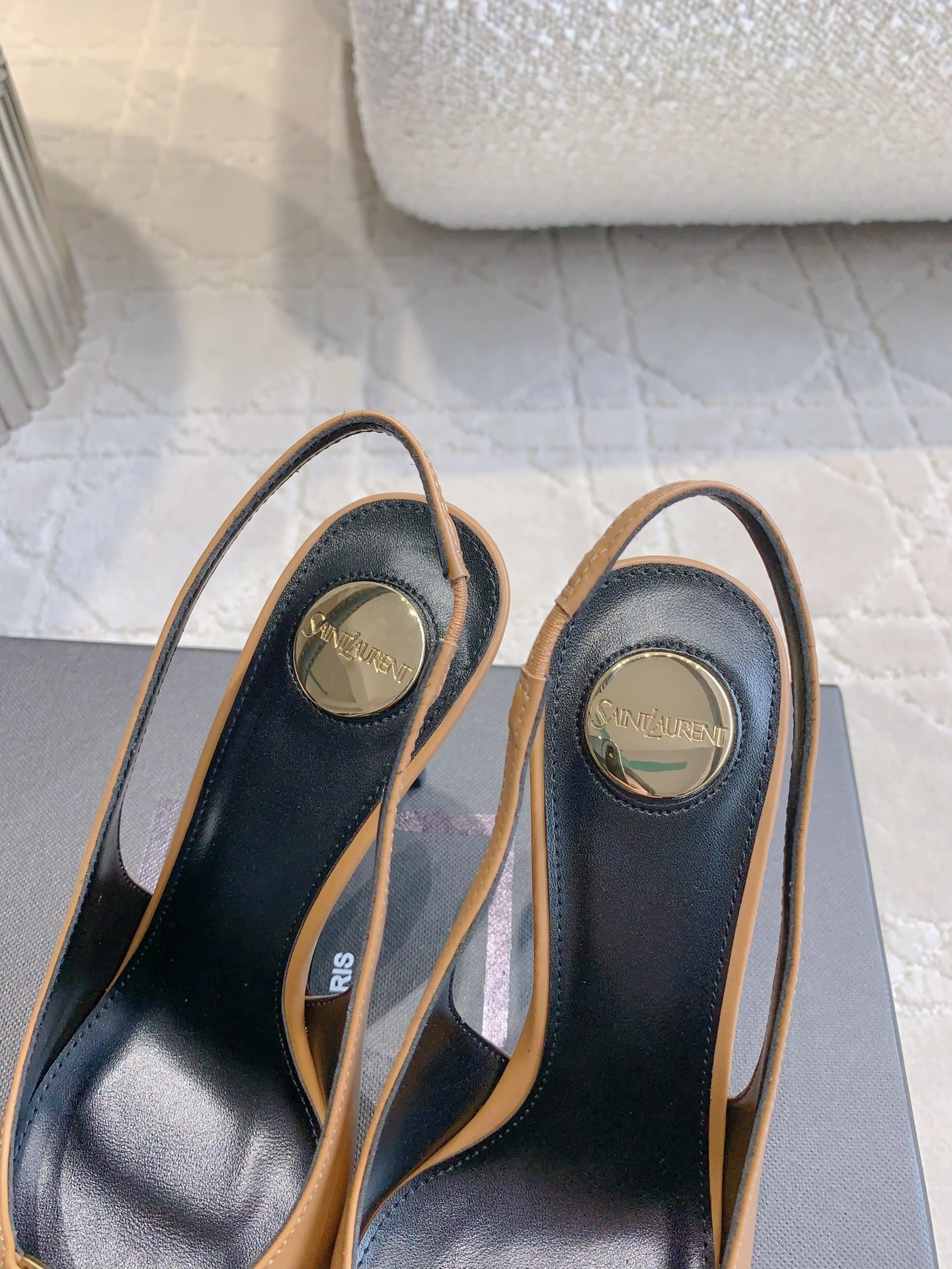 Saint Laurent YSL Pointed Toe Hollow Back Heels Sandals Slipper Shoes