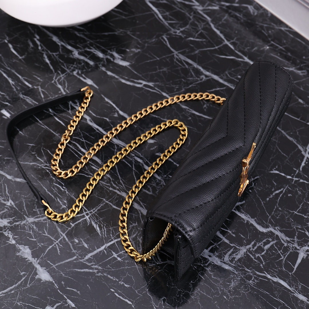 • Saint Laurent YSL Gold Logo Crossbody Shoulder Bag