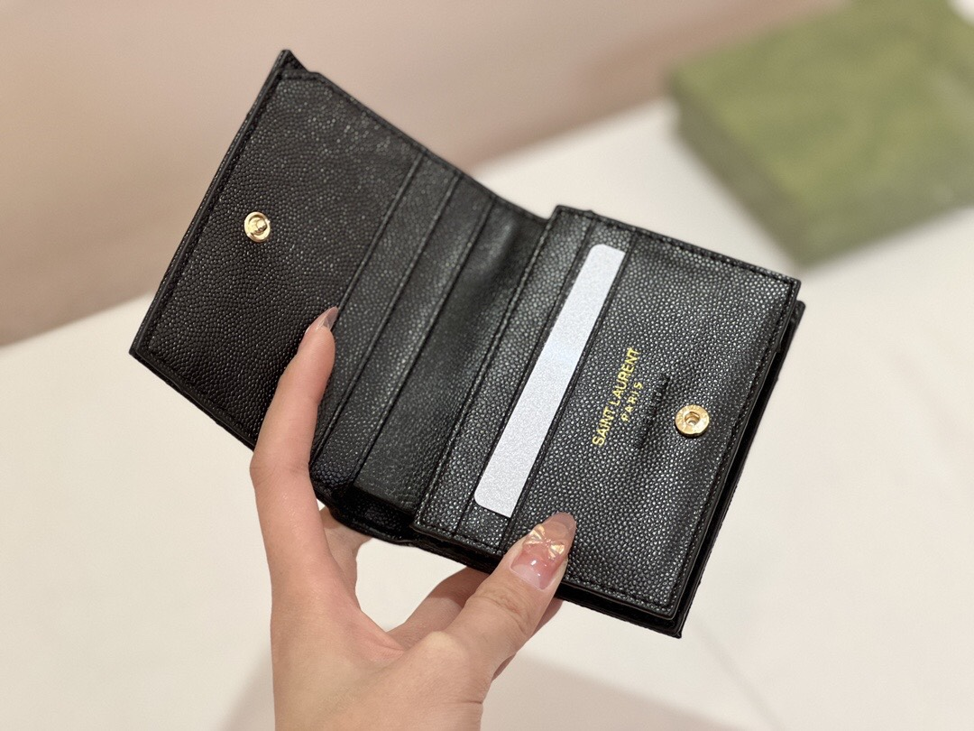 • Saint Laurent YSL Monogram Caviar Leather Wallet
