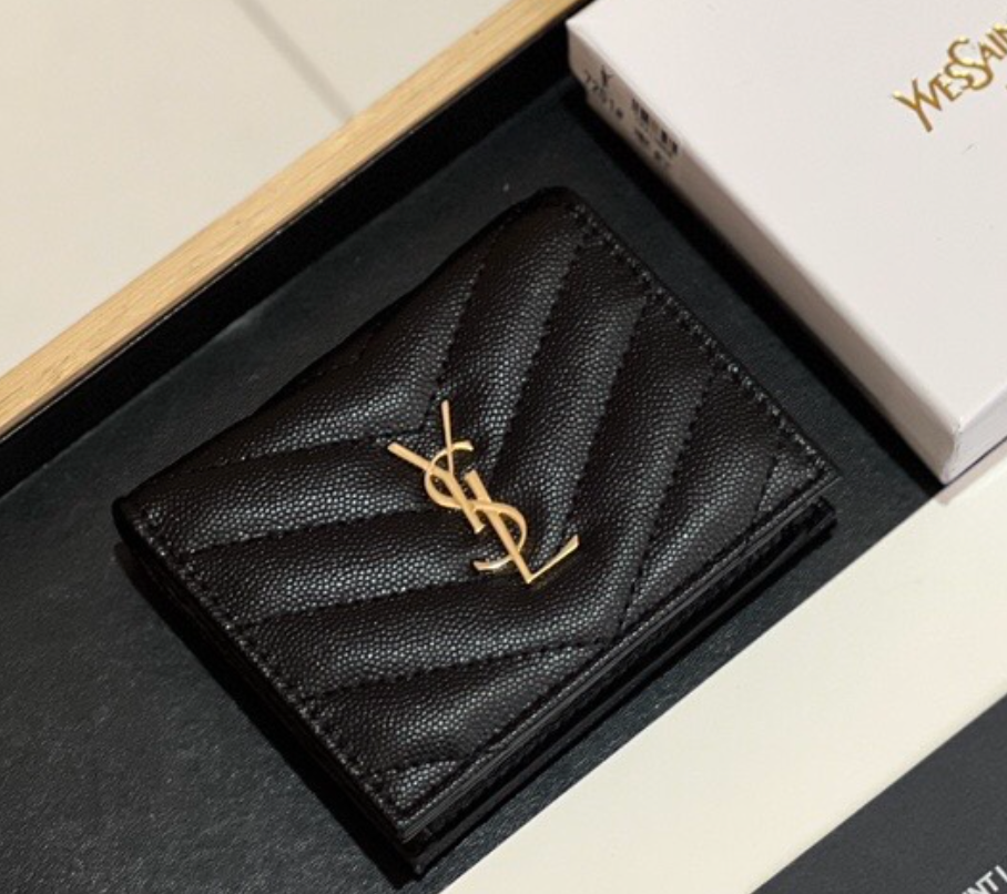 Saint Laurent YSL Monogram Caviar Leather Wallet
