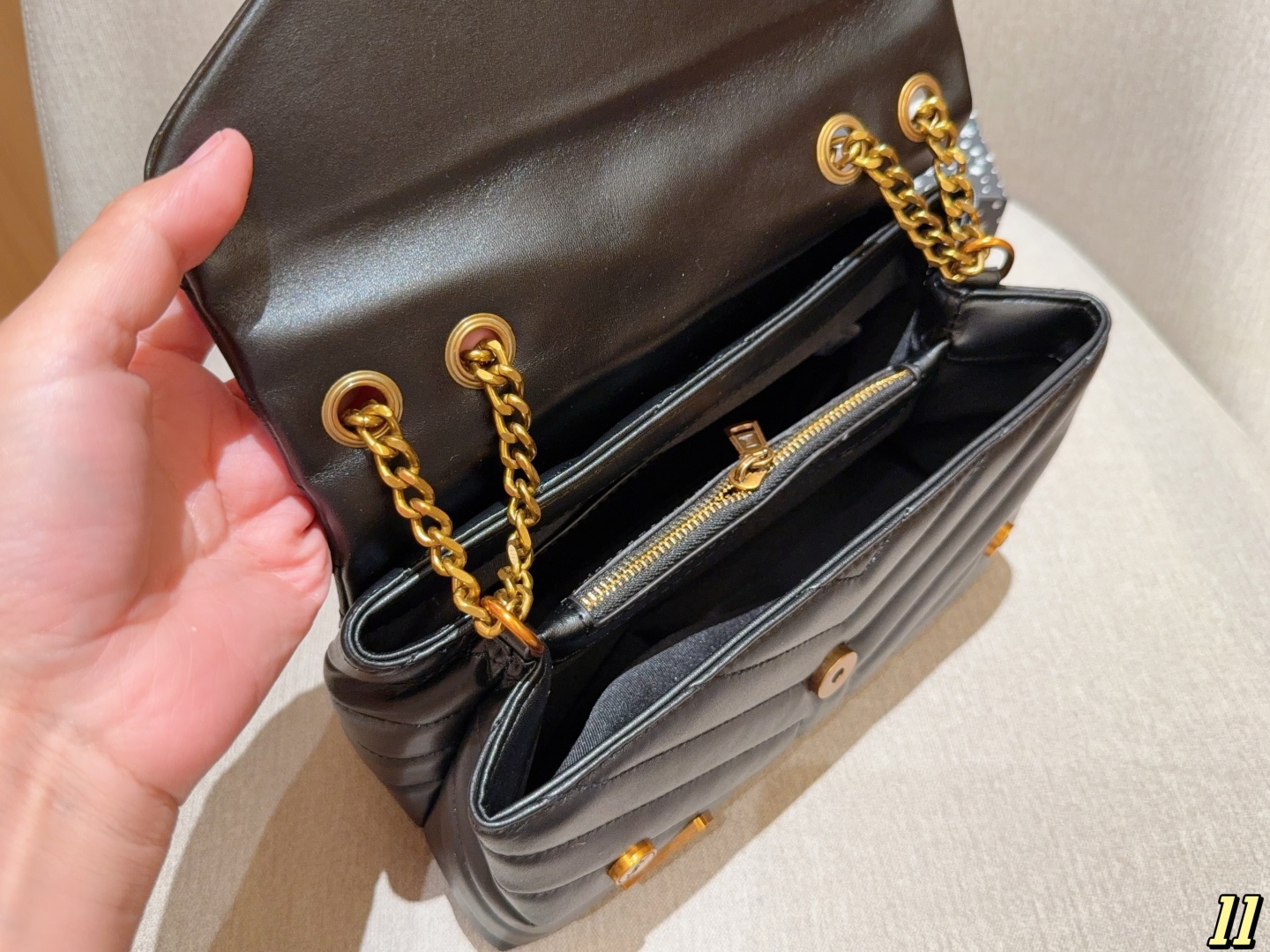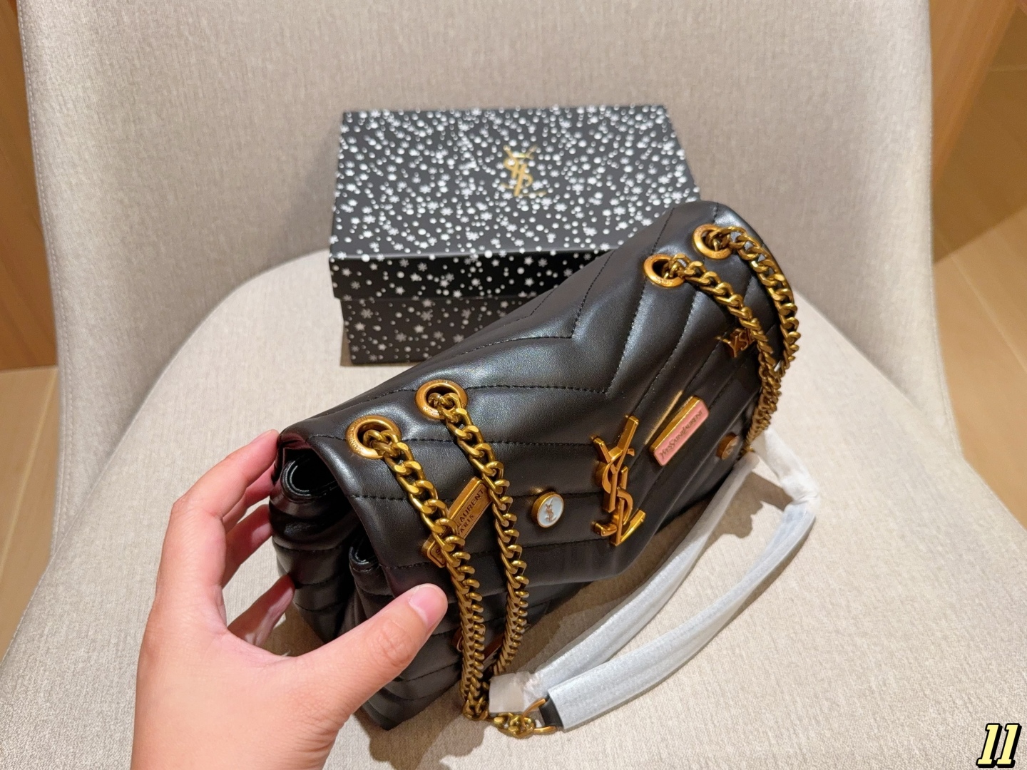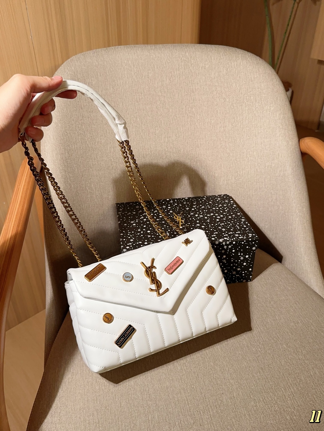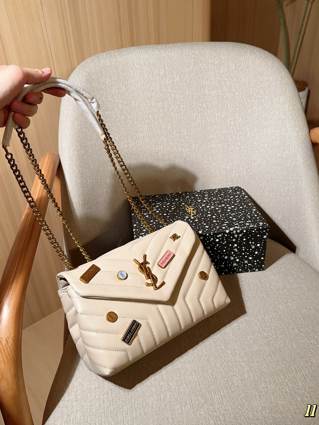 • YSL Cloud Chain Bag 25cm Embroidered Patch Soft Calfskin