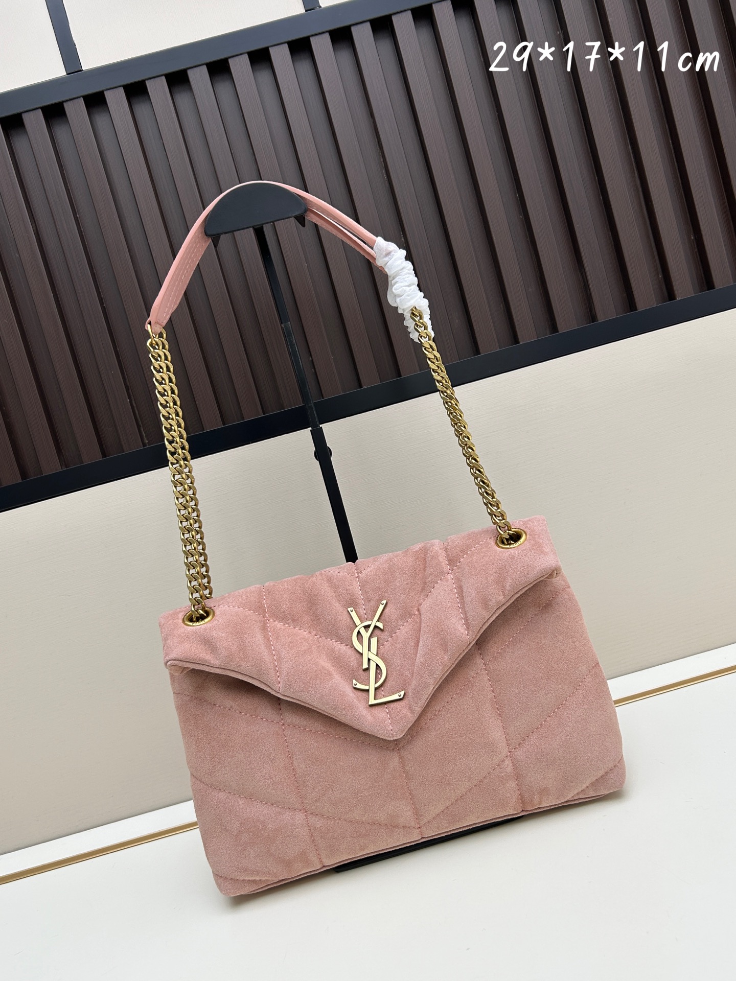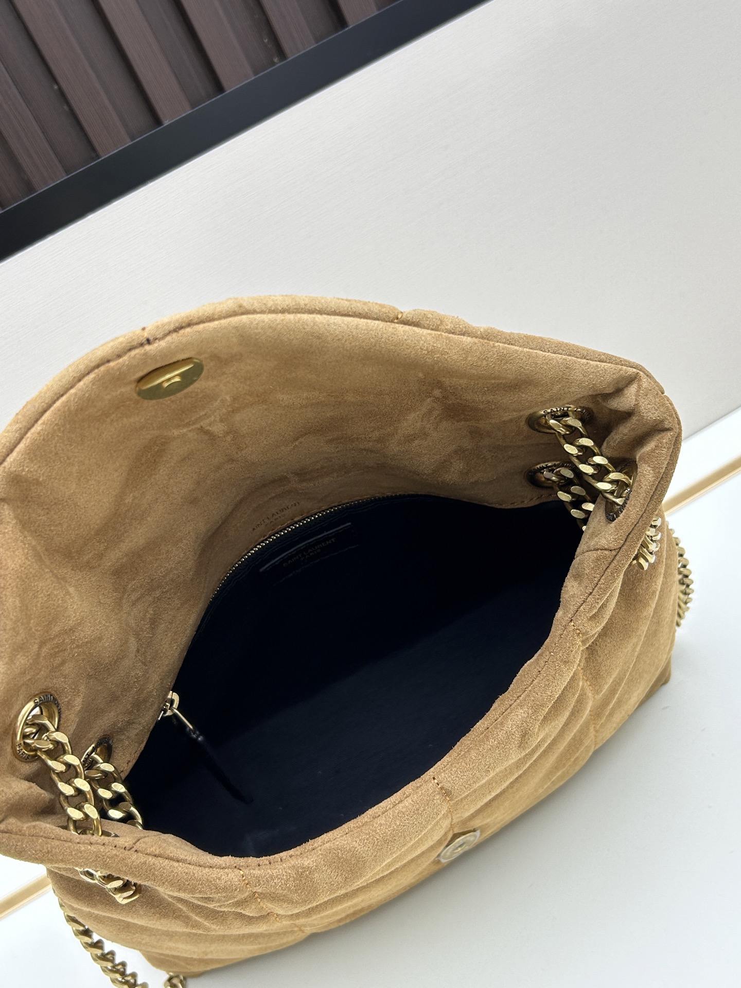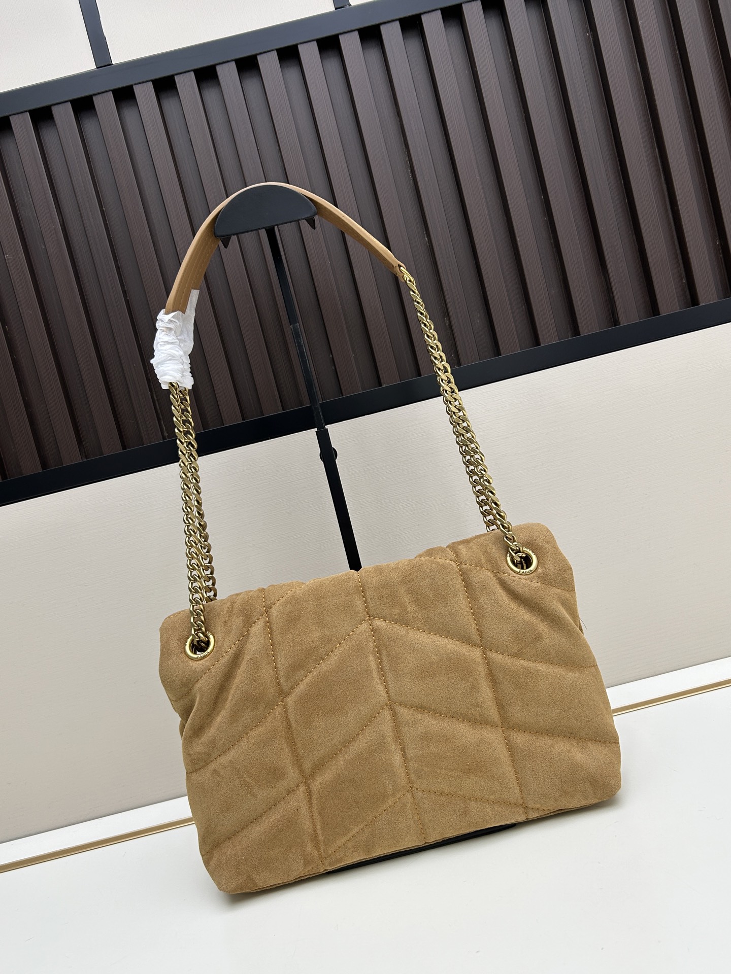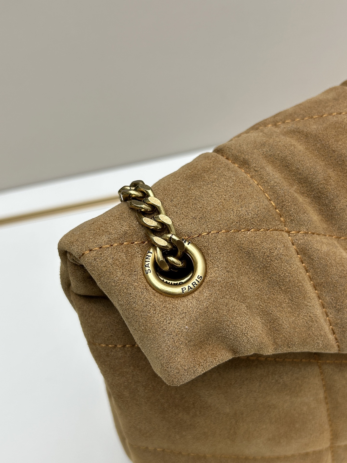 Lot 290 of this frosted LOULOU PUFFER quilted space bag is made from 100% cowhide leather, giving it a soft and delicate feel, like embracing a cloud. The classic Y logo, chain, and eyelet hardware are all made of vintage metal. The bag's opening folds over and secures with a magnetic snap closure. Inside, there's a zippered inner pocket for your phone and valuables, but no extra pockets, making it easy to use as you please!