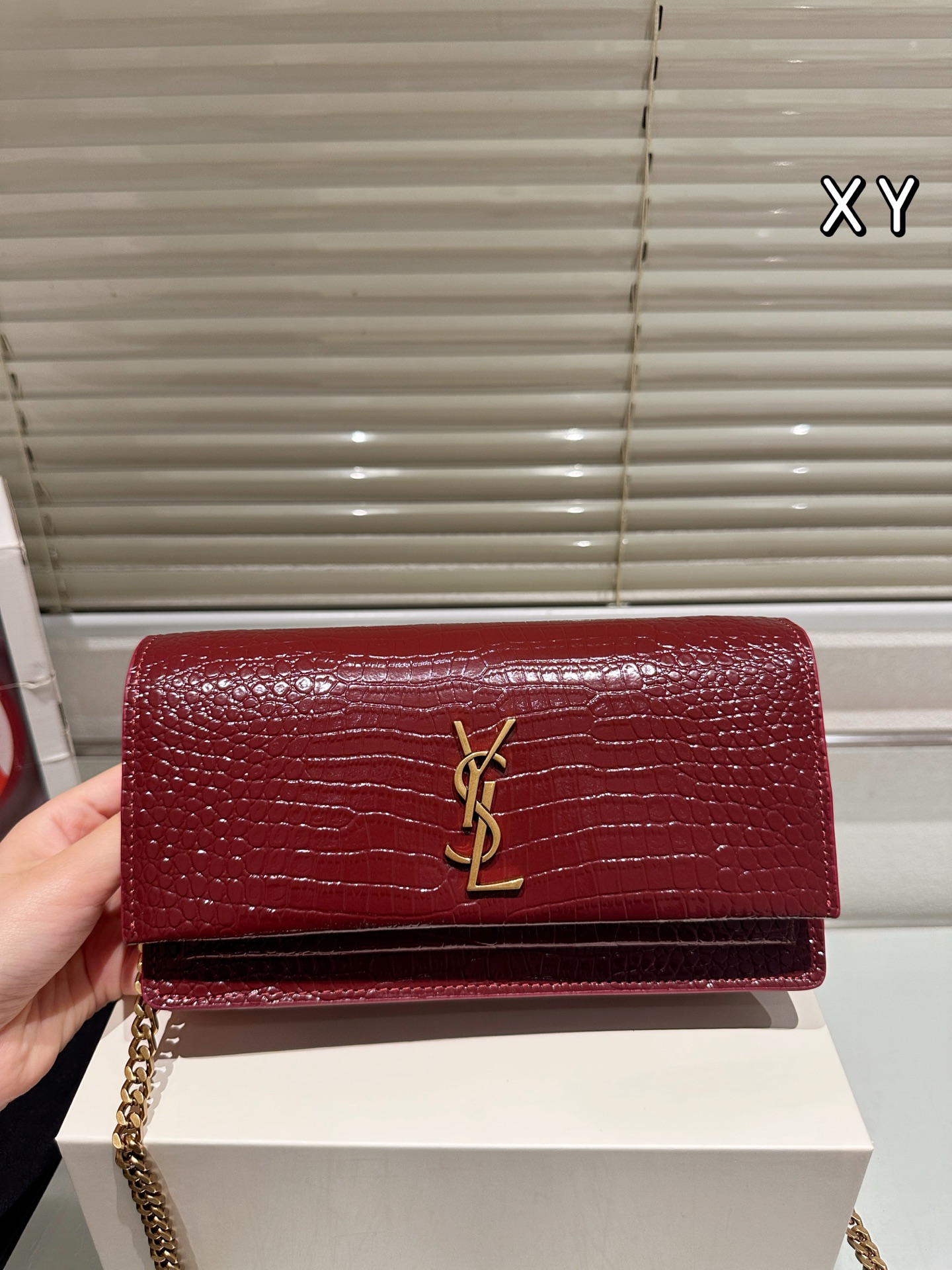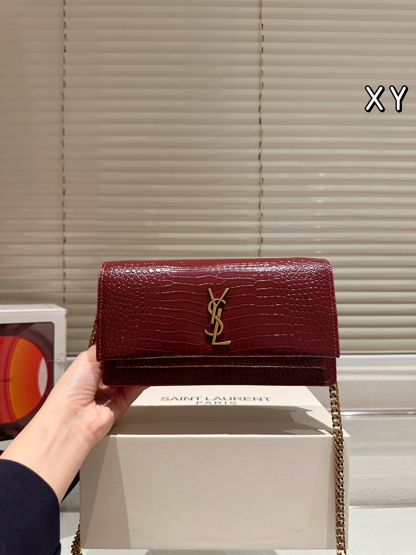 YSL Sunset V 24cm Alligator-Embossed Leather Crossbody