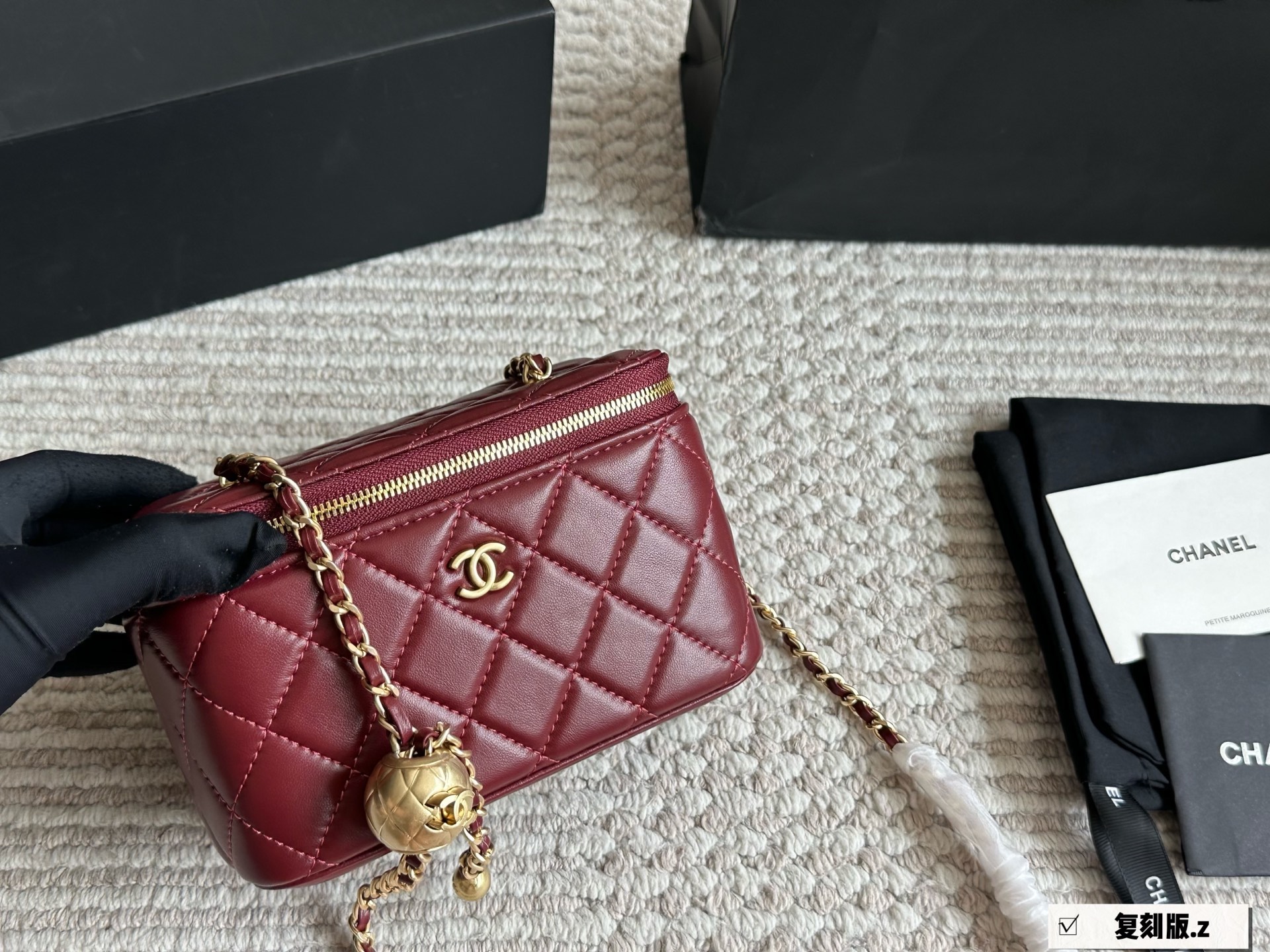 Chanel Gold Ball Vanity Case 18cm Mirror Included